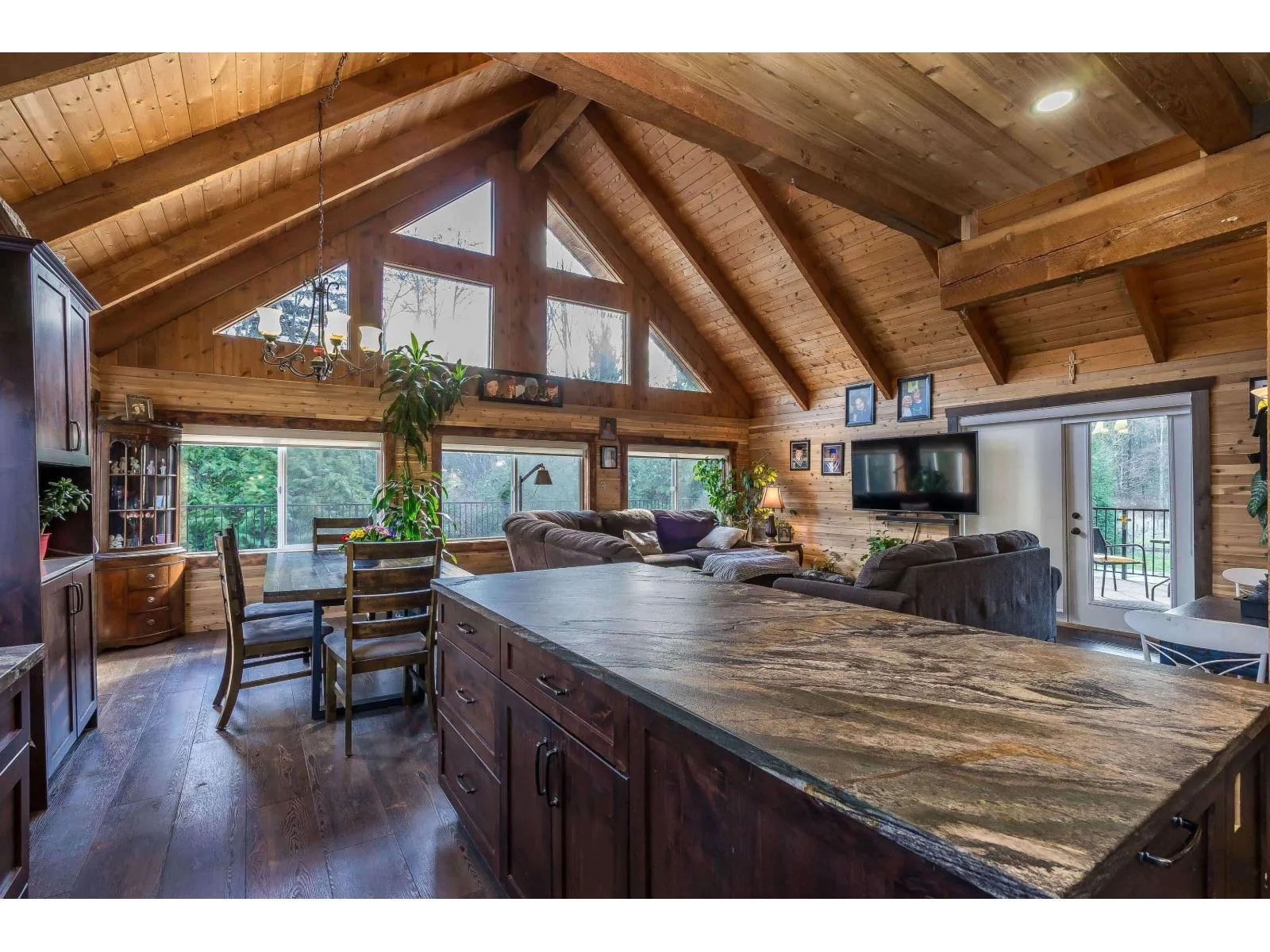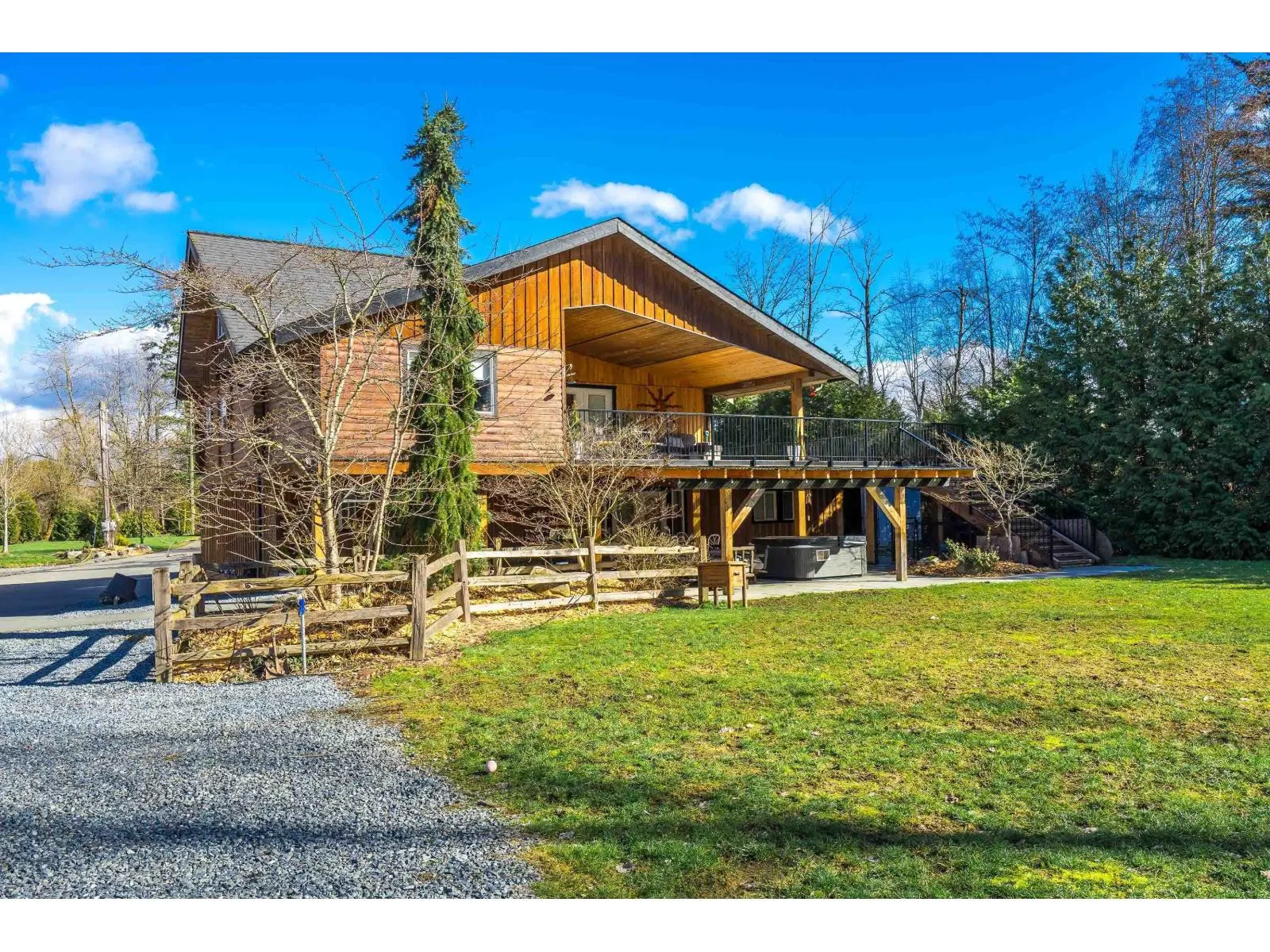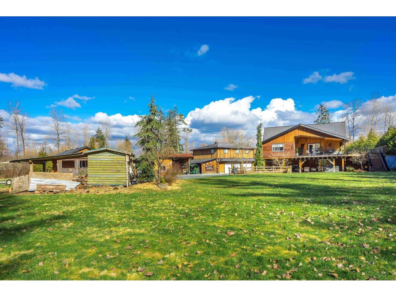 Live as if you're in your own private gated estate-completely secluded and secure behind a long driveway offering total peace and privacy. This unique property features three separate dwellings, ideal for multi-generational living or generating rental income. The main residence blends rustic log charm with wood-frame warmth across 3,278 SQFT of inviting space, complemented by a coach home above a large detached shop and a separate self-contained 1-bedroom guest bungalow. Backing onto West Creek Park, this rare retreat combines a serene country setting with quick access to Highway 1, Gloucester Industrial Park, and Fort Langley. (id:27476)