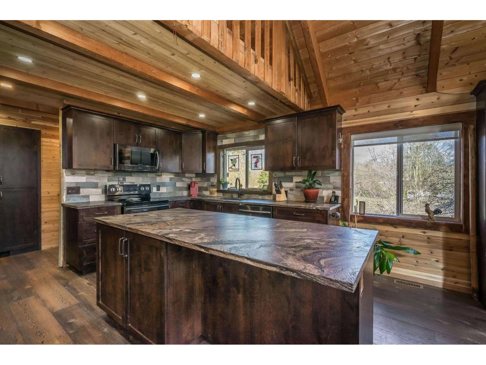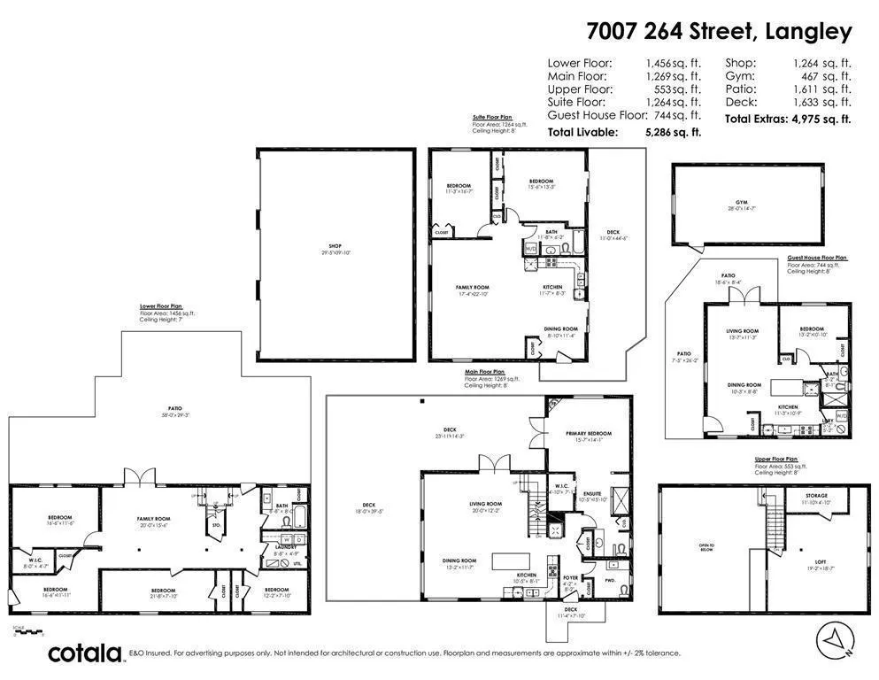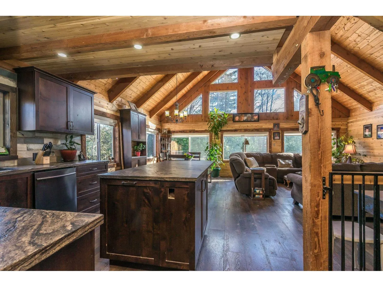 Live as if you're in your own private gated estate-completely secluded and secure behind a long driveway offering total peace and privacy. This unique property features three separate dwellings, ideal for multi-generational living or generating rental income. The main residence blends rustic log charm with wood-frame warmth across 3,278 SQFT of inviting space, complemented by a coach home above a large detached shop and a separate self-contained 1-bedroom guest bungalow. Backing onto West Creek Park, this rare retreat combines a serene country setting with quick access to Highway 1, Gloucester Industrial Park, and Fort Langley. (id:27476)