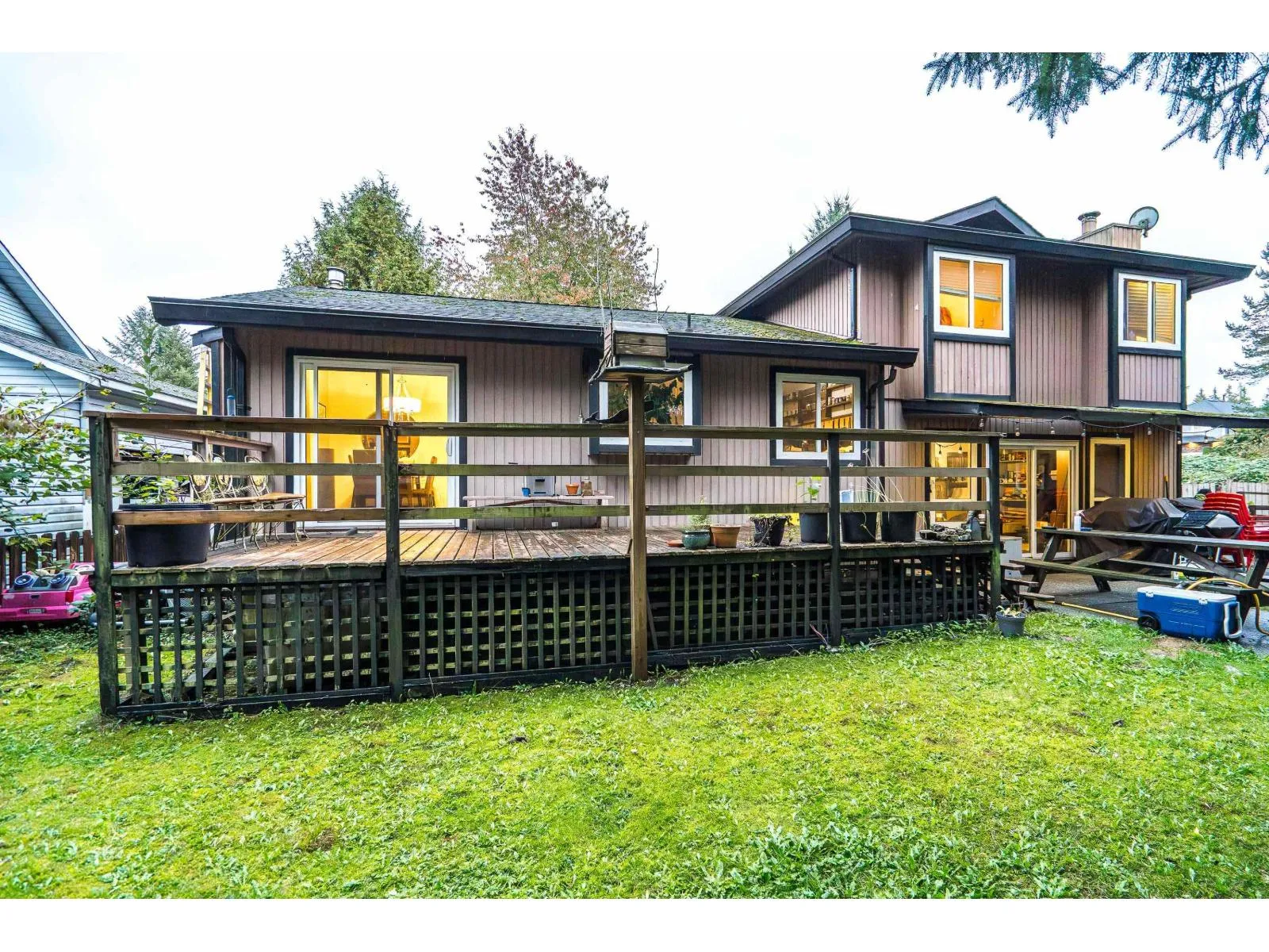 Investor Alert! Discover this spacious 5-bedroom, 3-bathroom home with two versatile flex rooms in highly sought-after Walnut Grove. Nestled on a quiet cul-de sac surrounded by newer homes, this property sits on an expansive almost 1/4-acre lot with a large, private backyard. The home features a unique and functional layout with vaulted ceilings in the living room, a primary bedroom with ensuite, and a bonus den off the entryway. Enjoy a double garage, side access to the yard, and a 12'x20' detached workshop-perfect for hobbyists or extra storage. Plenty of vehicle and RV parking available. Conveniently located close to top-rated schools, shopping, transit, and highway access, this home is a rare find offering endless potential in one of Langley's most desirable neighborhoods! (id:27476)