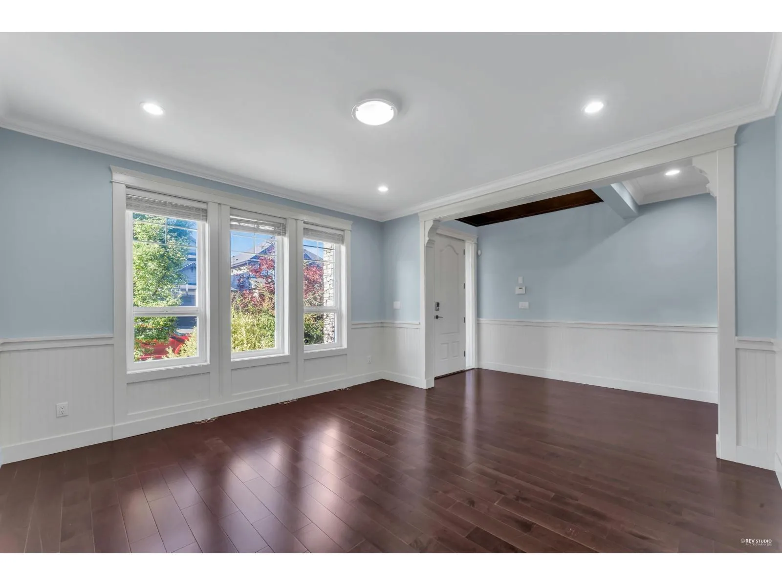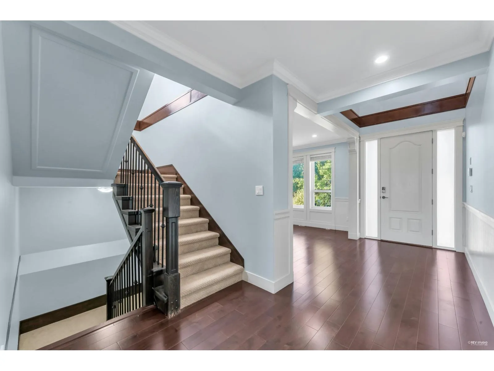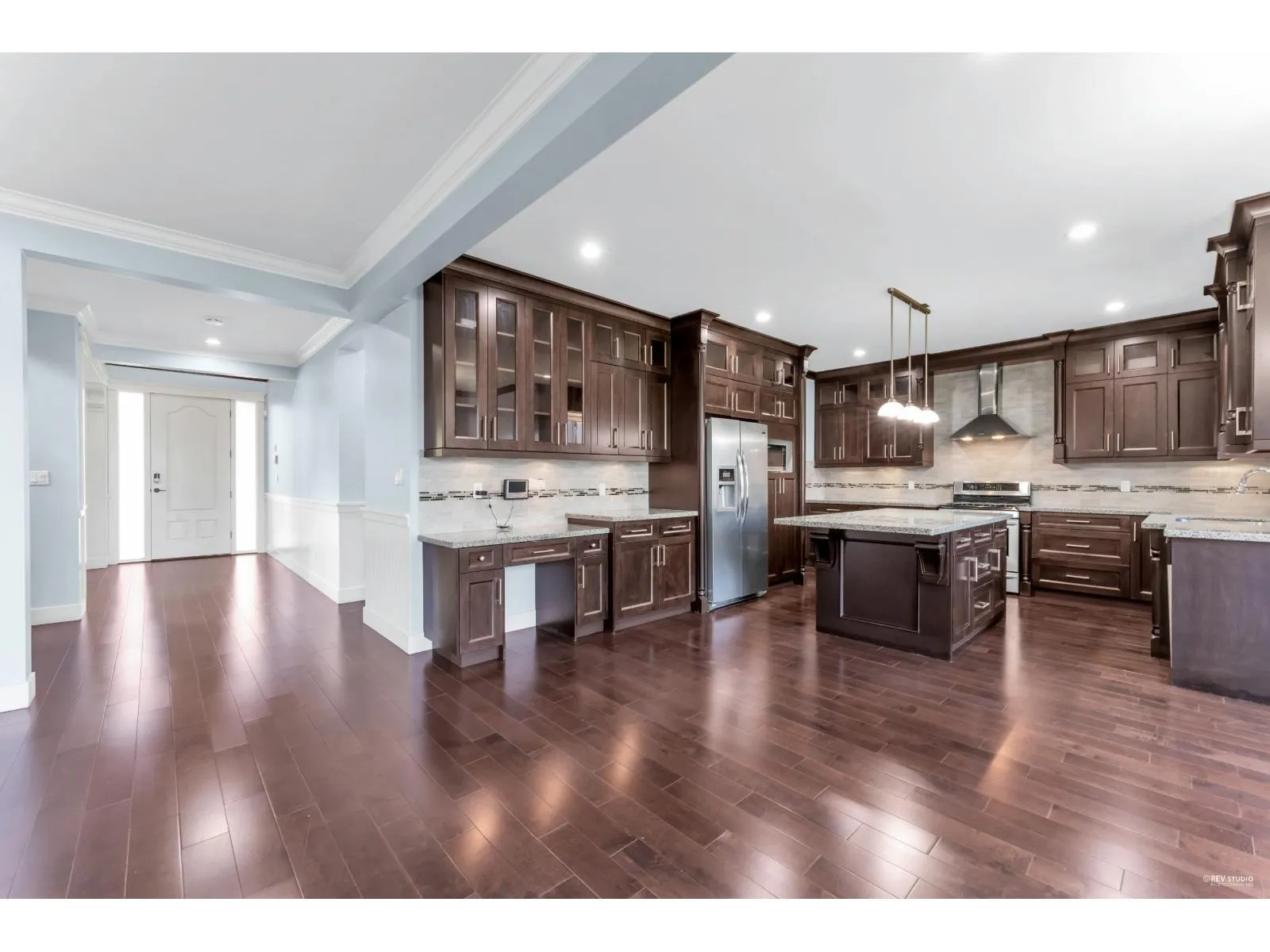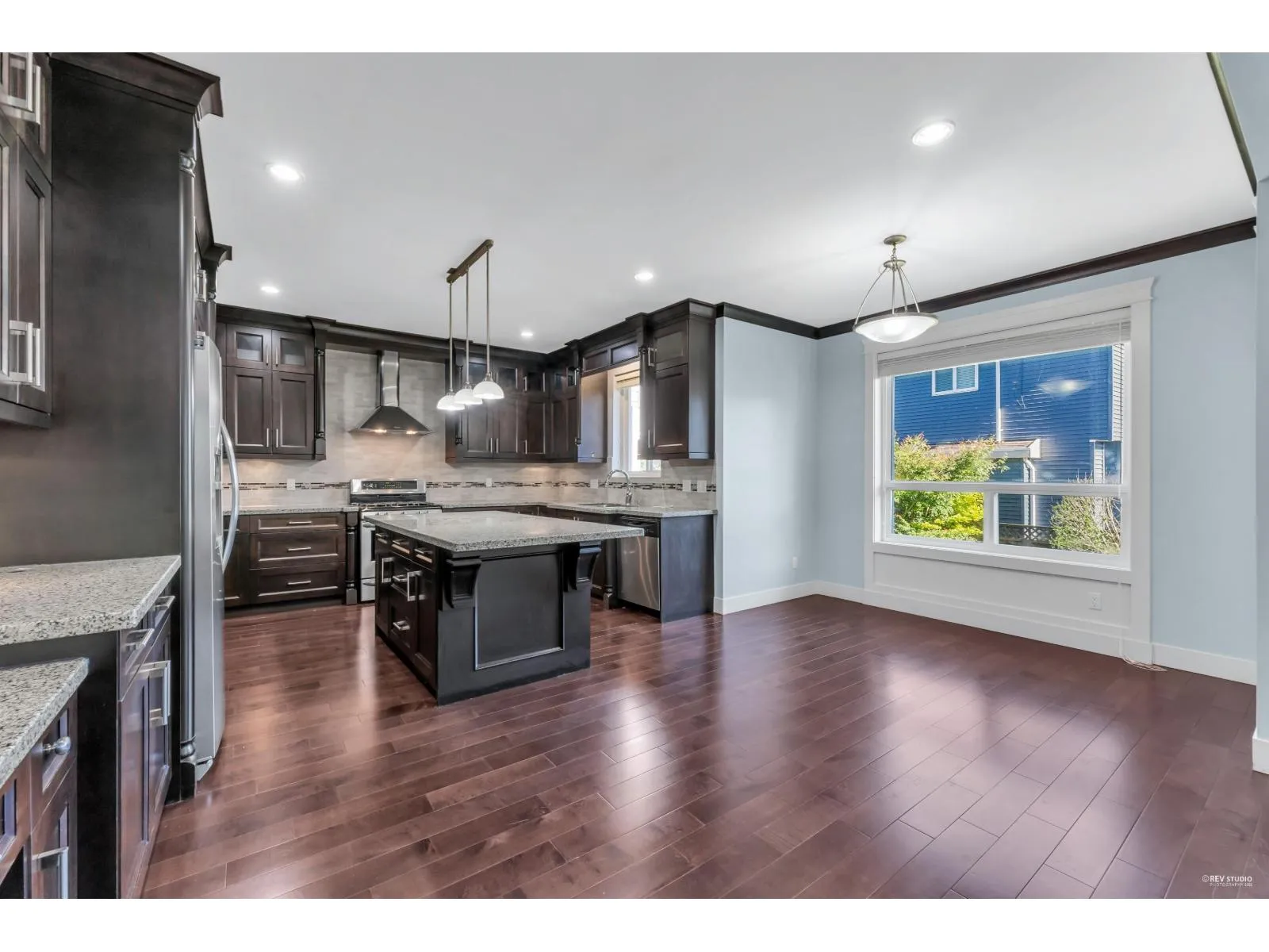 Luxurious home in Yorkson South! Featuring a gourmet kitchen with granite counters, large island with built-in drawers, custom maple cabinets, S/S appliances & gas stove. Main floor offers a spacious office/living space with wainscoting, plus a bright family room with gas fireplace, custom built-ins & engineered hardwood floors. Upstairs includes a primary suite with walk-in closet & organizers, ensuite with jacuzzi tub, granite counters, maple cabinets, separate showers & mountain views. Radiant heat, designer lighting & crown mouldings throughout the top two floors. Basement includes media room & 2-bed legal suite with new laminate flooring. Close to Lynn Fripps Elementary, parks & shopping. (id:27476)
