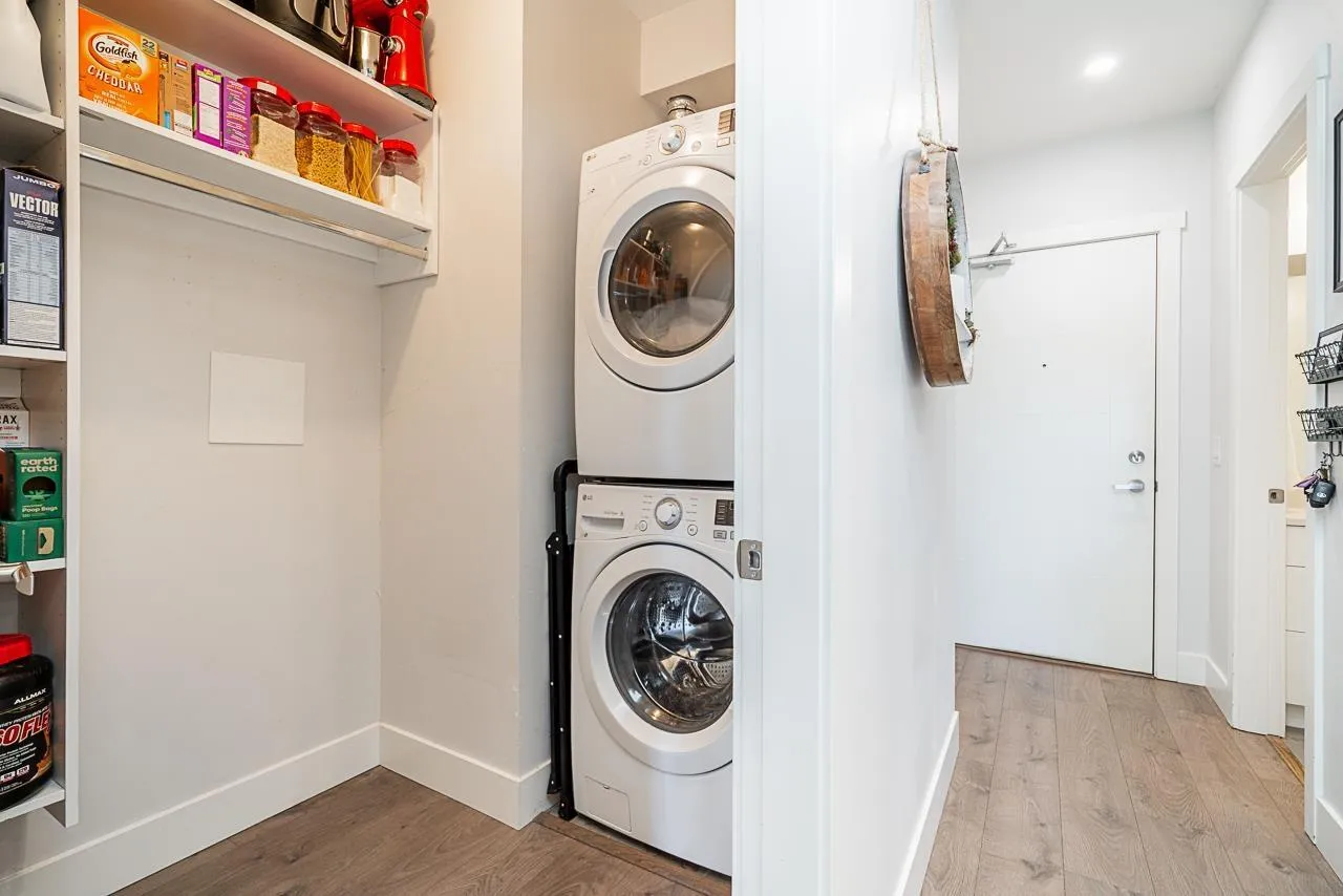 Welcome to your new home at The Benjamin in Langley City! This 773 sqft ground-level, west-facing unit is ideal for pet owners - with no size or weight restrictions for dogs. Inside, you'll find durable laminate flooring and a bright, open-concept living space. The kitchen features quartz countertops and stainless steel appliances, perfect for those who love to cook. The spacious primary bedroom includes a walk-in closet, a private ensuite bathroom and air conditioning. Enjoy the convenience of in-suite storage and laundry, and step out onto your private patio - great for morning coffee or letting the dog out with ease. One parking stall is included. (id:27476)