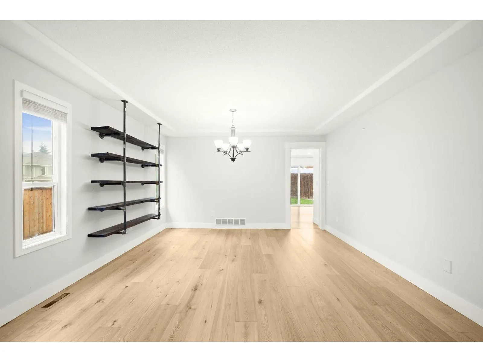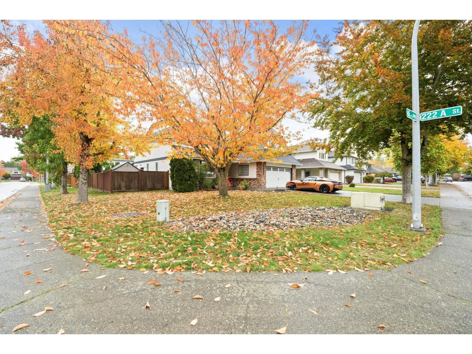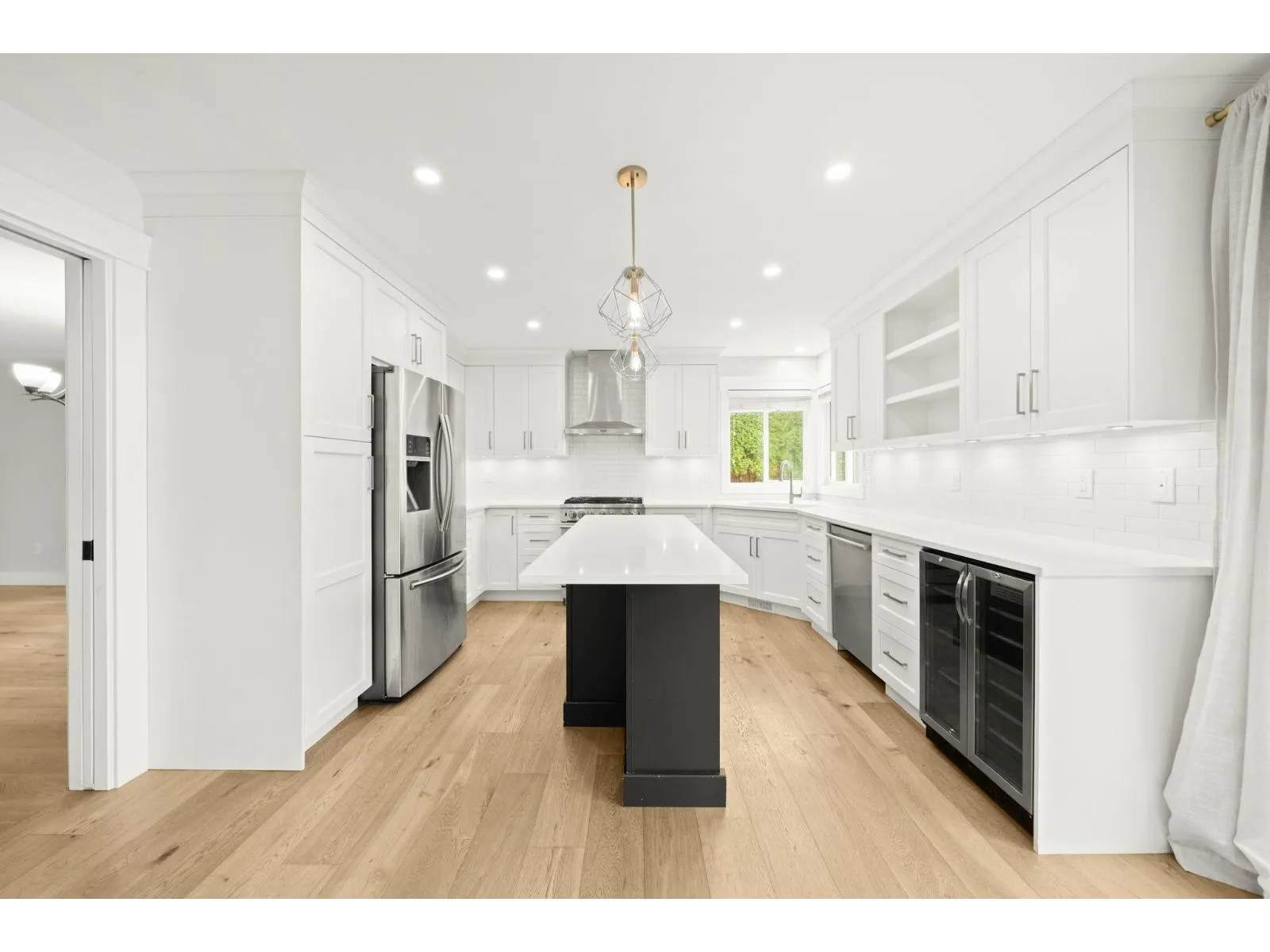 Beautiful corner home on one of Upper Murrayville's sought-after quiet streets! This updated 5 bed, 3 bath home with a large main-floor den offers over 2,900 sq ft of living space. The tall ceiling entry welcomes you to a curved staircase leading to the bedrooms upstairs. The backyard has a spacious deck and gas hookup, perfect for entertaining! The high end custom kitchen includes stainless steel appliances, gas range, quartz countertops, a wine cooler, and is ideally situated between the open dining and living areas. Upstairs features all 5 bedrooms, including a generous primary suite with a walk in closet and 5 piece ensuite. Updates include newer appliances, hot water tank, fireplace, fence, and more. Cozy forced-air heating throughout, large crawl space for storage, and a 2 car garage with a driveway fitting 4 vehicles comfortably. Book your viewing today! (id:27476)