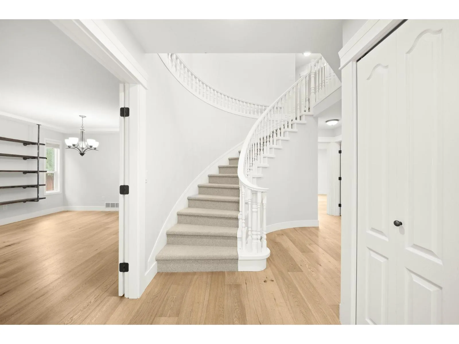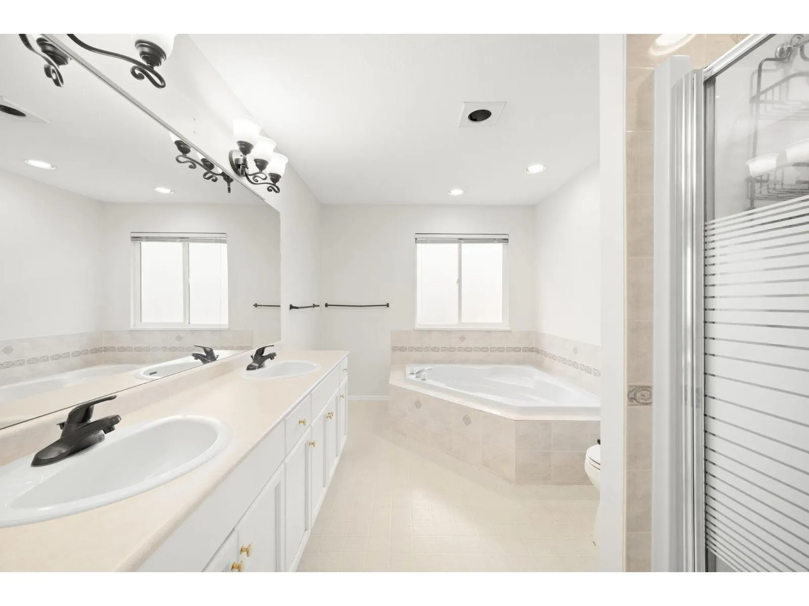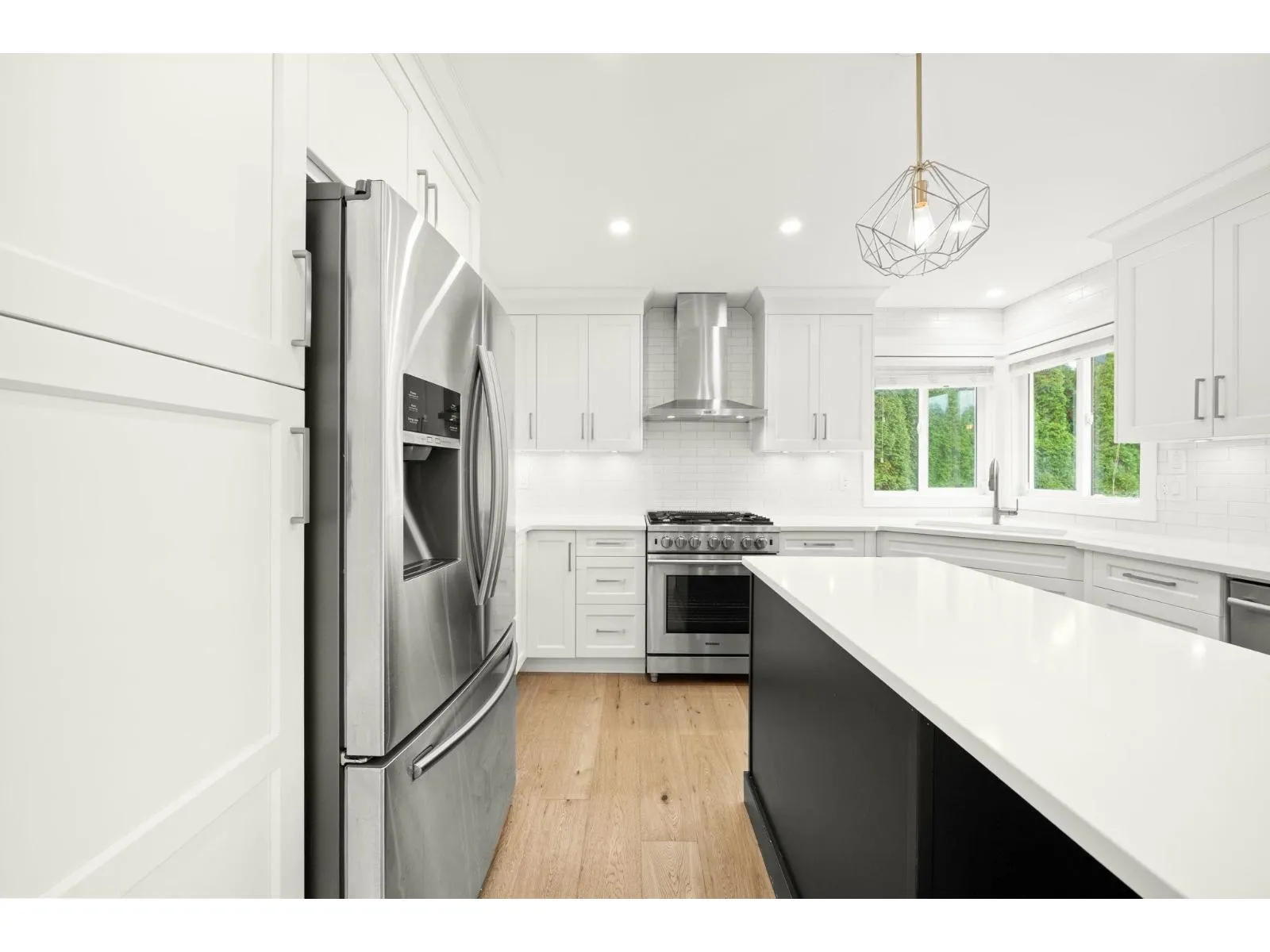 Beautiful corner home on one of Upper Murrayville's sought-after quiet streets! This updated 5 bed, 3 bath home with a large main-floor den offers over 2,900 sq ft of living space. The tall ceiling entry welcomes you to a curved staircase leading to the bedrooms upstairs. The backyard has a spacious deck and gas hookup, perfect for entertaining! The high end custom kitchen includes stainless steel appliances, gas range, quartz countertops, a wine cooler, and is ideally situated between the open dining and living areas. Upstairs features all 5 bedrooms, including a generous primary suite with a walk in closet and 5 piece ensuite. Updates include newer appliances, hot water tank, fireplace, fence, and more. Cozy forced-air heating throughout, large crawl space for storage, and a 2 car garage with a driveway fitting 4 vehicles comfortably. Book your viewing today! (id:27476)