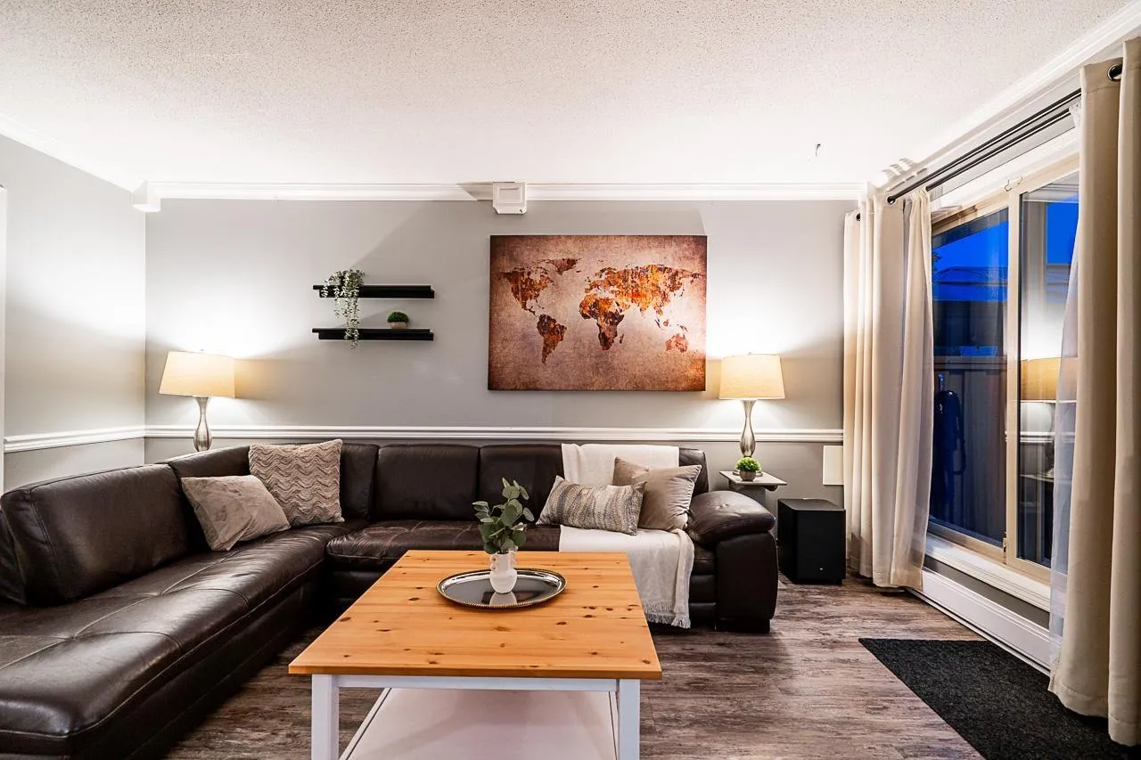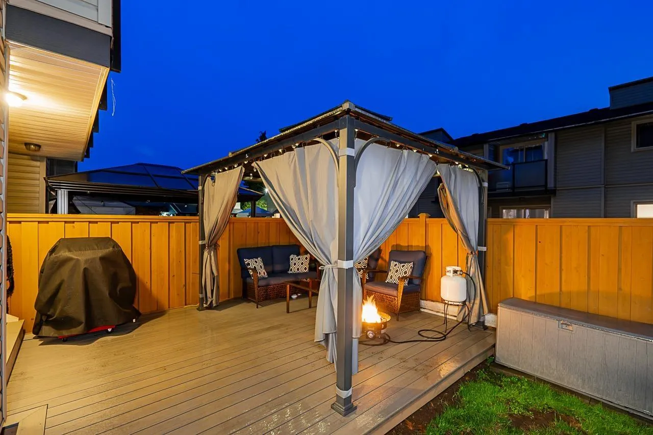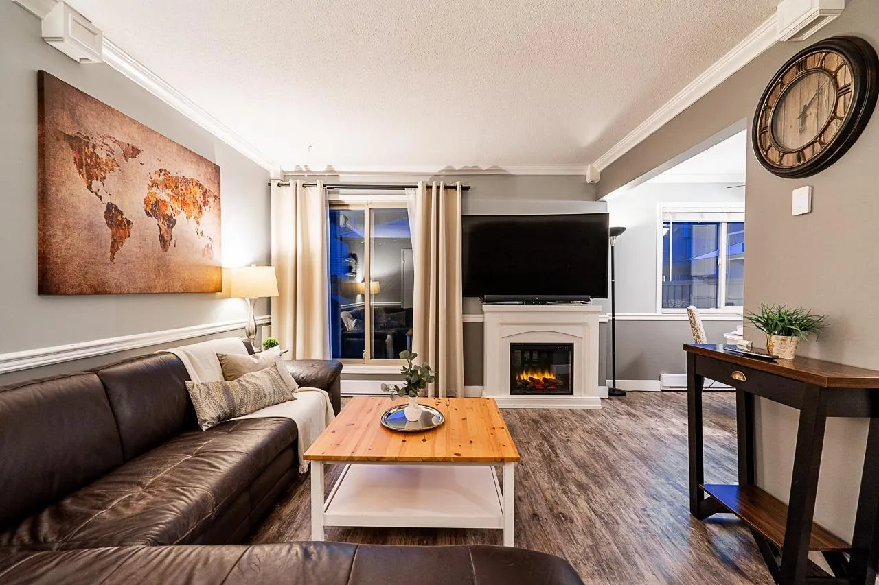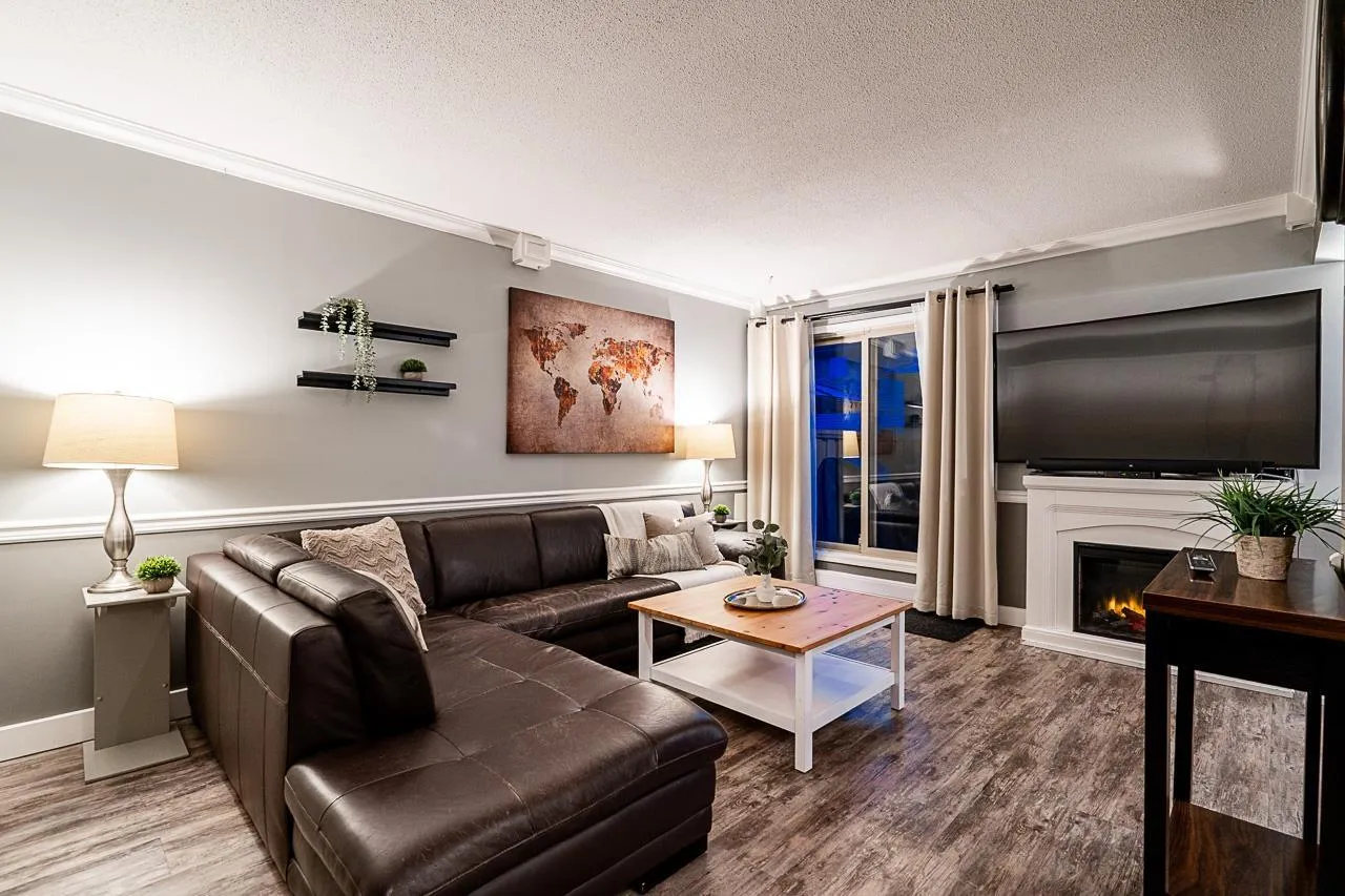 PRICED BELOW THE LAST SALE. Beautiful 3-bedroom townhome in the popular well maintained complex CEDAR PARK. 2 pets any size welcome and tons of parking on a first come basis. This unit offers a storage room, updated appliances, built in dining room hutch, electric fireplace, double glazed windows, private deck off the primary bedroom and newer laminate floors. Main bath has been completely renovated. Enjoy the east exposed fully fenced backyard with TREX decking ($5k) and gazebo. Walk to Parkside Elementary, the up & coming ATC shopping district, and the bus stop right there on 32nd. Home Sweet Home! (id:27476)