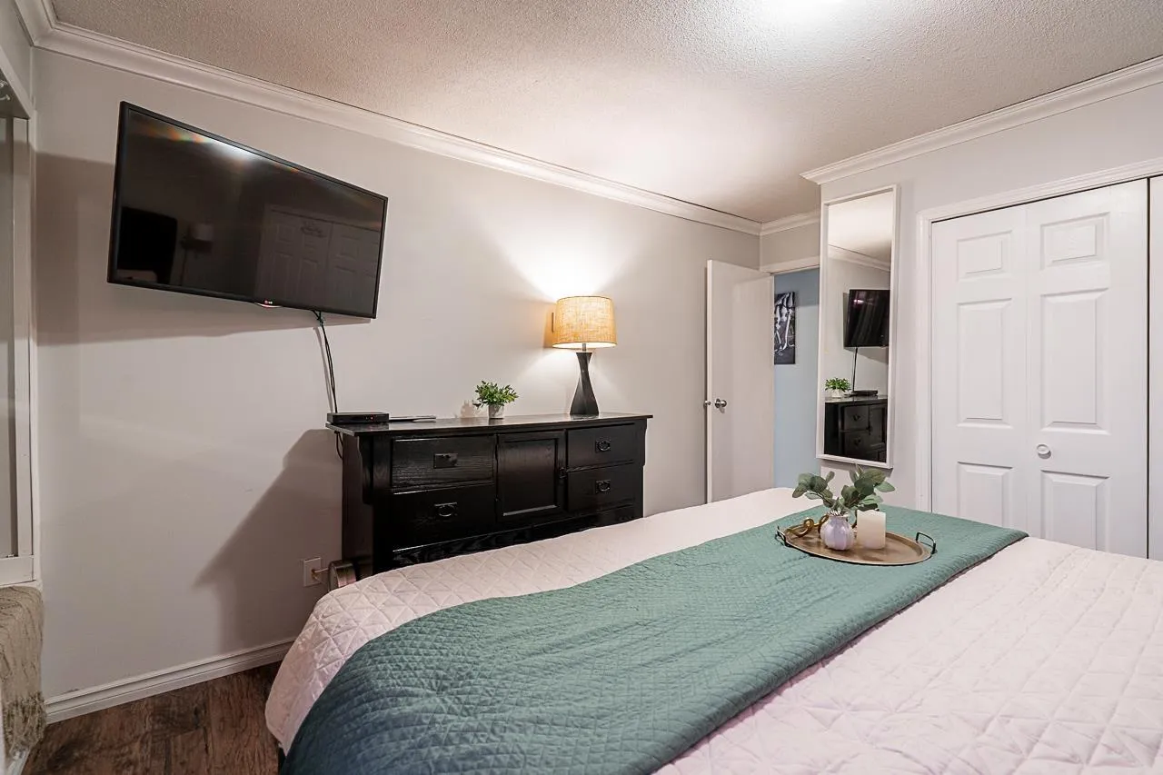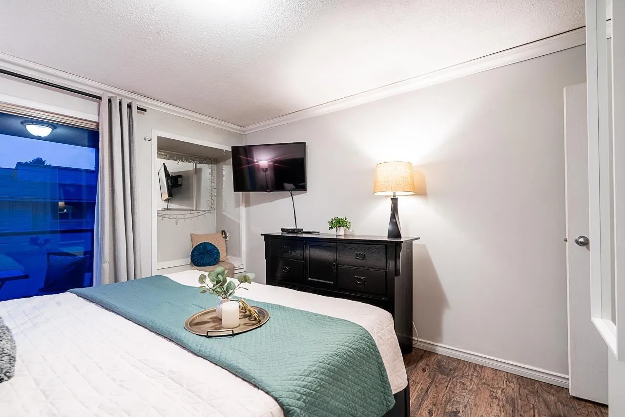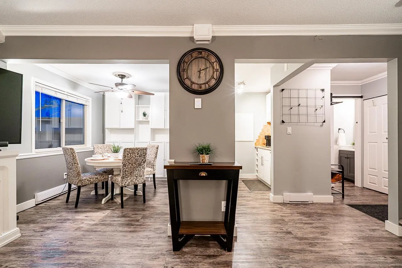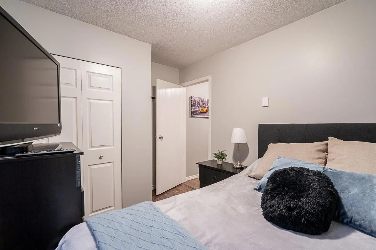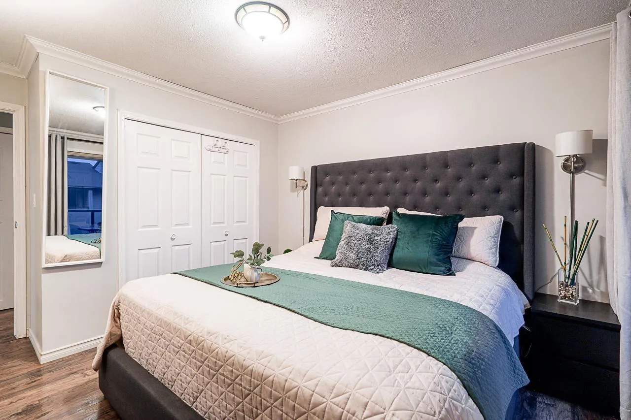PRICED BELOW THE LAST SALE. Beautiful 3-bedroom townhome in the popular well maintained complex CEDAR PARK. 2 pets any size welcome and tons of parking on a first come basis. This unit offers a storage room, updated appliances, built in dining room hutch, electric fireplace, double glazed windows, private deck off the primary bedroom and newer laminate floors. Main bath has been completely renovated. Enjoy the east exposed fully fenced backyard with TREX decking ($5k) and gazebo. Walk to Parkside Elementary, the up & coming ATC shopping district, and the bus stop right there on 32nd. Home Sweet Home! (id:27476)