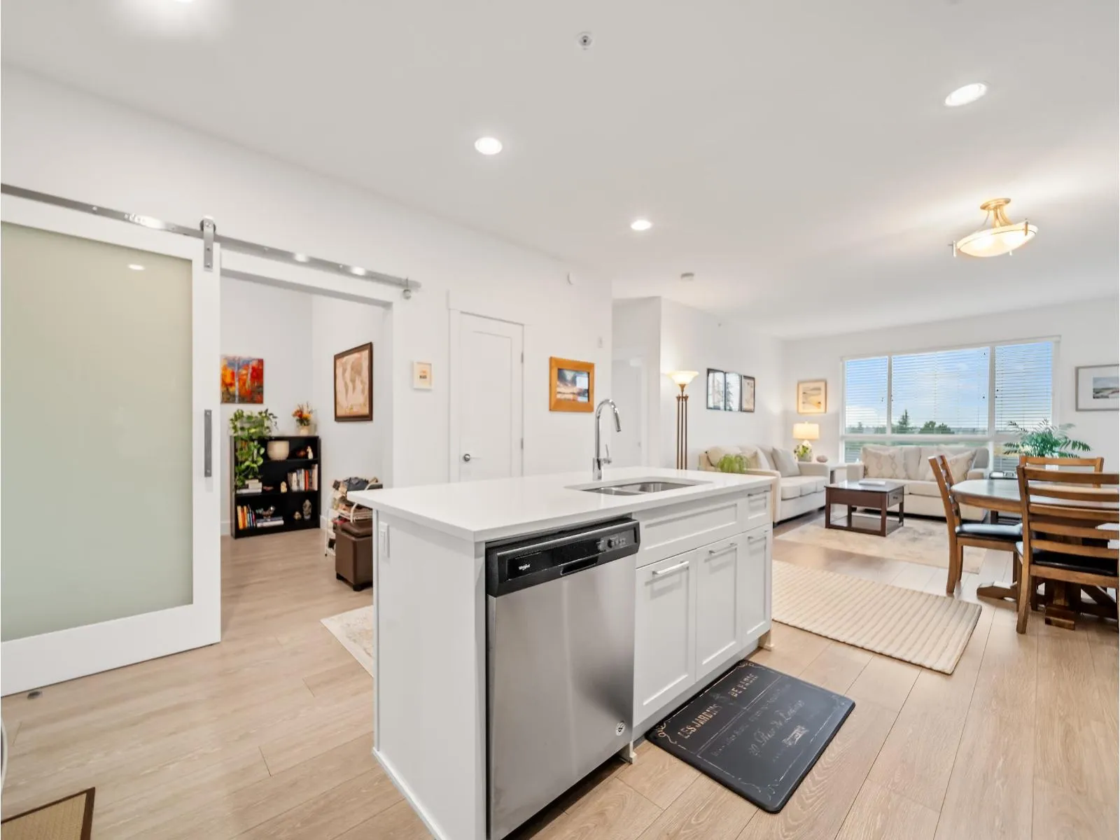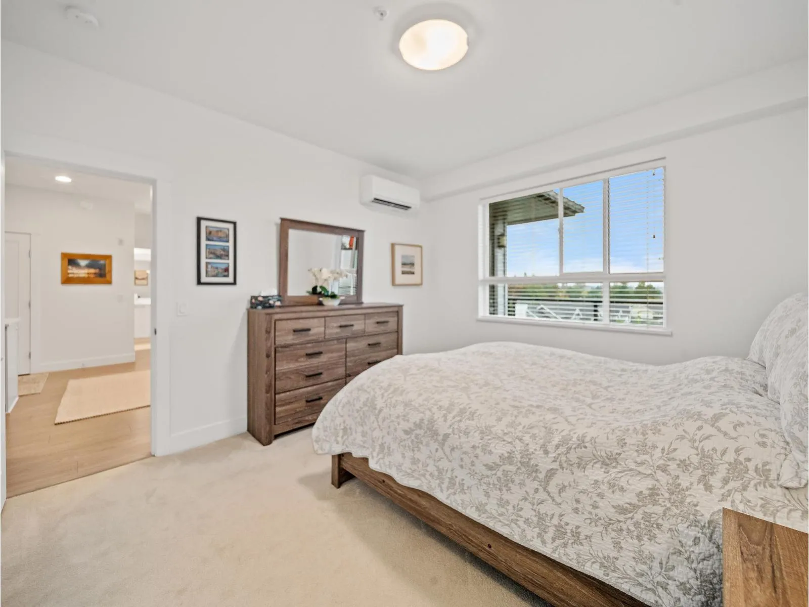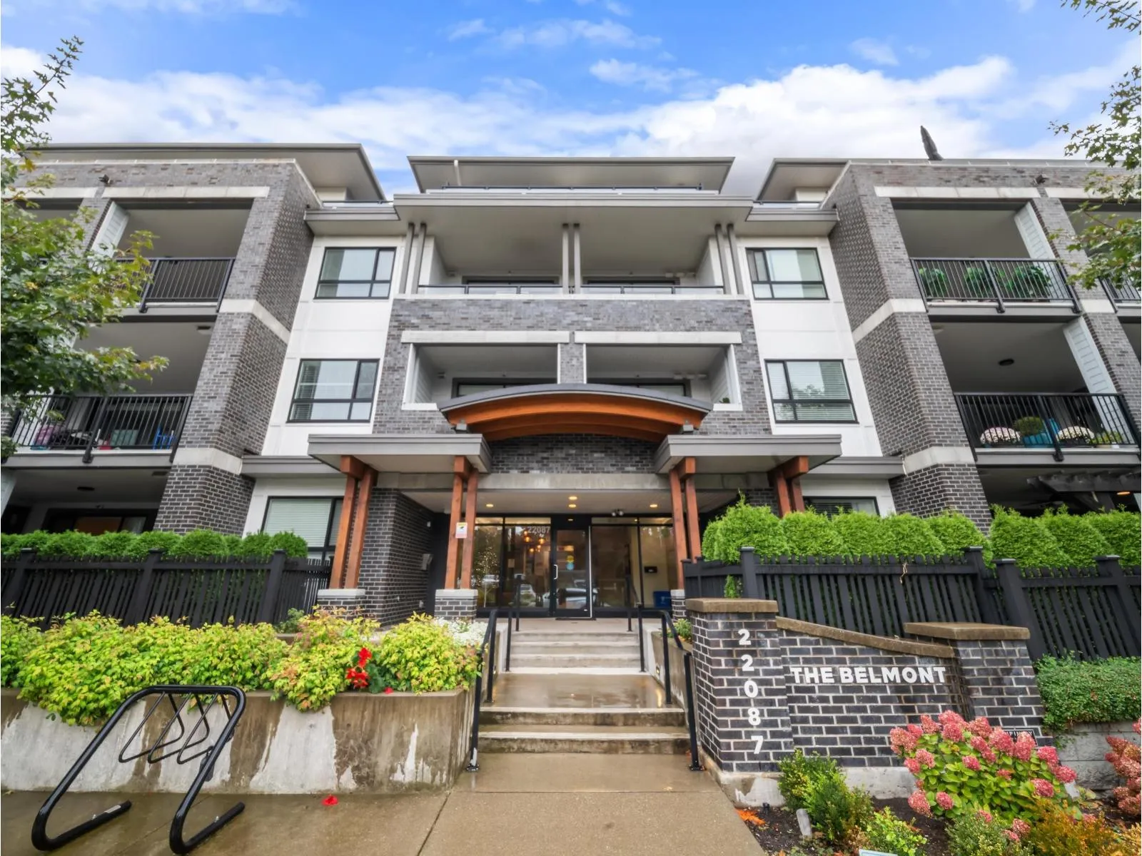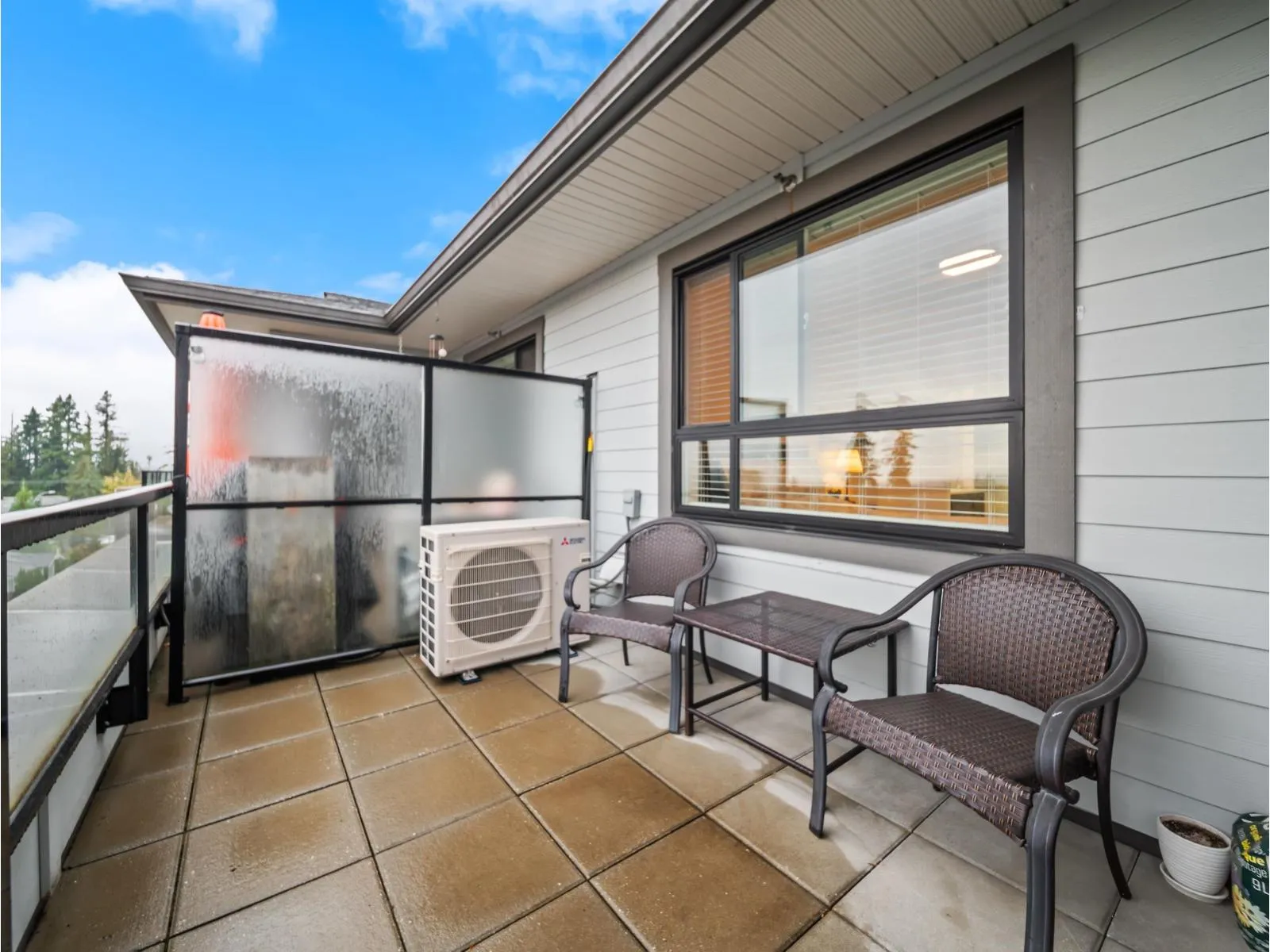 Sunset views and peaceful privacy define this top-floor 2 bed, 2 bath penthouse at The Belmont by award-winning Infinity Properties. Set well back from Fraser Highway, this home offers a quiet, private balcony overlooking the city and mountains - the perfect spot to unwind and take in the evening light. Inside, you'll find a bright, open layout with 9 ft ceilings, quartz countertops, a large island, and air conditioning for year-round comfort. The primary bedroom features a large walk-in closet and ensuite. Complete with 2 parking stalls, a storage locker, and access to the clubhouse with lounge, pool table, and outdoor patio. Located just steps from WC Blair Rec Centre, Shoppers Drug Mart, Langley Memorial Hospital---this is penthouse living at its finest in the heart of Murrayville. (id:27476)