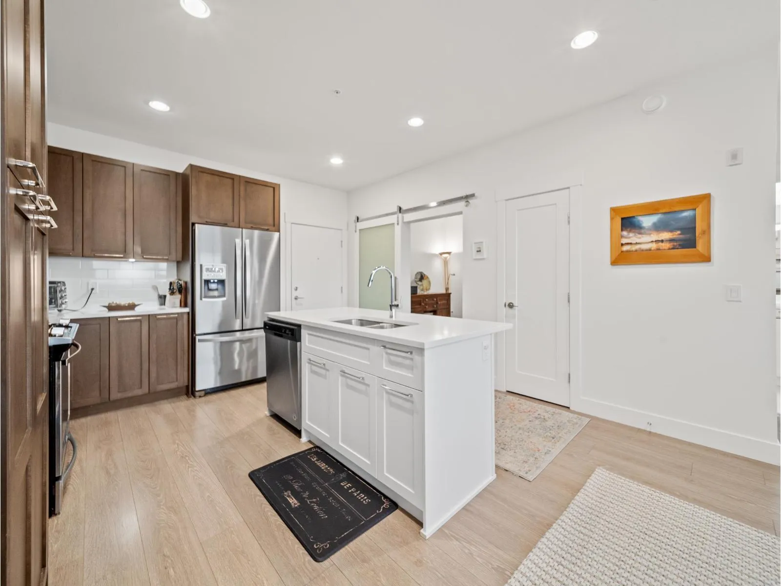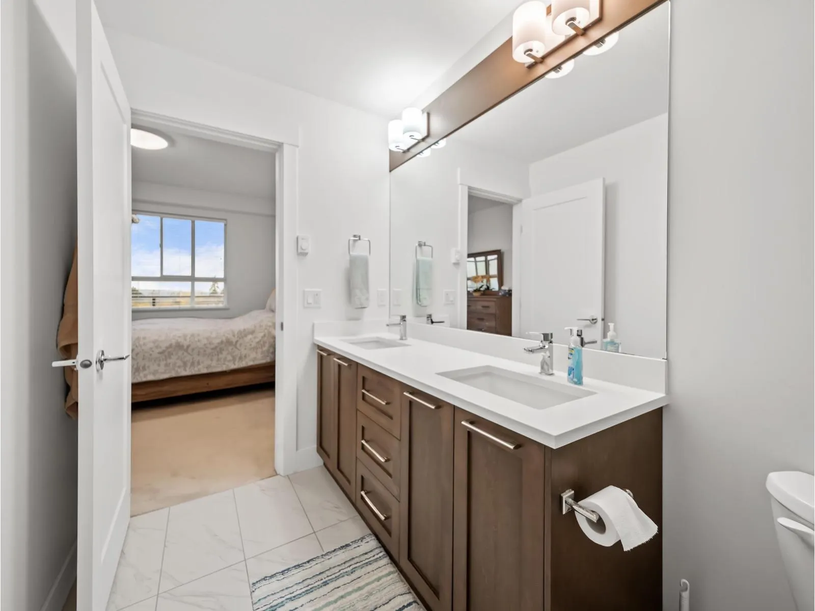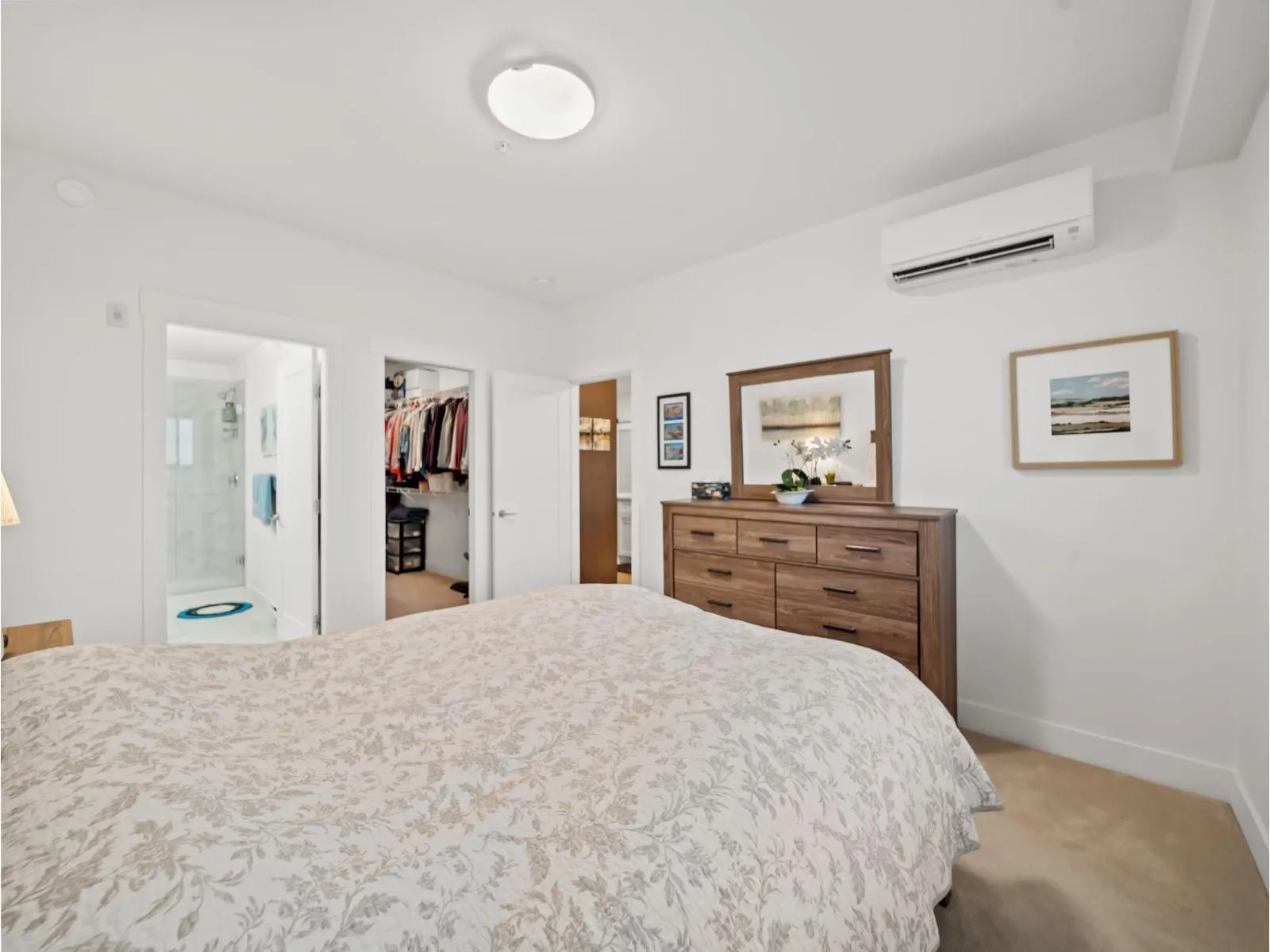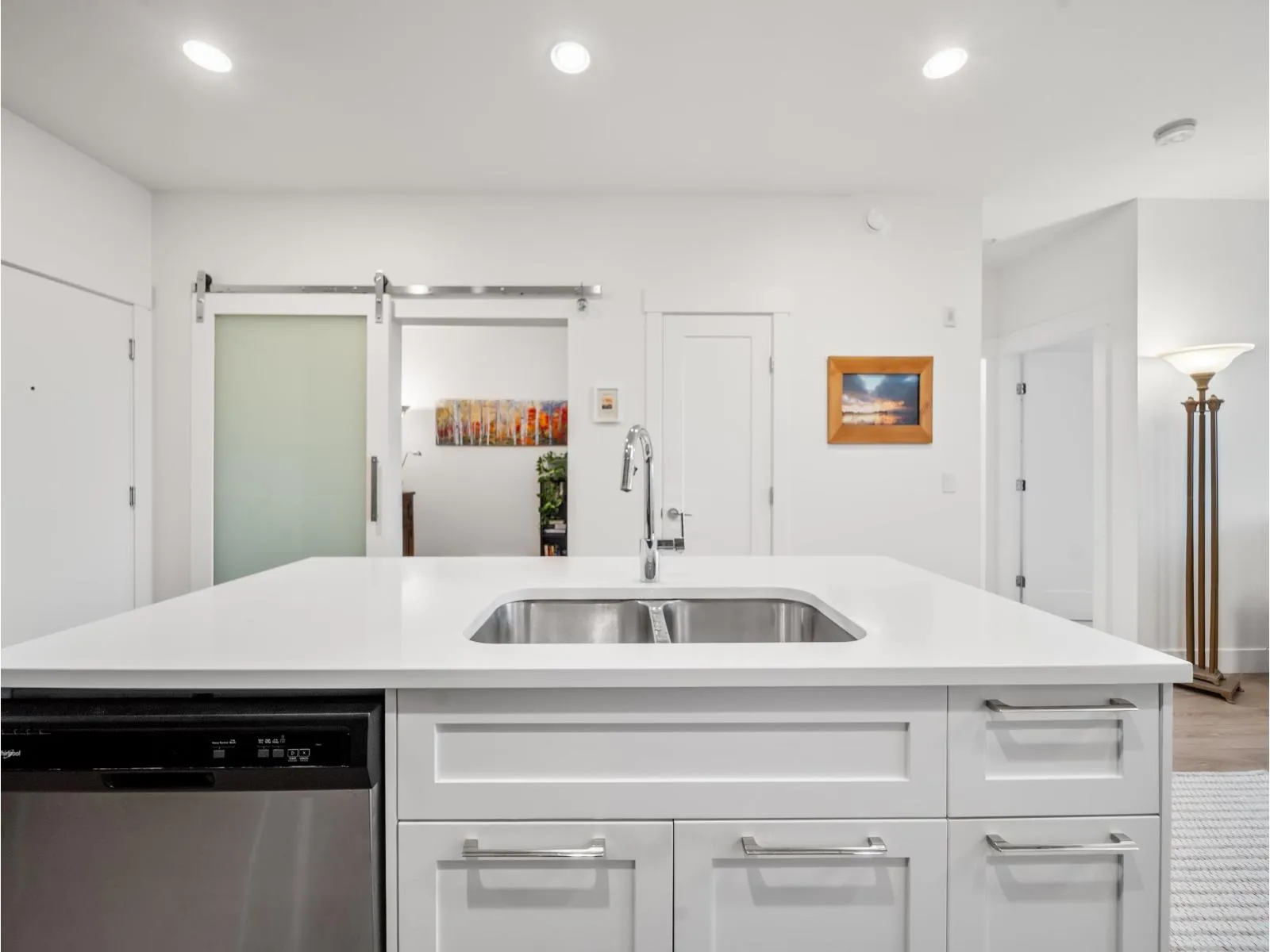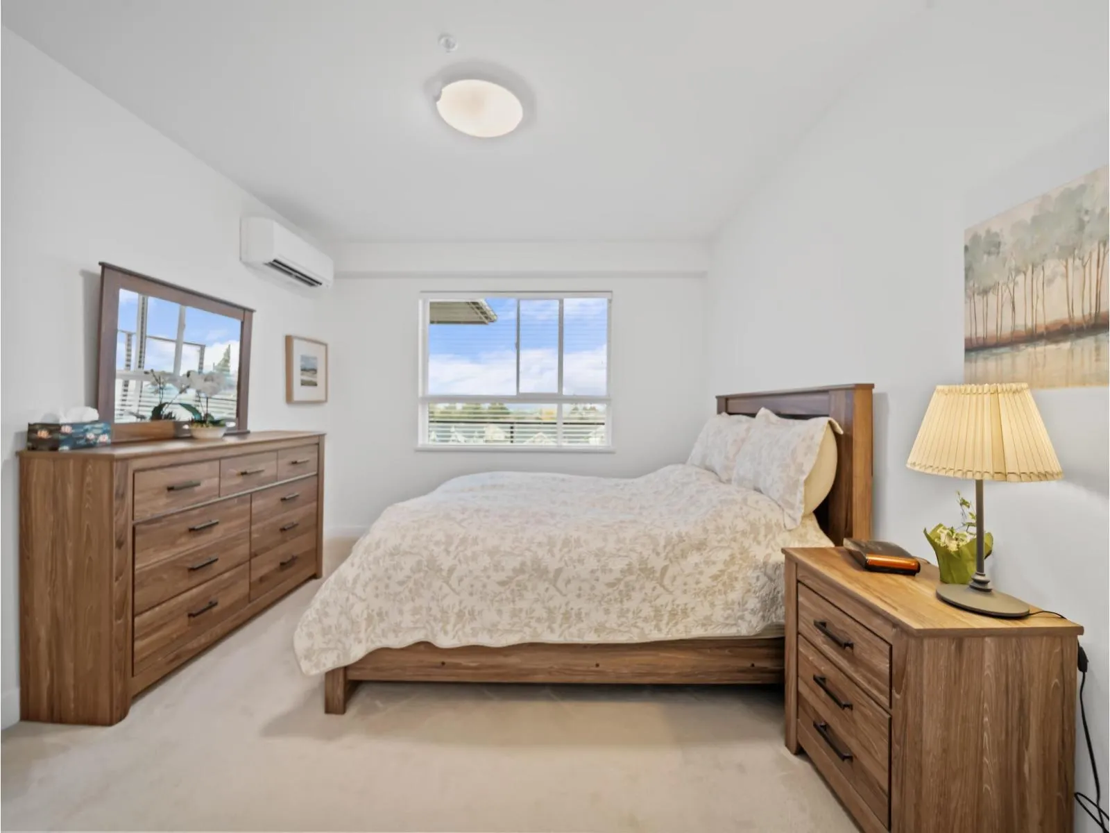 Sunset views and peaceful privacy define this top-floor 2 bed, 2 bath penthouse at The Belmont by award-winning Infinity Properties. Set well back from Fraser Highway, this home offers a quiet, private balcony overlooking the city and mountains - the perfect spot to unwind and take in the evening light. Inside, you'll find a bright, open layout with 9 ft ceilings, quartz countertops, a large island, and air conditioning for year-round comfort. The primary bedroom features a large walk-in closet and ensuite. Complete with 2 parking stalls, a storage locker, and access to the clubhouse with lounge, pool table, and outdoor patio. Located just steps from WC Blair Rec Centre, Shoppers Drug Mart, Langley Memorial Hospital---this is penthouse living at its finest in the heart of Murrayville. (id:27476)