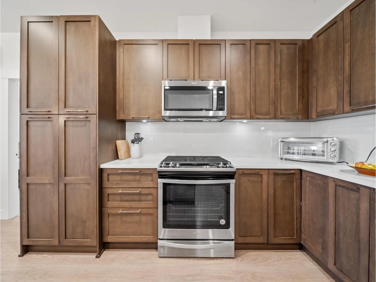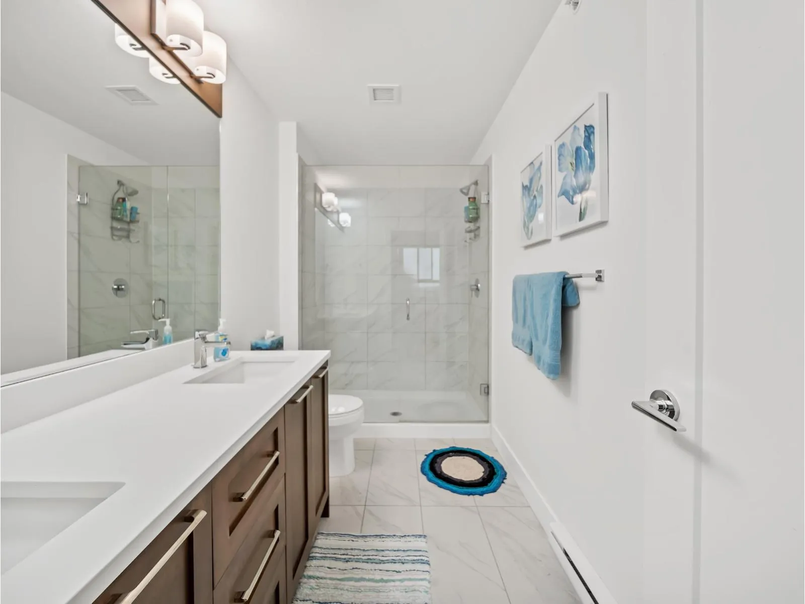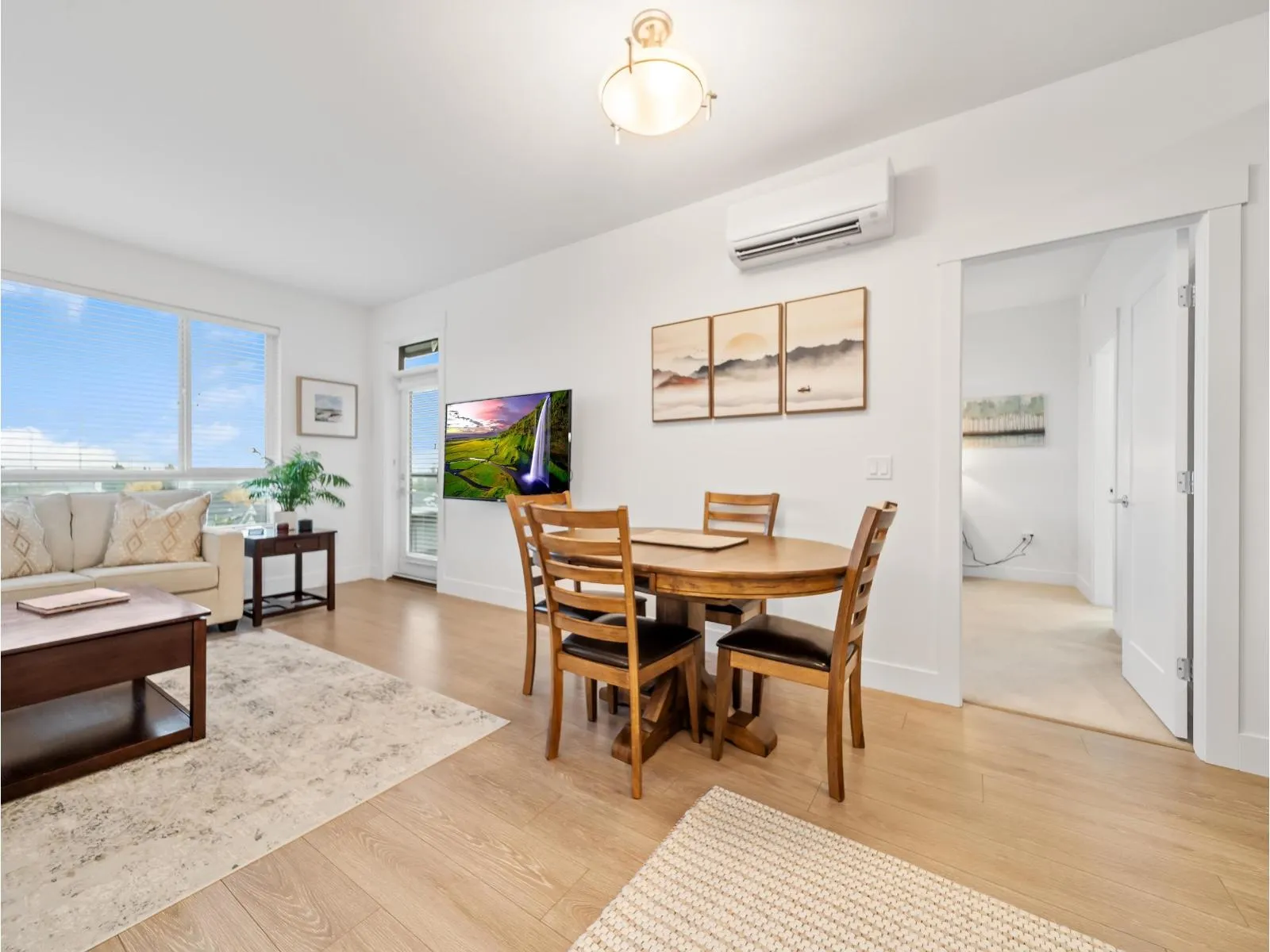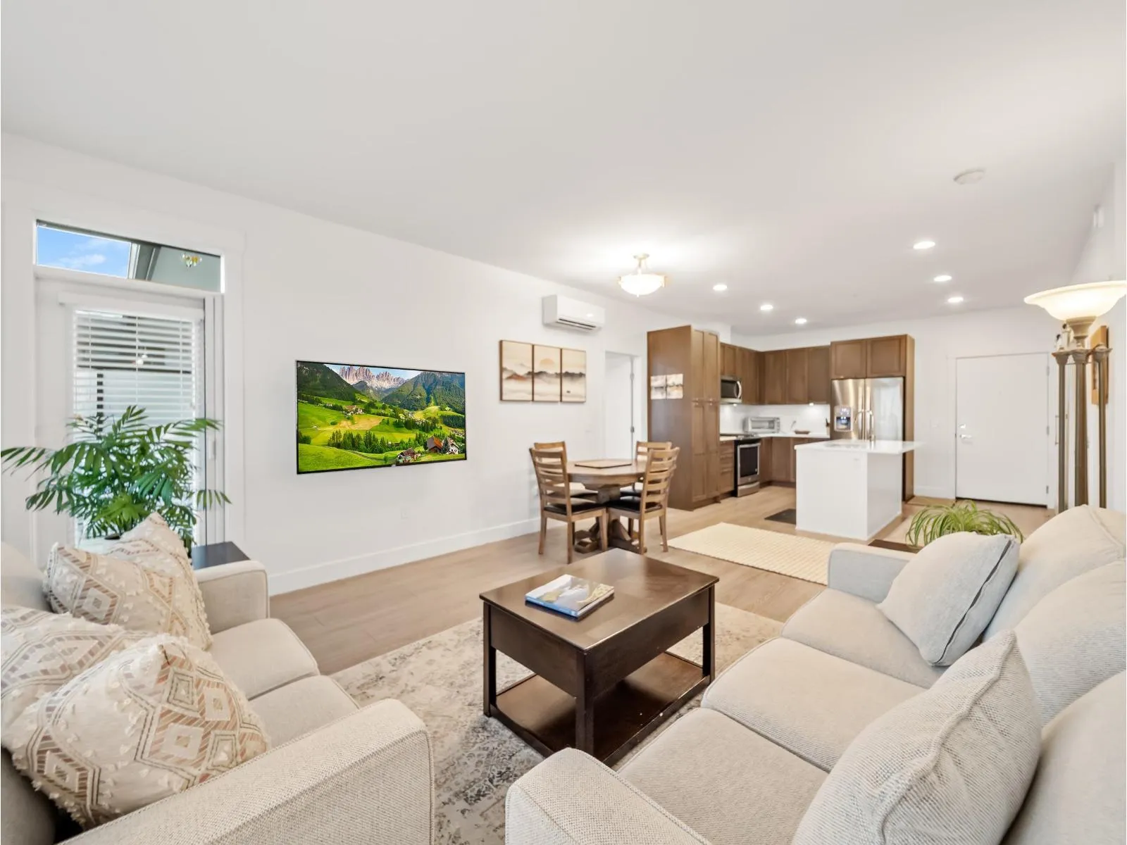Sunset views and peaceful privacy define this top-floor 2 bed, 2 bath penthouse at The Belmont by award-winning Infinity Properties. Set well back from Fraser Highway, this home offers a quiet, private balcony overlooking the city and mountains - the perfect spot to unwind and take in the evening light. Inside, you'll find a bright, open layout with 9 ft ceilings, quartz countertops, a large island, and air conditioning for year-round comfort. The primary bedroom features a large walk-in closet and ensuite. Complete with 2 parking stalls, a storage locker, and access to the clubhouse with lounge, pool table, and outdoor patio. Located just steps from WC Blair Rec Centre, Shoppers Drug Mart, Langley Memorial Hospital---this is penthouse living at its finest in the heart of Murrayville. (id:27476)