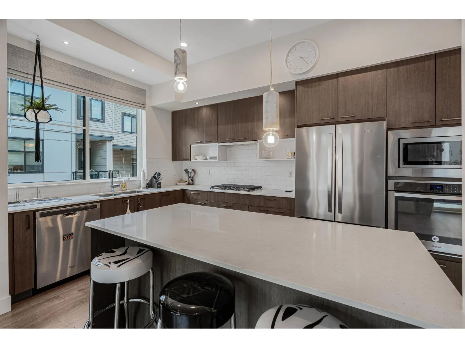 The former show home at Boulevard North, for sale for the first time. This 3 bed 3 bath end unit on the quiet side of the complex is sure to tick all your boxes. Main level is open concept with lots of natural light being an end unit. Gorgeous kitchen with a large island and tons of storage. This home has over $10,000 in cabinetry and upgrades. Side by side double garage provides 2 covered parking spaces. And who wouldn't love to enjoy their morning coffee on the rooftop deck while watching the sunrise. You'll love the location, just steps from shopping, restaurants and all levels of school. Catchments schools are: Richard Bulpitt Elementary, Yorkson Creek Middle & R.E. Mountain Secondary. Don't miss out on your opportunity to live in the Willoughby Heights community. Book a showing today. (id:27476)