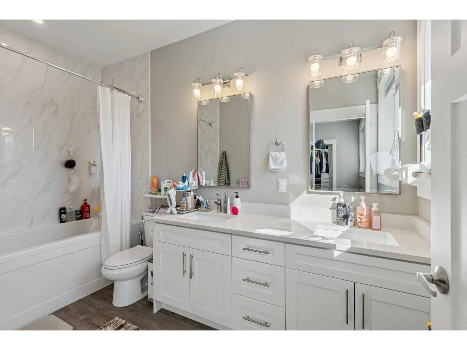 Almost new basement-entry home with a legal suite on a 6,021 sqft lot in sought-after Walnut Grove. Offering 2,275 sqft of living space, this home features 4 bedrooms, 3 bathrooms, and a den. The bright main level includes a spacious kitchen with quartz counters and stainless-steel appliances, open to the dining and living areas. The primary bedroom boasts a walk-in closet and a 5-piece ensuite with double sinks and a soaker tub. The ground floor offers a den, mudroom, and double garage with EV charger. A rear driveway from 210 Street provides ample parking for an RV or up to 6 vehicles. The secondary suite includes a private entrance, separate laundry, and a modern kitchen-ideal as a mortgage helper or in-law suite. Open House on November 16 from 2 to 4. (id:27476)