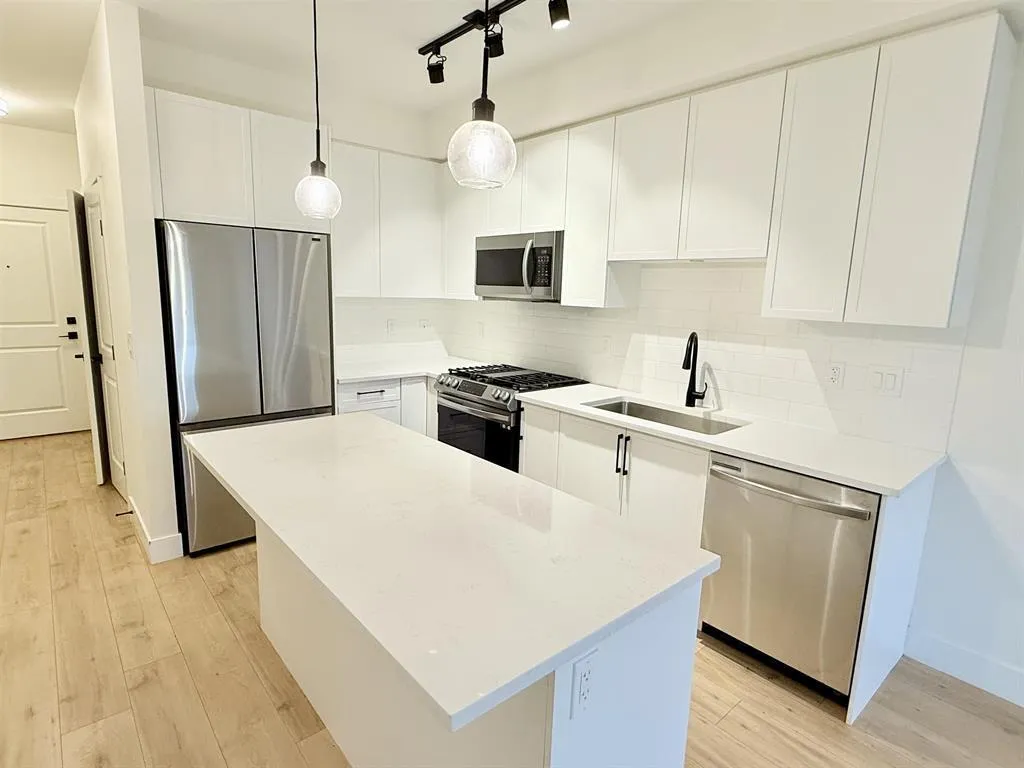 Discover this beautiful top-floor 2-bedroom, 2-bathroom condo offering modern design and exceptional comfort in Langley's newest community, West Village. This bright and spacious home features an open-concept layout with 9' ceilings, a Samsung stainless steel appliance package, soft-close cabinetry, quartz countertops, and a large kitchen island-perfect for cooking and entertaining. Enjoy the outdoors on your private oversized balcony with a gas BBQ hookup. Additional features include in-suite laundry, one dedicated parking stall, and elegant modern finishes throughout. Conveniently located near Willowbrook Mall, with easy access to shops, restaurants, schools, recreation facilities, transit, and the future SkyTrain station, Camden offers both comfort and connectivity. (id:27476)