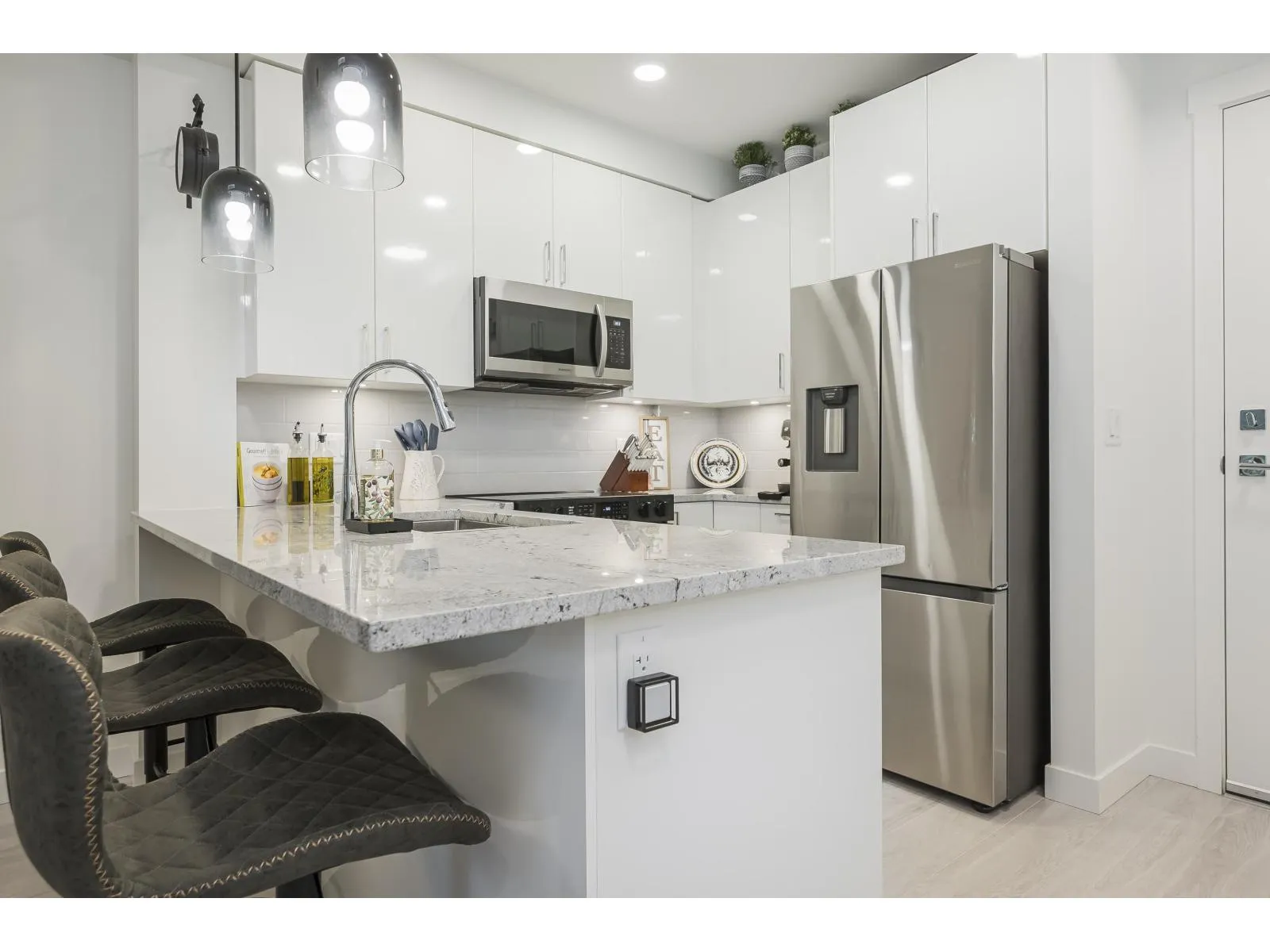 Bright and spotless 1 year old 1 bed ground-floor home w/ high-end finishes and an extra layer of gypcrete btwn floors so you don't hear neighbours above! Kitchen has quartz counters and designer lighting, bathroom w/ polished porcelain tile surround, an EV parking stall and extra large storage locker, gym, and entertaining lounge. Enjoy the best of both worlds at "Canvas" on Brydon Crescent, built by the reputable Redekop Reddale Group. Surrounded by miles of nature trails that lead to the Nicomekl River Habitat & Brydon Lagoon, you're also only a ten minute stroll to the soon to be built Langley city skytrain and express bus to the freeway! A perfect home at the perfect price for first time homebuyers (PTT exemption eligible) with 2/5/10 warranty and no GST. Book a showing before it's gone. Home is where your Storey begins! (id:27476)