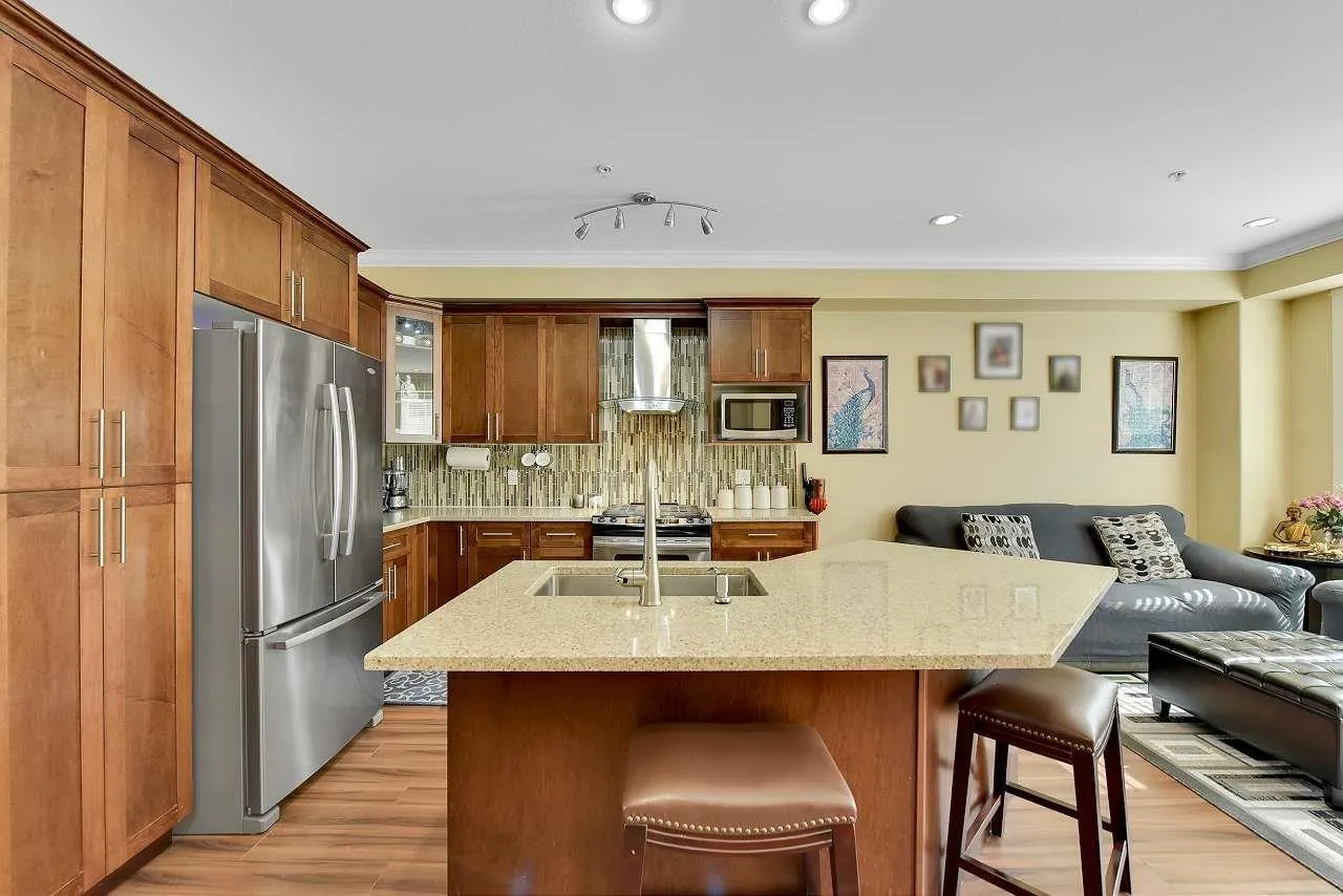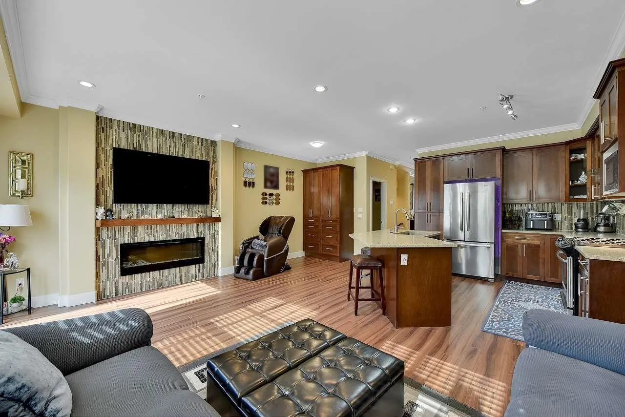 Rarely available! This beautiful row home with no strata fees is located in desirable Yorkson. Welcome home to your 4-bedroom and 3.5-bath property. The main floor features a formal living room and dining room. The gourmet kitchen has newer countertops and backsplash, a gas stove, and an oversized breakfast bar. Adjacent is the family room with a fireplace and access to the oversized deck with a new glass awning to enjoy year-round. Upstairs has 3 bedrooms; the master bedroom is oversized with a spa-like ensuite. Downstairs is an open rec room or bedroom with a full attached bath. There's a side-by-side double garage with a full-size driveway that will fit 2 big trucks for a total of 4 parking spots. It is located on a quiet street, close to shopping, restaurants, and schools. (id:27476)