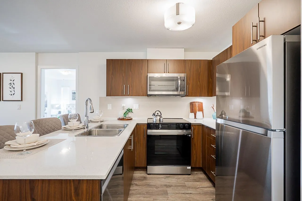 Welcome to this ULTRA CLEAN, move-in-ready 2-bedroom, 2-bathroom and Den condo in the heart of Walnut Grove! Spanning 1,000 sqft, this freshly updated home features brand new paint, new carpets, all new roller shade blinds, and new stainless steel appliances. The open concept layout offers a bright and spacious living area, ideal for both relaxing and entertaining. Bedrooms are thoughtfully separated for added privacy, with the primary boasting a full ensuite and walk in closet. Located in a well-managed building with secure underground parking with 2 parking spaces and within walking distance to restaurants, shops, transit, and more. A perfect home or investment in a prime Langley location! (id:27476)