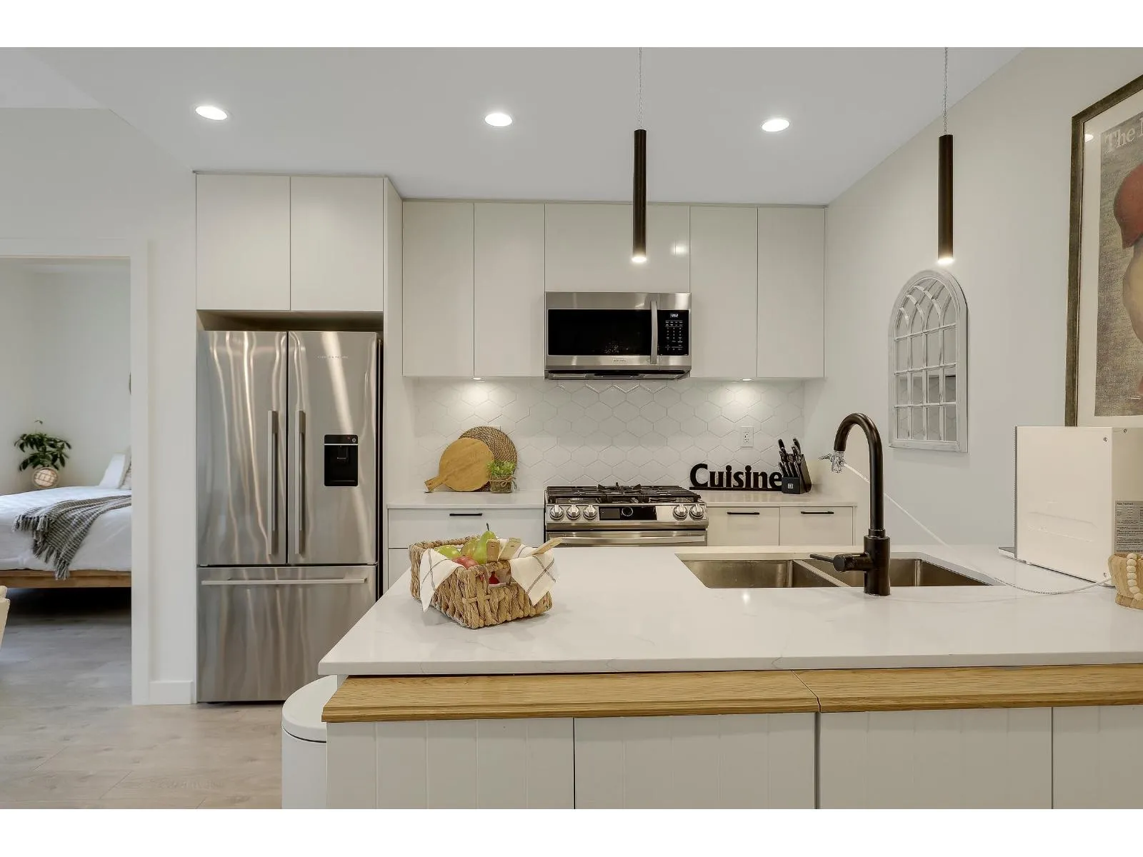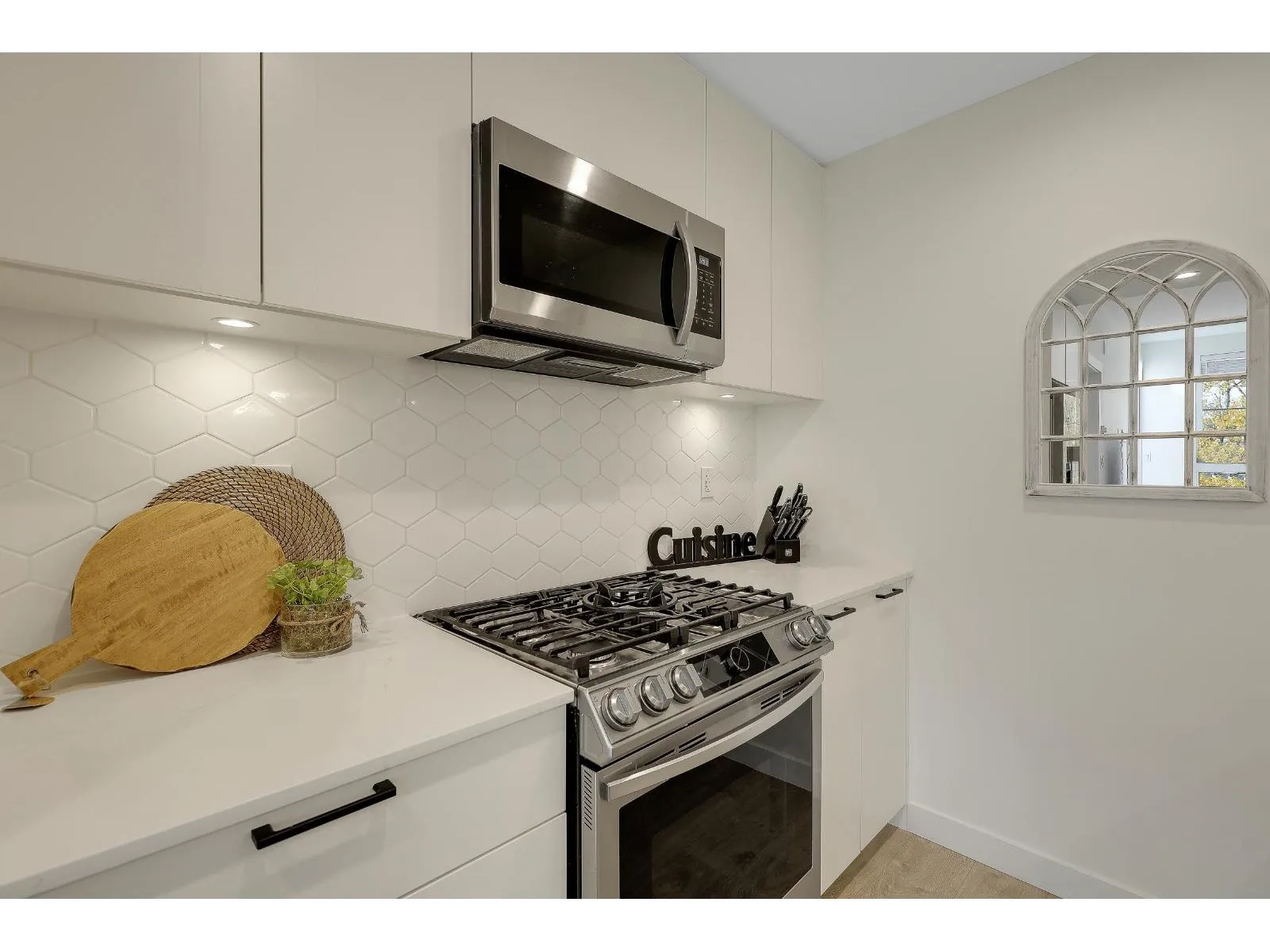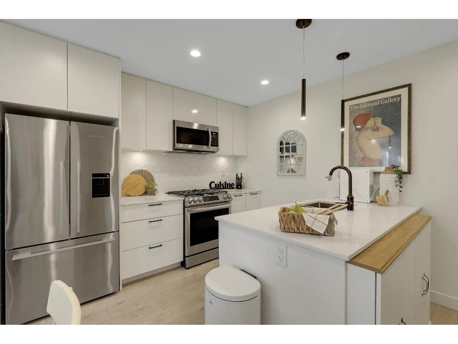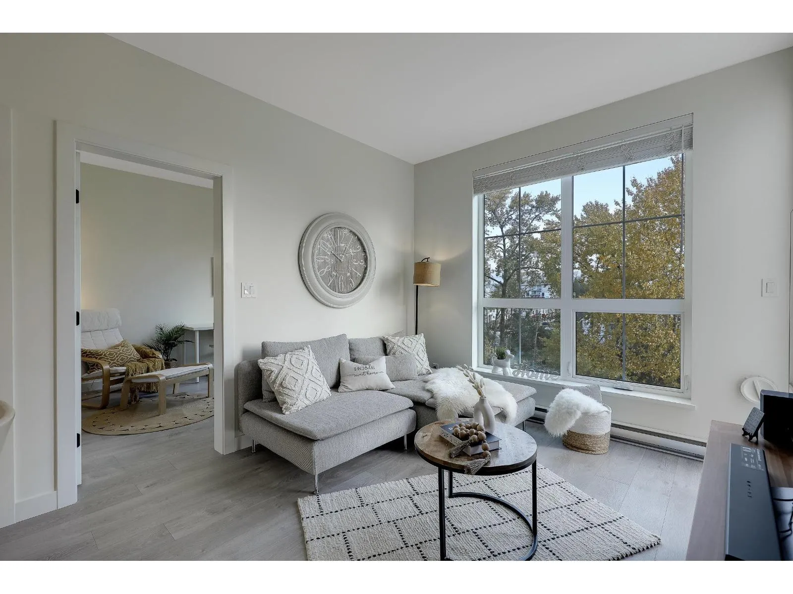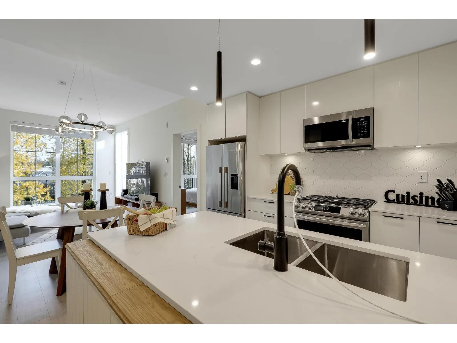 Latimer Village! TOP PENTHOUSE, 2 BED + 2 BATH, EAST facing - GREEN SPACE, QUIET-SIDE, features an open concept floor plan with extra higher ceilings, oversized windows that let in tons of natural light. A/C ready hook-up.Lots of UPGRADES; Fridge, Stove, LAMINATE FLOORING THROUGHOUT , 2 generous sized WALKIN closets. Most popular & practical unit in the complex. EV charger parking. A RESIDENTIAL - ONLY building (NO COMMERCIAL units). Blacksmith Bakery, plus more restaurants, salons, gym, and shopping are all only steps away. Easy access to Hwy 1. Short walk to Carvolth Bus Exchange. Be quick and book your showing today! (id:27476)