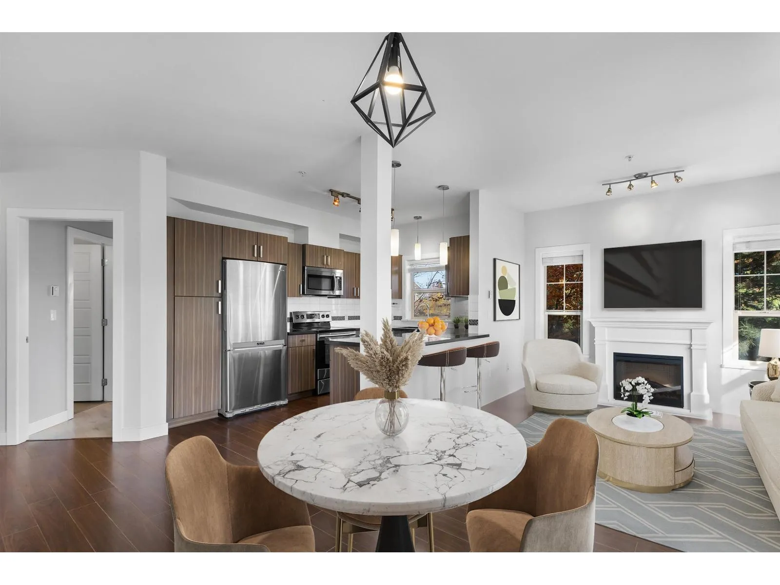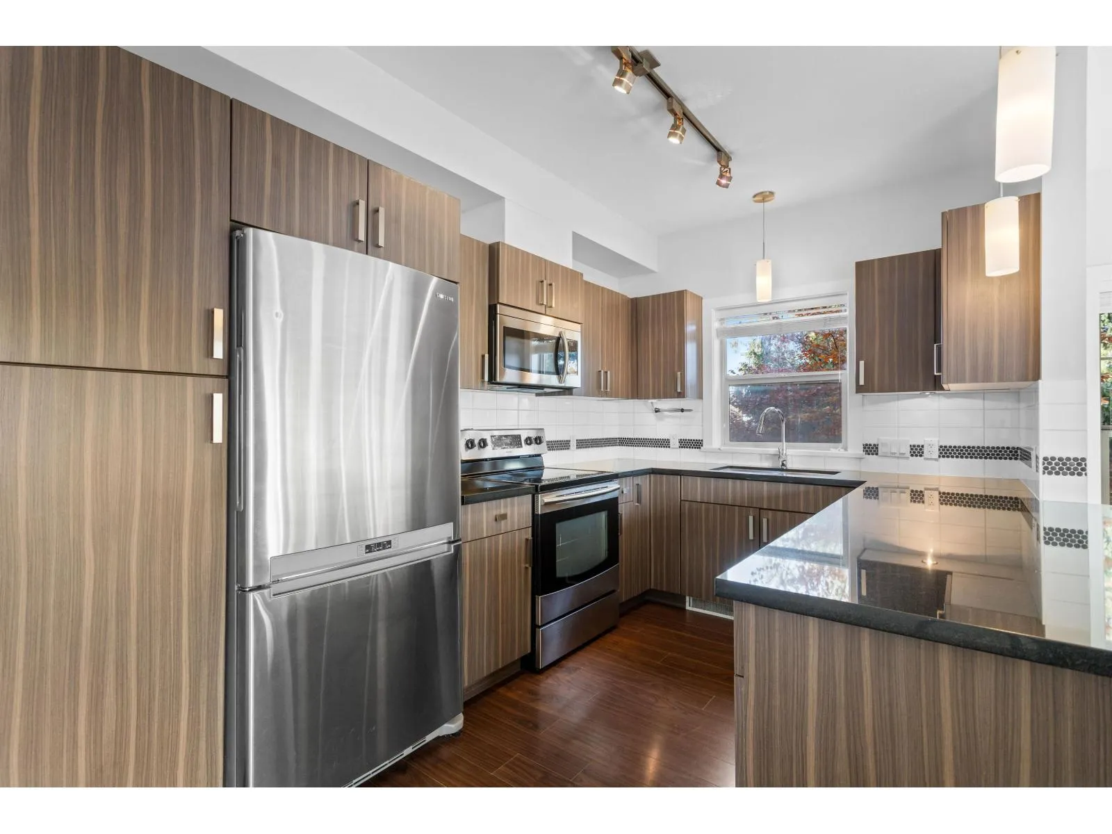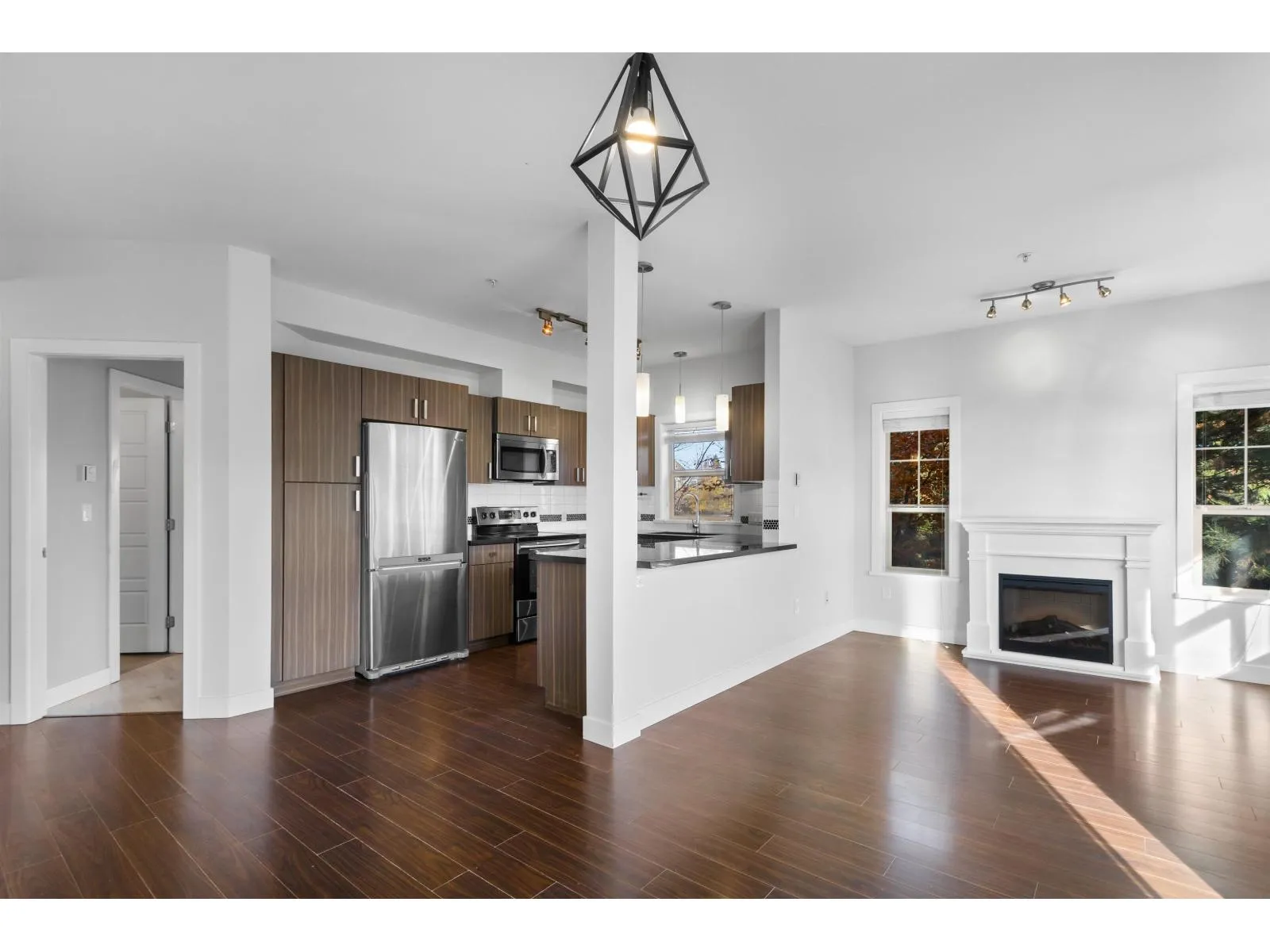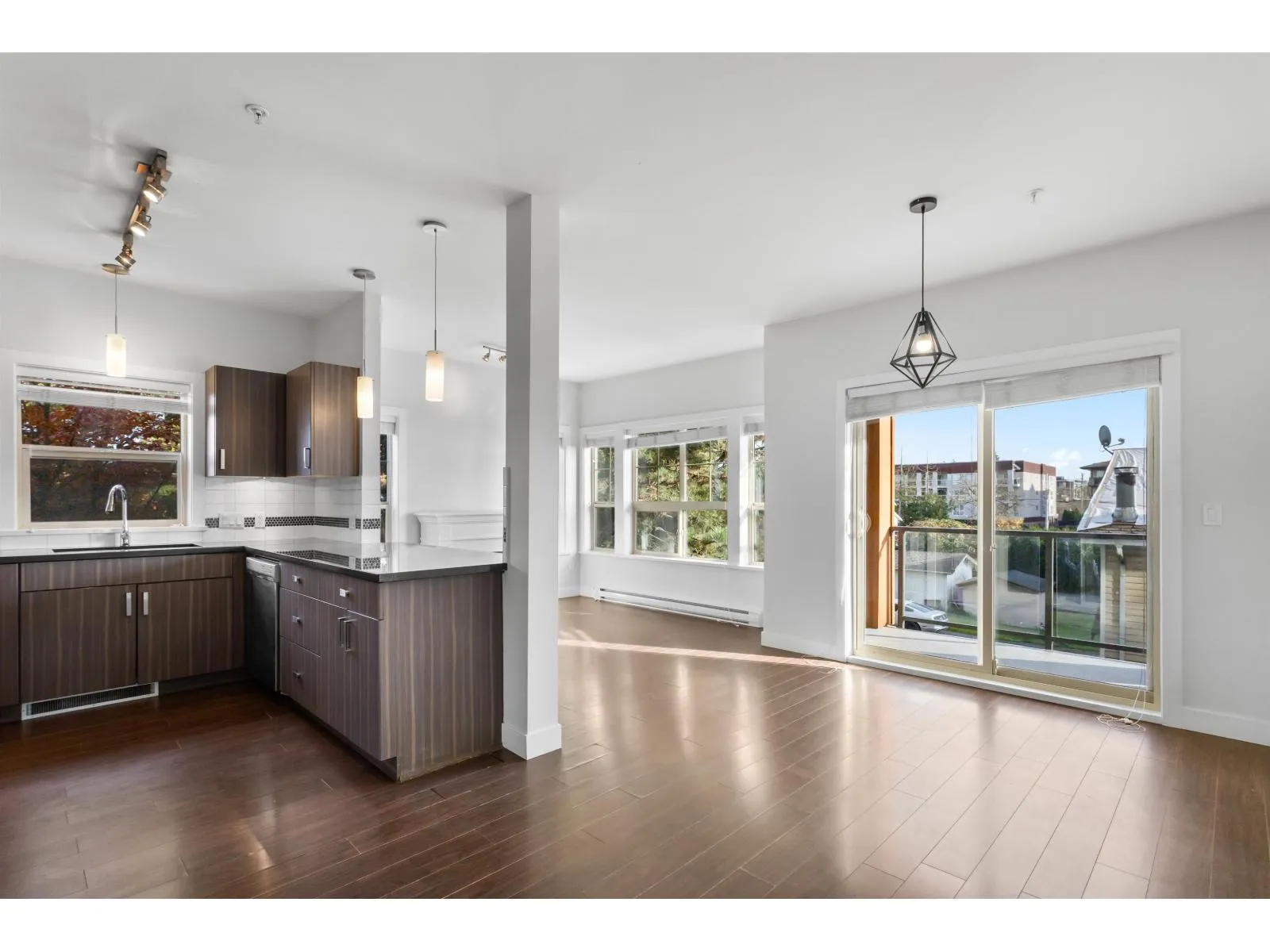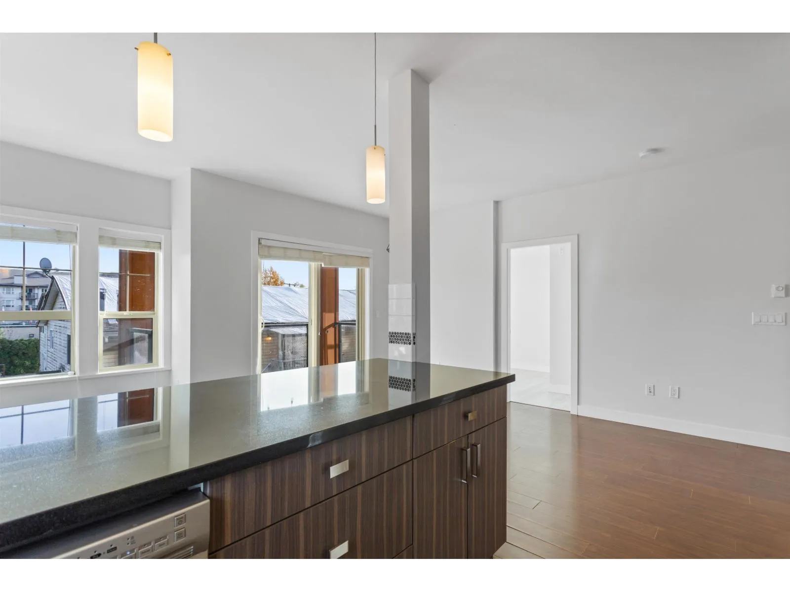 A rare 900+ sqft home with 2 parking stalls! This beautiful 2 bed, 2 bath corner unit offers 9' ceilings, a spacious ensuite, and a walk-in closet. Enjoy a richly designed kitchen featuring stainless steel appliances, granite countertops in both the kitchen and bathrooms, and exquisite finishings throughout. The private corner location fills the home with natural light and sits over the parkade-no one below! Nestled in a quiet yet central setting, this quality-built Redekop Kroeker residence includes storage, and both rentals and pets are allowed-a perfect opportunity for homeowners and investors alike! (id:27476)