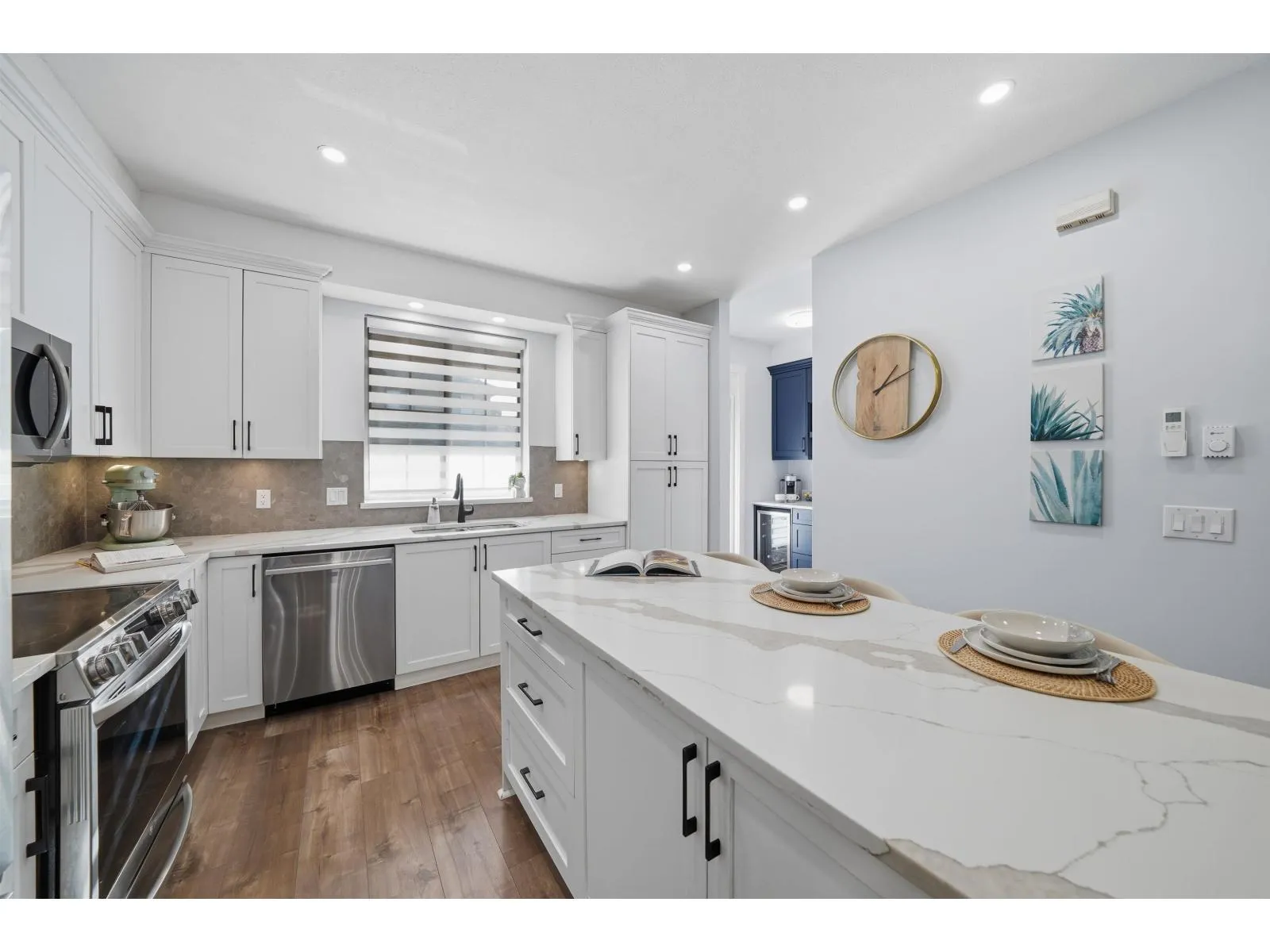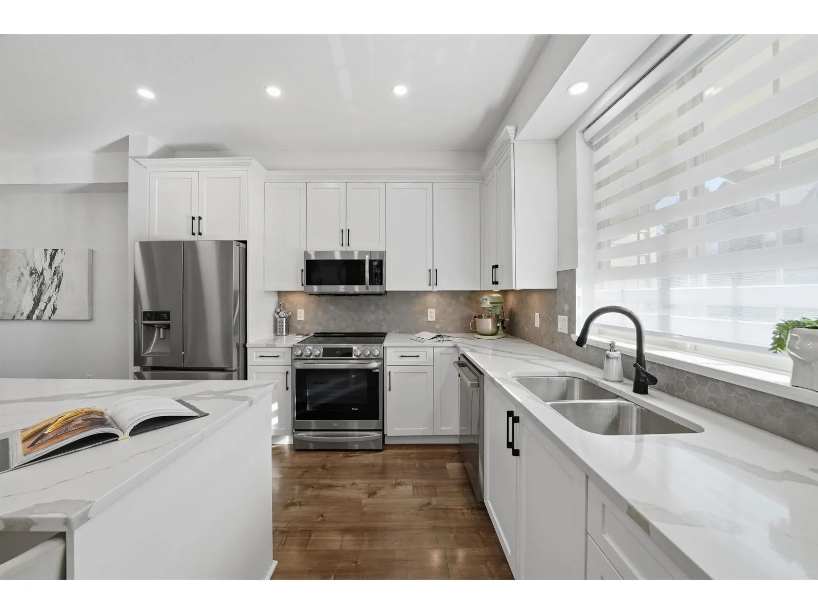 Exceptional Corner Home! Perfectly positioned in a quiet location within the complex. MOVE IN READY! offers unbeatable style, functionality, and location with a 4-bed, 3-bath spanning nearly 2,000sqft in one of Walnut Grove's premier communities! Thoughtfully customized throughout with 120k in renovations & upgrades, including Premium A/C+ Heat Pump, Kitchen+ Island, TOP OF THE LINE appliances, electrical+lighting, bathrooms, flooring, entire home professional paint, custom closets, premium blinds & MUCH MORE. Unique wet coffee+wine bar, elegant custom millwork, 2 large & private patios, fenced private yard with artificial turf. Lower level features a versatile bedroom/flex space and an office/room. Steps to elementary school, Fort Langley trails, shopping, and more. O/H Sat-Sun 2-4pm (id:27476)