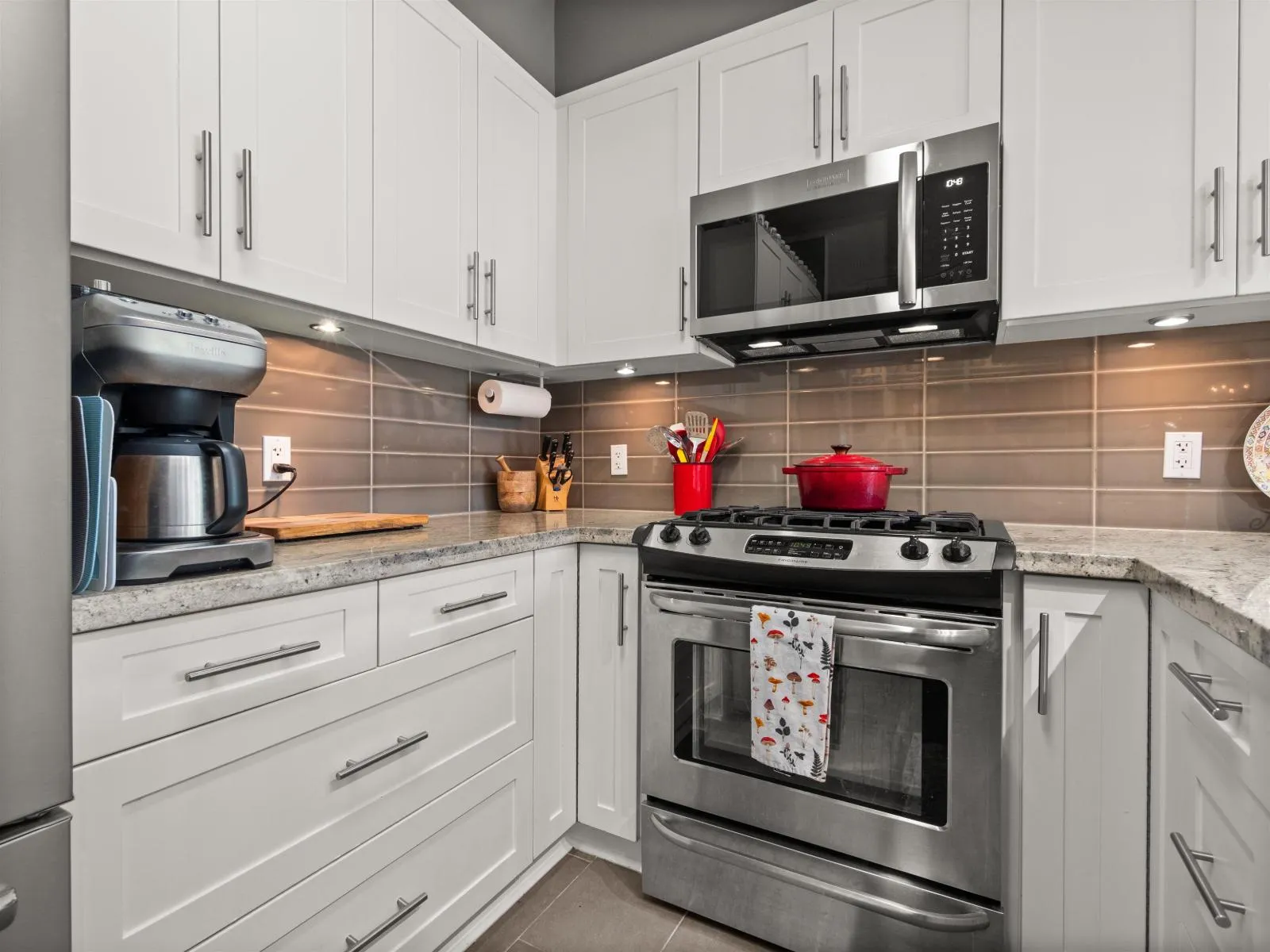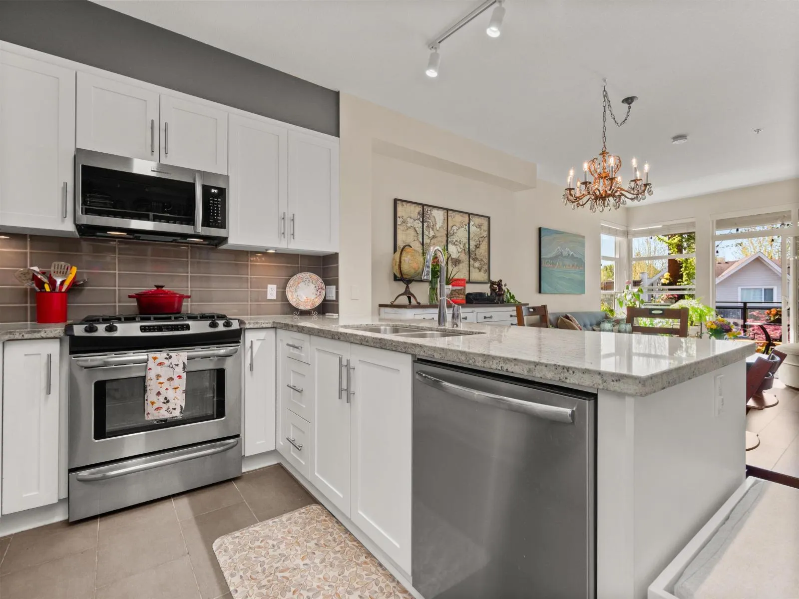LARGEST PLAN IN THE COMPLEX! 1095sqft! Welcome to 'The Village at Bedford Landing' in historic Fort Langley. This is your chance to live in a quaint but vibrant village community. Trails, rowing, cycling, golf, shopping, restaurants, arts and culture are right outside your front door. You are within walking distance of the elementary school and The Langley Fine Arts school. This unit is a RARE 2 Bedroom + DEN (which is currently being used as a 3rd bedroom) and 2 parking stalls. CUSTOM storage and shelving in DEN makes it the perfect home office, storage room or 3rd bdrm in a pinch. White shaker style cabinets, granite counters and s/s appliances incl GAS stove with NEW fridge, dishwasher and microwave! Updated flooring and carpets! (id:27476)