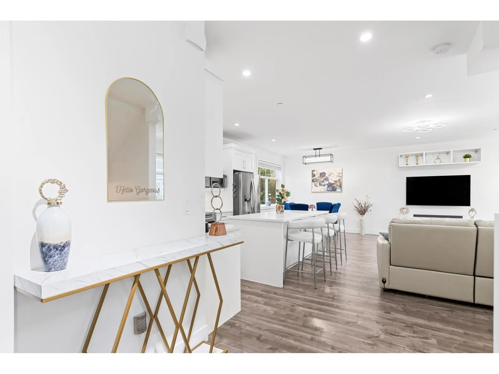 A DREAM COME TRUE. Celebrating a rare 2111ft CORNER home tucked aback THE ARGYLE, a family community of 22 modern luxury homes Highlights! SPACE: Enjoy the comforts of detached style living over 3 sprawling floors, generous in natural light. 3 beds+functional den/office above & bonus rec room on entry level (potential 4th bed). DESIGN: Modern living, new premium appliance kit, gorgeous lighting, dream baths, fresh paint! STORAGE: Expansive double WIDE garage w/epoxy floors, storage & gym+2 car driveway! BONUS: Rough in elevator shaft for wheelchair accessibility, room for whole family. LOCATION: Convenient+private - enjoy lush green forested backdrop from main floor & primary bed, while only steps to Willoughby Town Centre, schools, Yorkson Creek Park, community sports complex & Hwy1! WOW! (id:27476)