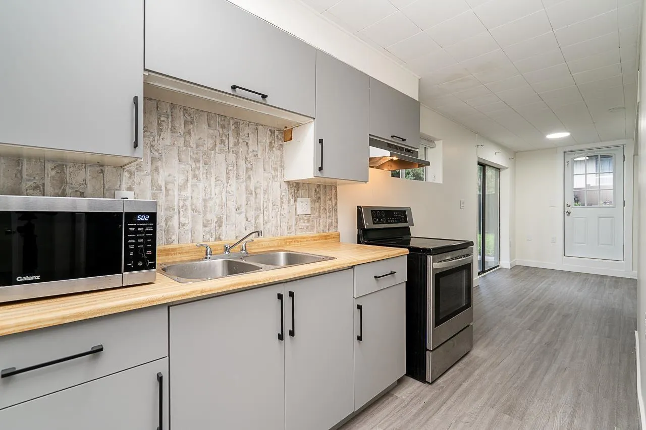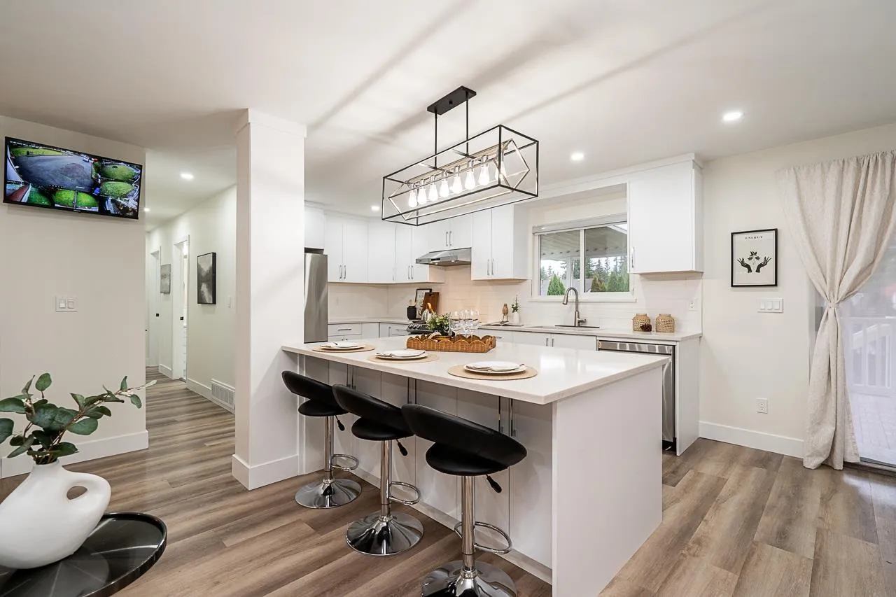 This beautifully updated 5-bedroom, 3-bathroom home sits on an expansive nearly 14,000 sq. ft. lot with an impressive 94 ft frontage. Both levels have been fully renovated, offering modern finishes and a fresh, contemporary feel. The upper level features a gourmet kitchen, an open-concept living area, and a massive deck-perfect for entertaining. The lower level offers a spacious 2-bedroom suite with a large rec room, providing excellent flexibility for extended family or rental income. Enjoy the huge backyard, new fencing, and two garages, making this property a fantastic investment or family home. Don't miss out-book your private showing today! (id:27476)