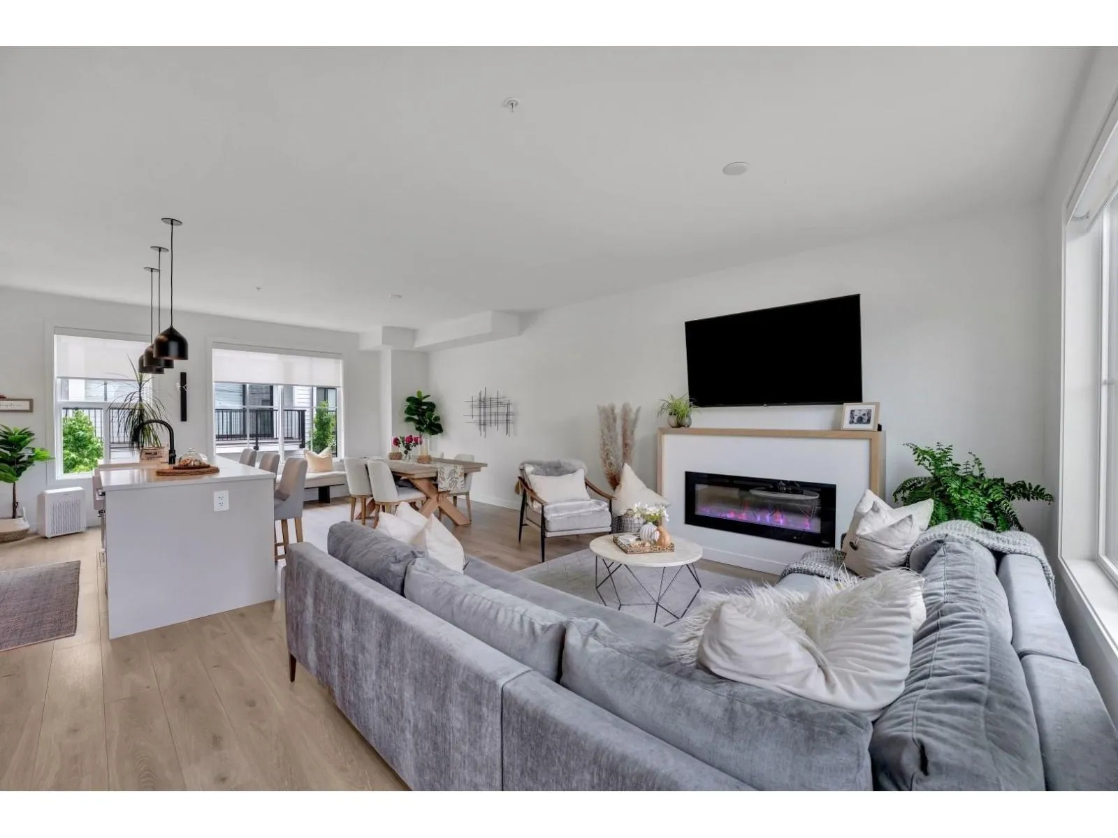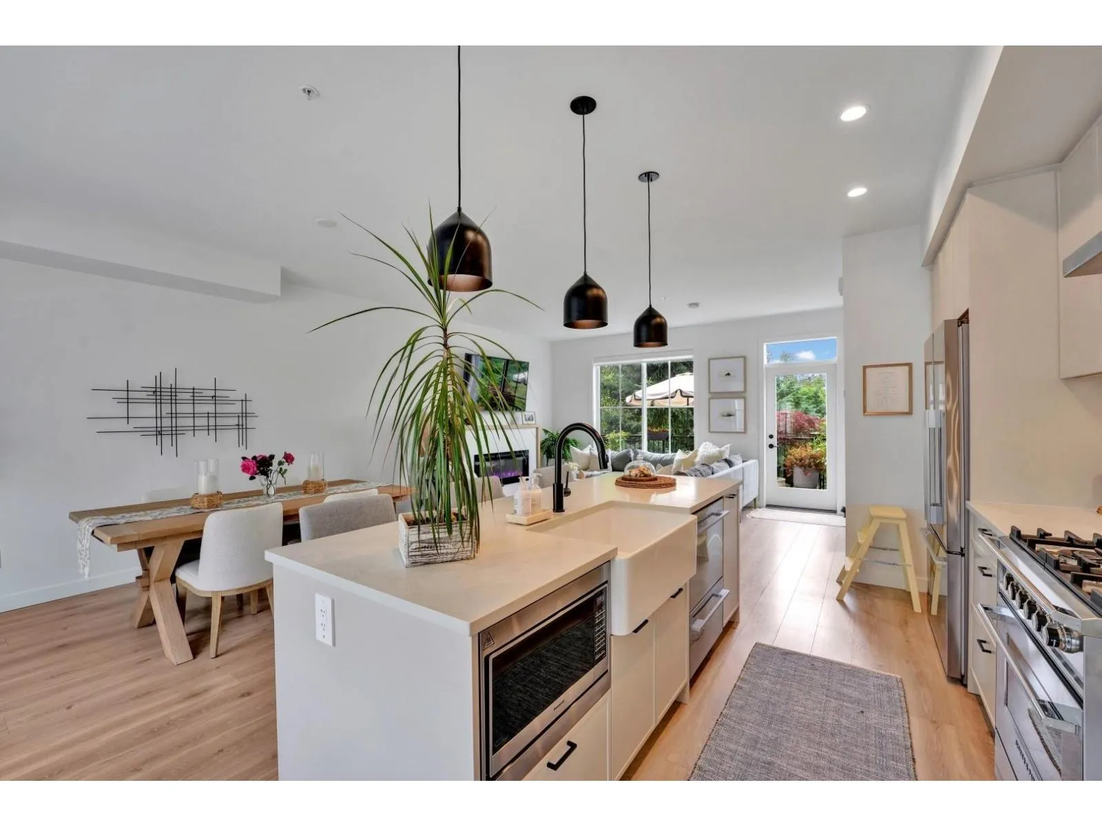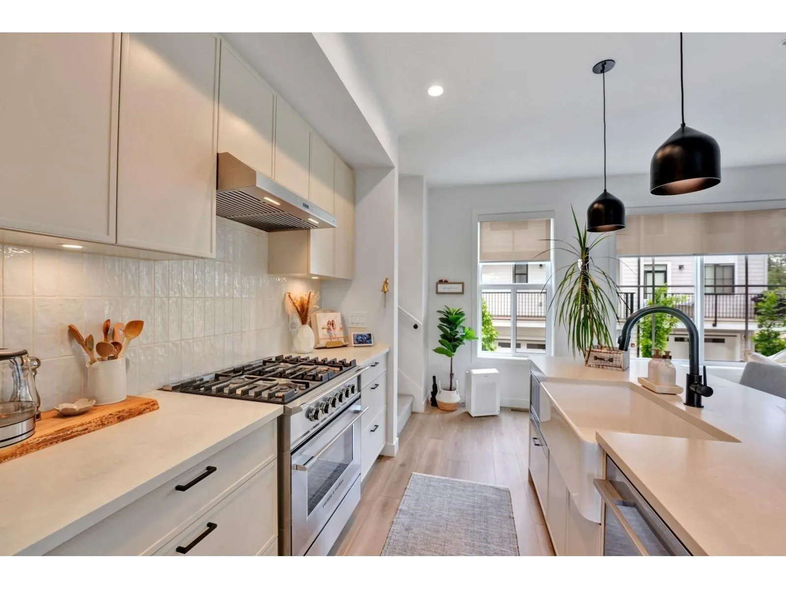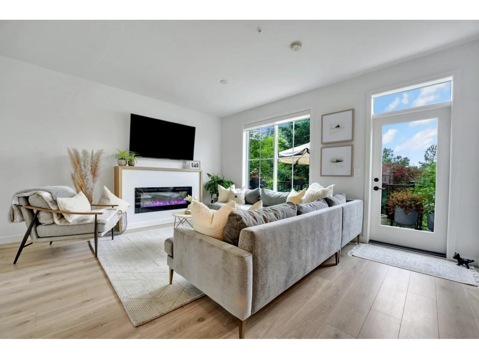 Embrace a nature-filled lifestyle where the comfort of townhome living meets the peace of a green oasis. This 3-bed, 3-bath townhouse offers a walk-to-school community, with RE Mountain Secondary just steps away. Enjoy premium features like Fisher & Paykel appliances, a dual-drawer dishwasher, and air conditioning. Relax by the beautiful solid maple fireplace or in the primary suite's spa-like ensuite, both offering tranquil views of the greenspace. Practicality is covered with an oversized, side-by-side garage featuring an epoxy floor and a ready-to-use EV charger. (id:27476)