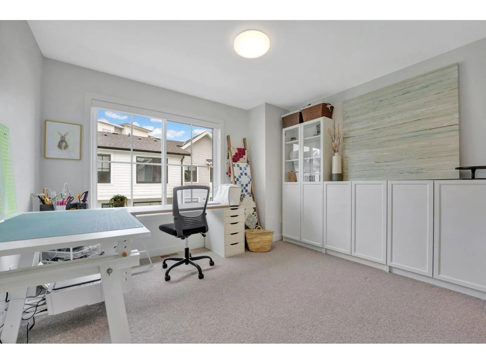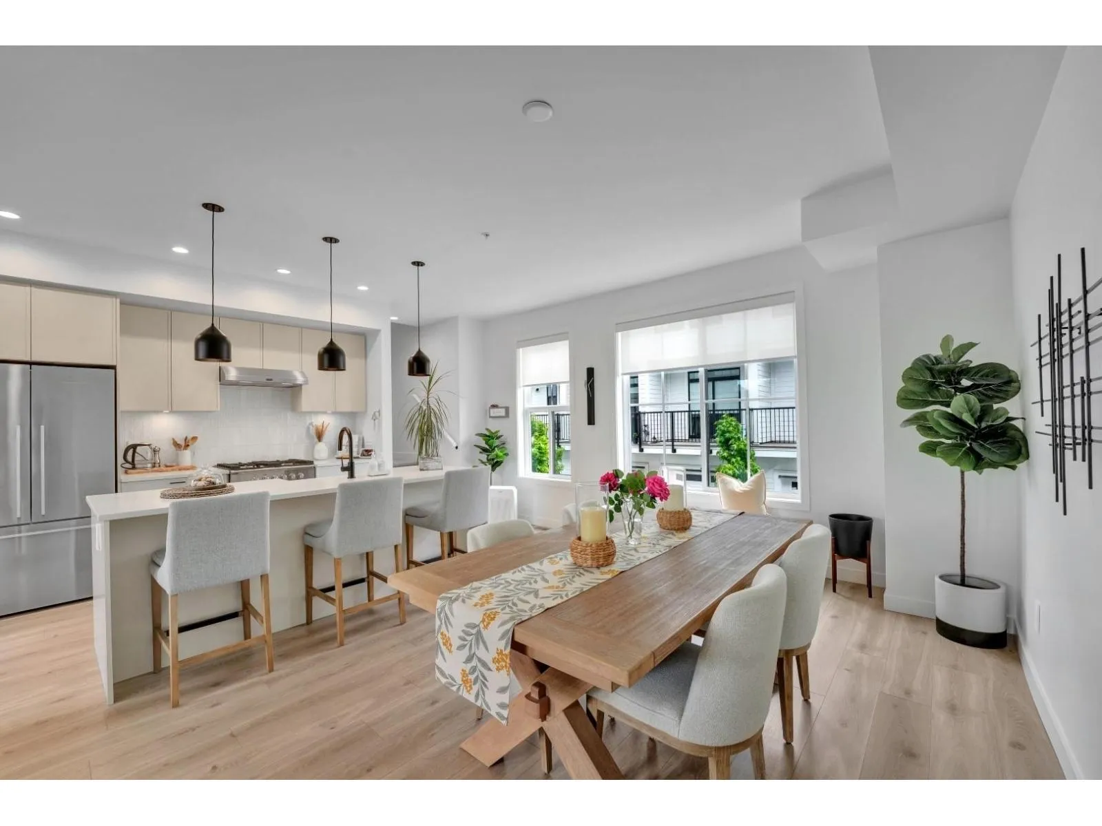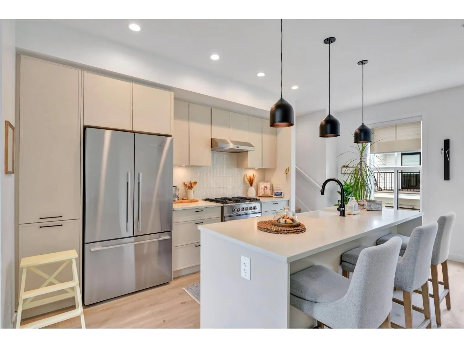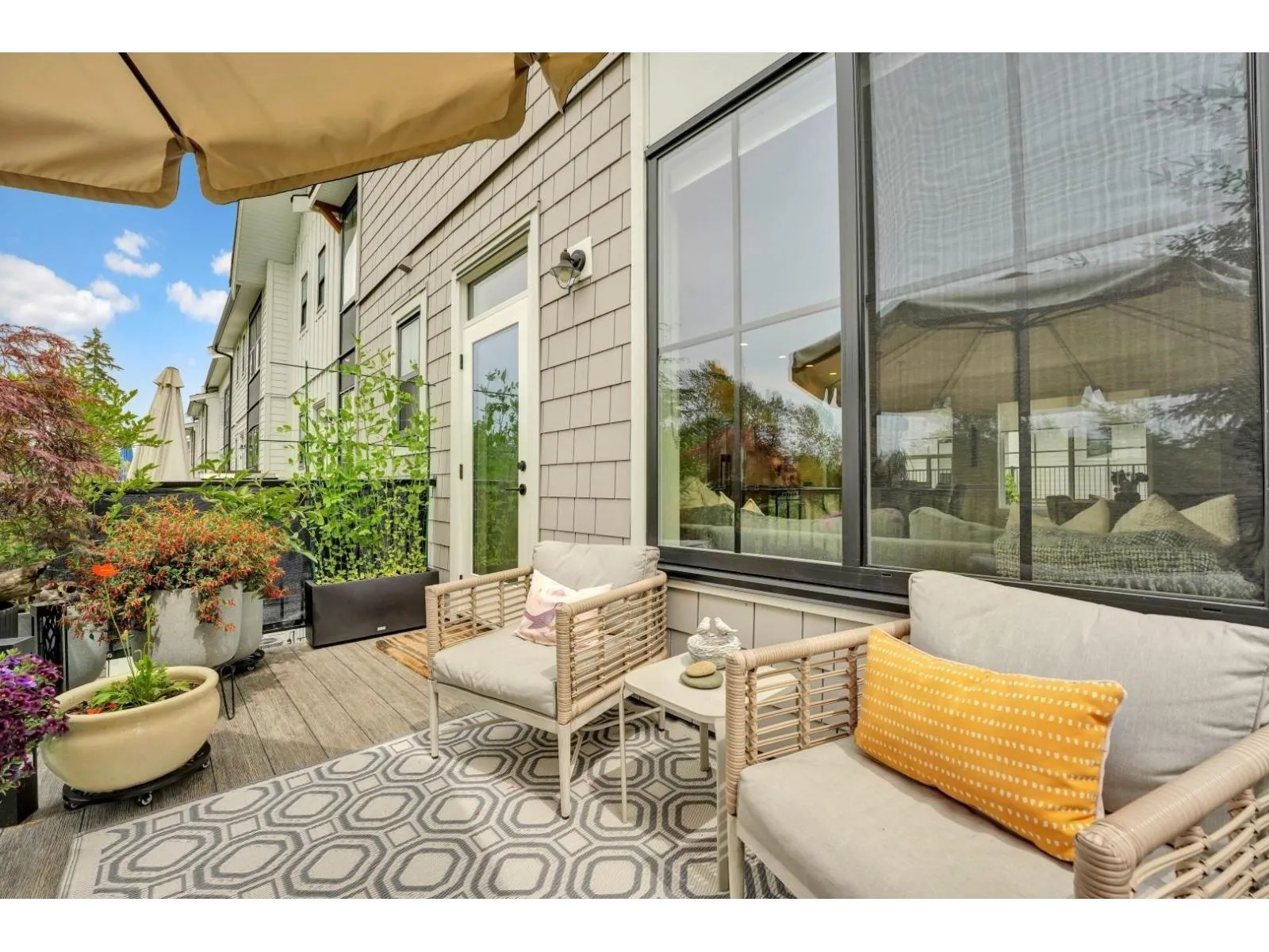 Embrace a nature-filled lifestyle where the comfort of townhome living meets the peace of a green oasis. This 3-bed, 3-bath townhouse offers a walk-to-school community, with RE Mountain Secondary just steps away. Enjoy premium features like Fisher & Paykel appliances, a dual-drawer dishwasher, and air conditioning. Relax by the beautiful solid maple fireplace or in the primary suite's spa-like ensuite, both offering tranquil views of the greenspace. Practicality is covered with an oversized, side-by-side garage featuring an epoxy floor and a ready-to-use EV charger. (id:27476)
