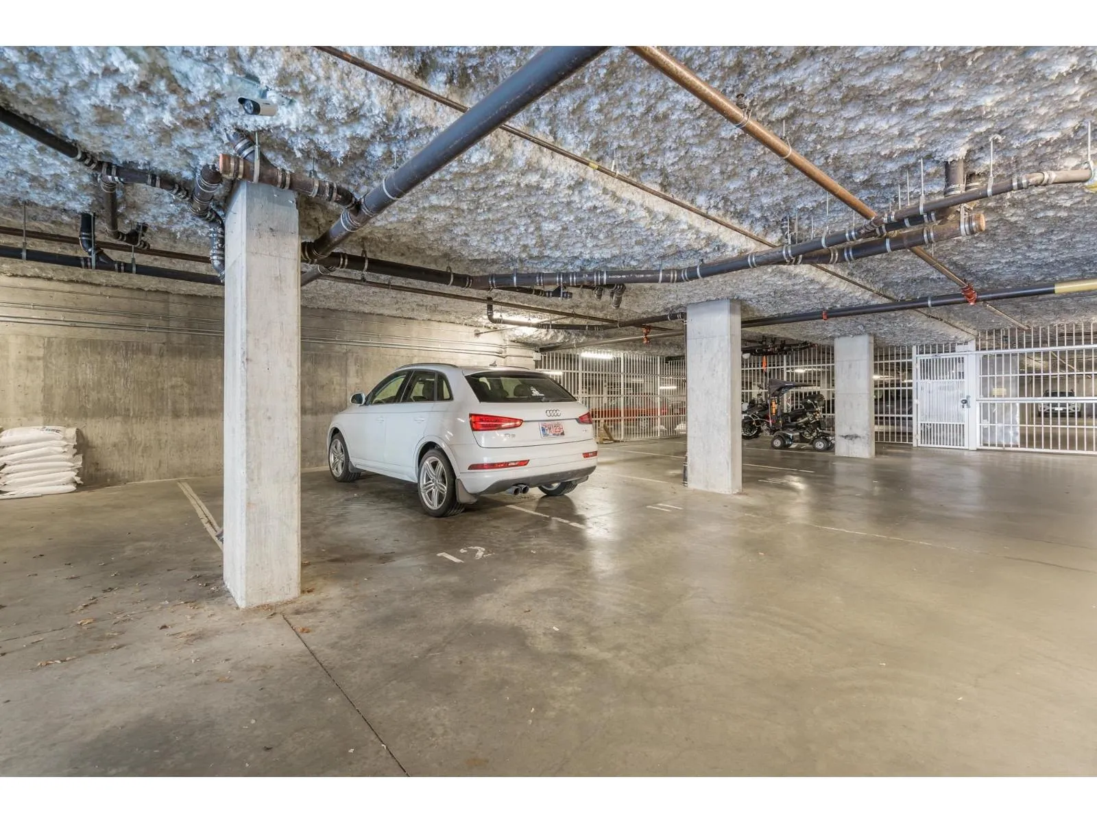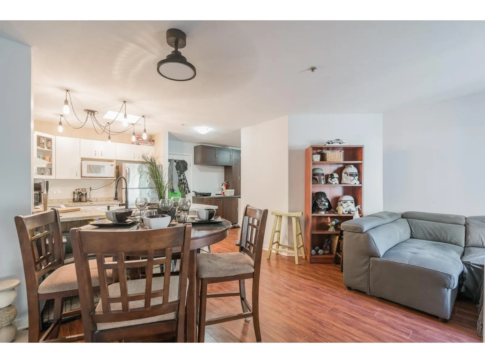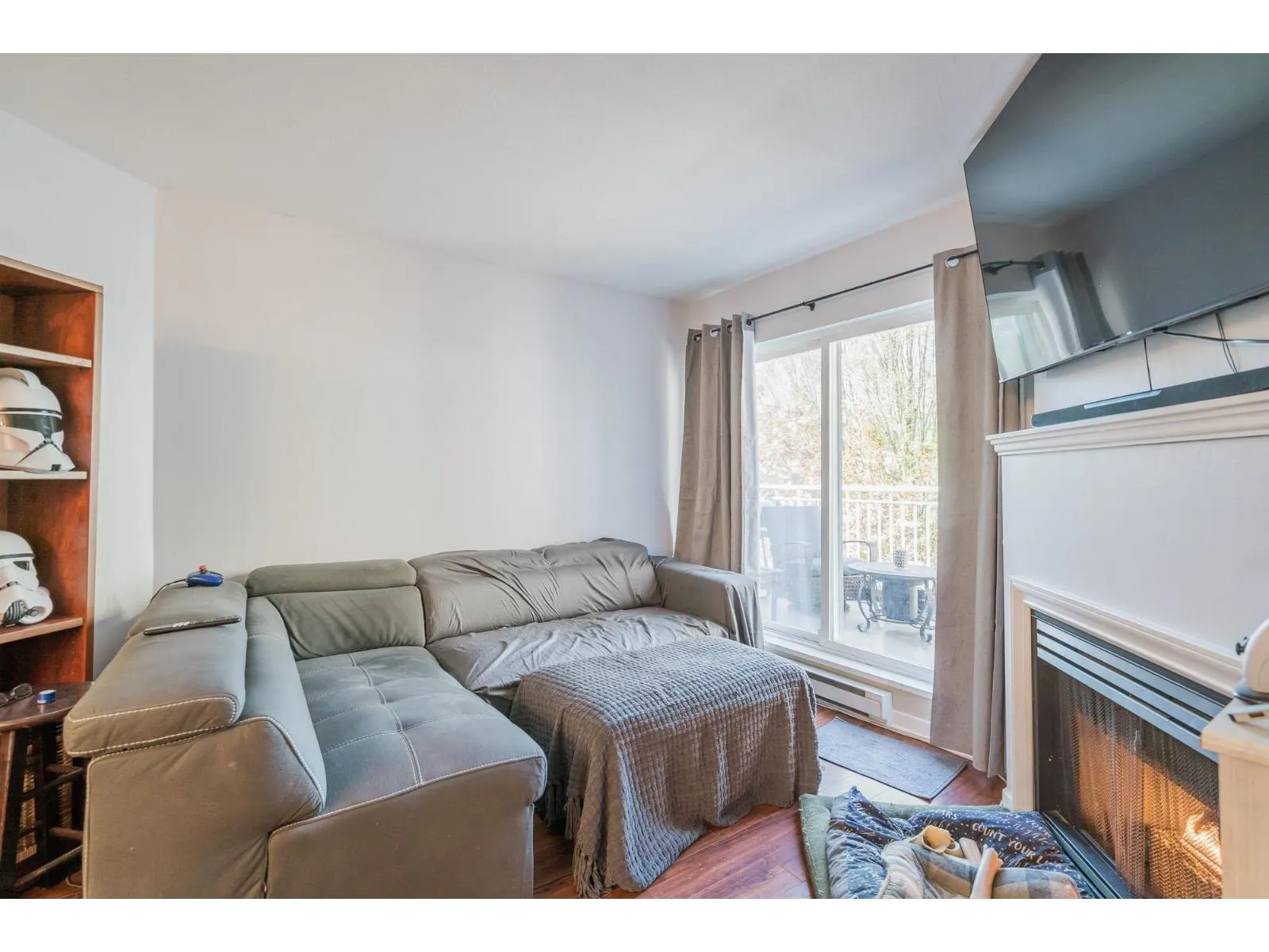 Penthouse beauty! Almost 700sf 1 bdrm 1 bthrm PLUS den style north facing home. 2 skylights. Great room concept with your kitchen overlooking your dng and lvg rm. Kitchen has a breakfast bar, lots of cabinets and granite countertops. Livingroom has a gas f/p and access to your private deck. Primary bedroom has a wi closet + another closet, cheater ensuite w/has an oversized shower w/tile surround & granite c/tops. The den has sliders to your balcony. Laundry area is huge and open w/cabinets & counterspace. Bright home on the quiet side of the building. 2 parking spots, 1 storage locker. Close to transit, shopping, restaurants, Willowbrook and more. OPEN HOUSE SAT NOV 15 2-4PM. (id:27476)