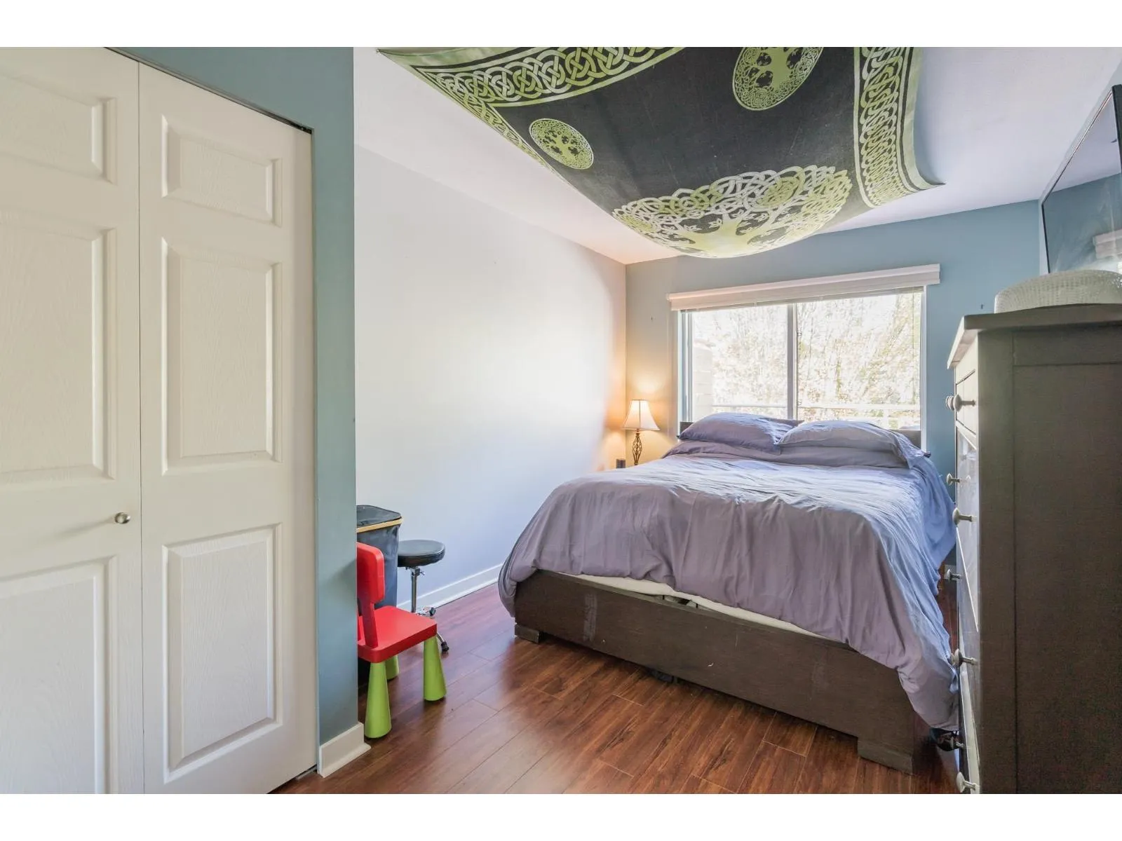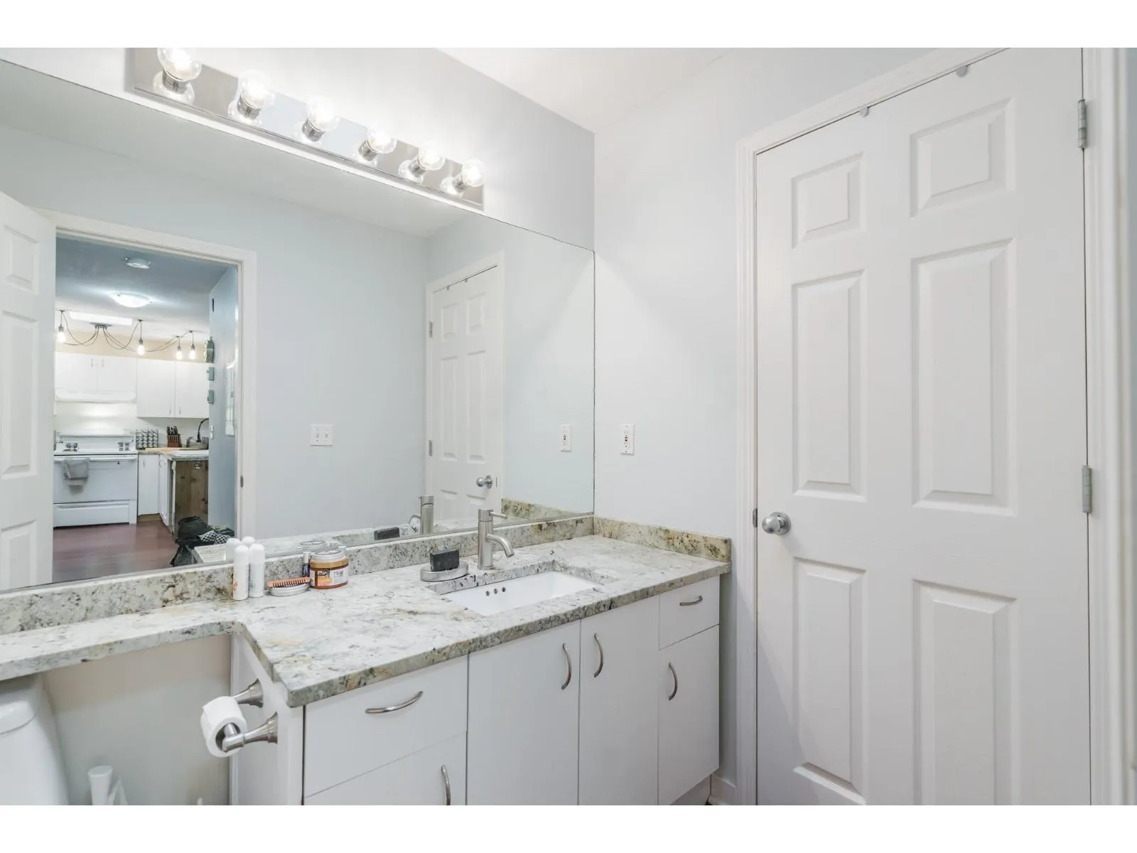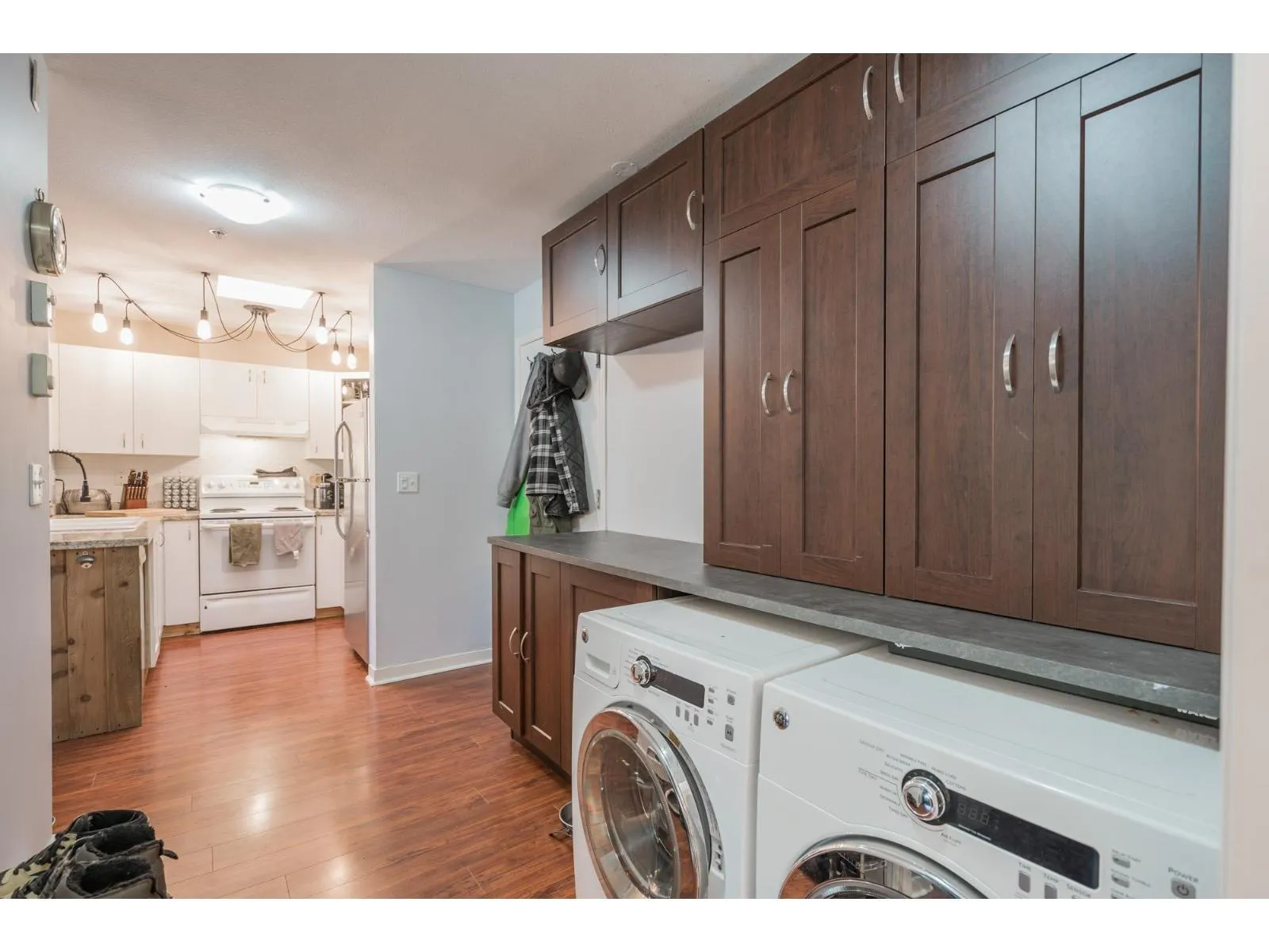 Penthouse beauty! Almost 700sf 1 bdrm 1 bthrm PLUS den style north facing home. 2 skylights. Great room concept with your kitchen overlooking your dng and lvg rm. Kitchen has a breakfast bar, lots of cabinets and granite countertops. Livingroom has a gas f/p and access to your private deck. Primary bedroom has a wi closet + another closet, cheater ensuite w/has an oversized shower w/tile surround & granite c/tops. The den has sliders to your balcony. Laundry area is huge and open w/cabinets & counterspace. Bright home on the quiet side of the building. 2 parking spots, 1 storage locker. Close to transit, shopping, restaurants, Willowbrook and more. OPEN HOUSE SAT NOV 15 2-4PM. (id:27476)