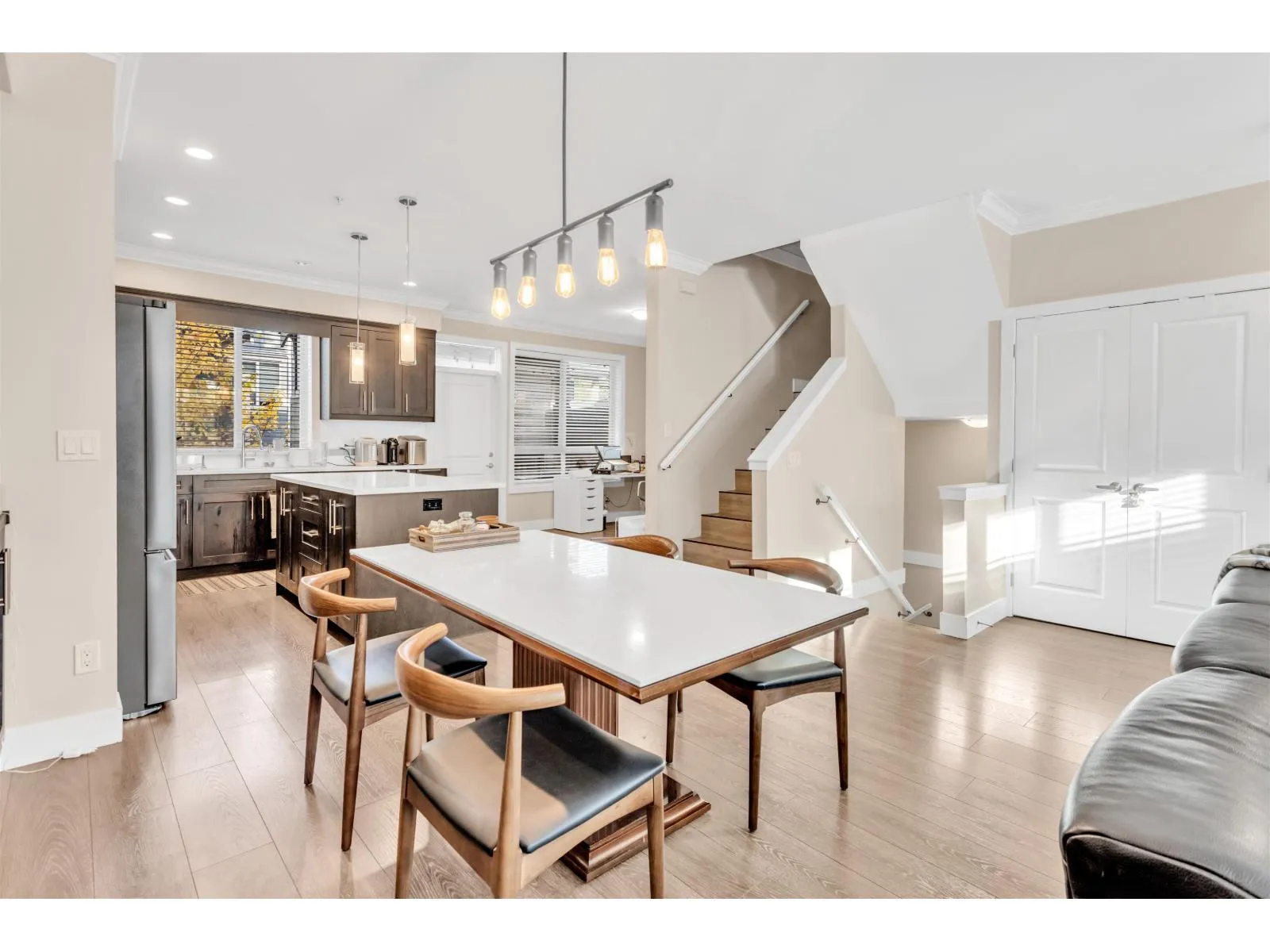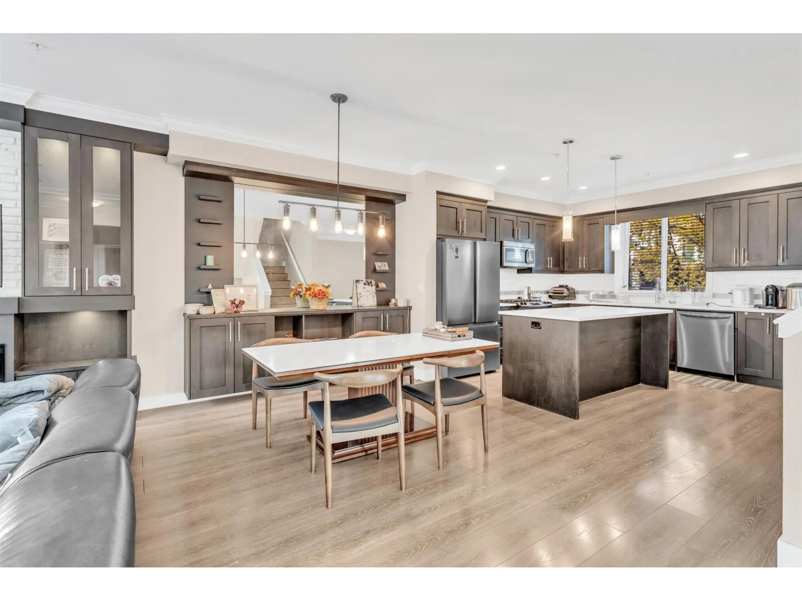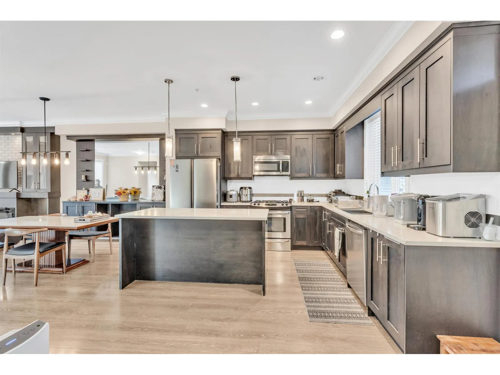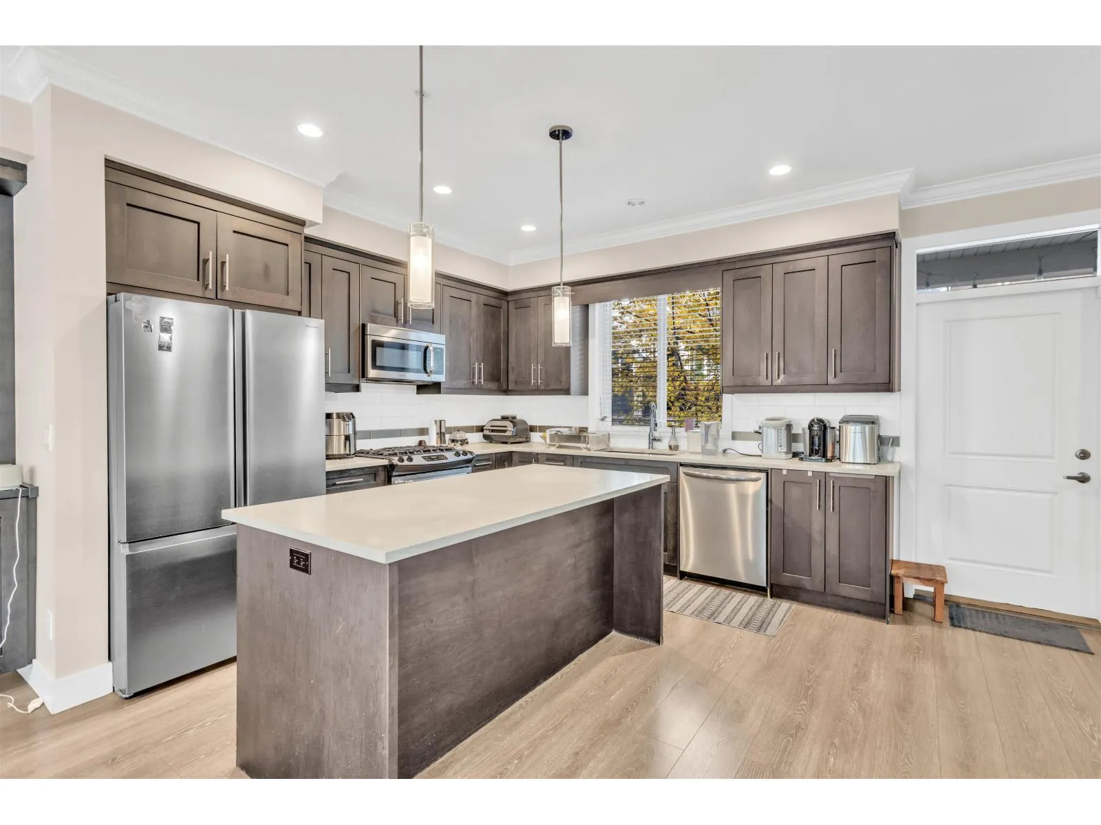 Welcome to *The Brooks* by Apex Custom Homes-nearly 2,000 sq. ft. of luxury living beside Routley Park! This spacious townhome features 3 beds, 4 bath, and a large rec room easily converted into a 4th bedroom with full bath. Enjoy radiant in-floor heating, on-demand hot water, Low-E windows, and wide-plank laminate floors. The chef-inspired kitchen boasts quartz counters, stainless steel appliances, gas range, extensive cabinetry, large island, and a feature wall with built-ins and wine rack. Elegant finishes include crown moulding, California-style closets, designer blinds, and glass-enclosed showers. Entertain on your covered patios with a gas BBQ hookup, and appreciate side-by-side garage parking. Meticulous this home blends comfort, efficiency and style in one exceptional package ! (id:27476)