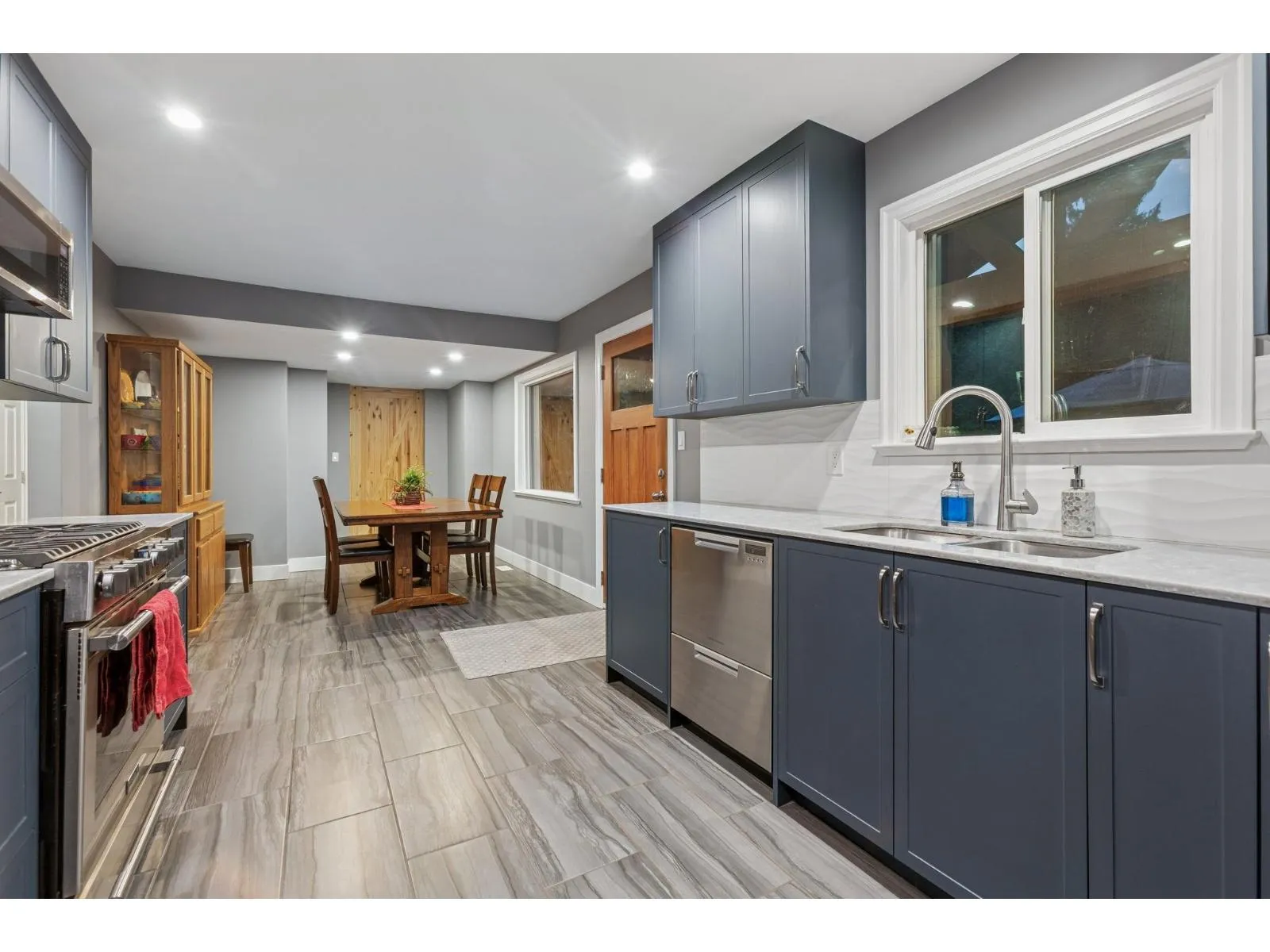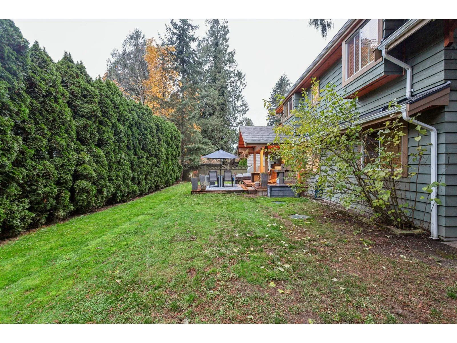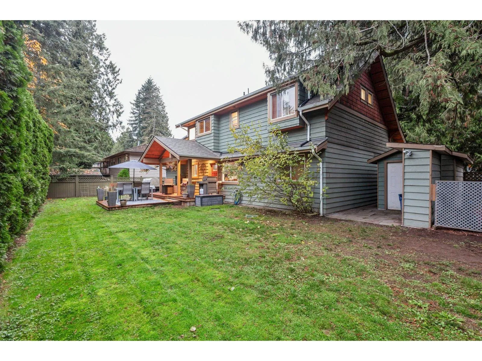 Beautifully updated Craftsman home on a prime Brookswood corner lot. Enjoy a welcoming front veranda, refinished hardwood floors, crown moldings, a spacious living room with a cozy wood-burning fireplace, and a stunning 2024-renovated kitchen featuring natural wood cabinetry, quartz counters, dual-drawer dishwasher, and new gas stove. The kitchen flows into the family room and out to a private, sunny south-facing yard with a large covered deck-perfect for year-round entertaining. The main floor includes a generous bedroom, while upstairs offers a Whistler-inspired retreat with high peaked ceilings, dormer windows, hardwood floors, barn doors, and four well-appointed bedrooms including a stylish primary suite with a modern 4-pc ensuite. Major upgrades include roof, furnace, tankless hot water, gas fireplace insert, and new asphalt driveway. A fantastic family-friendly area close to parks, trails, and schools. (id:27476)