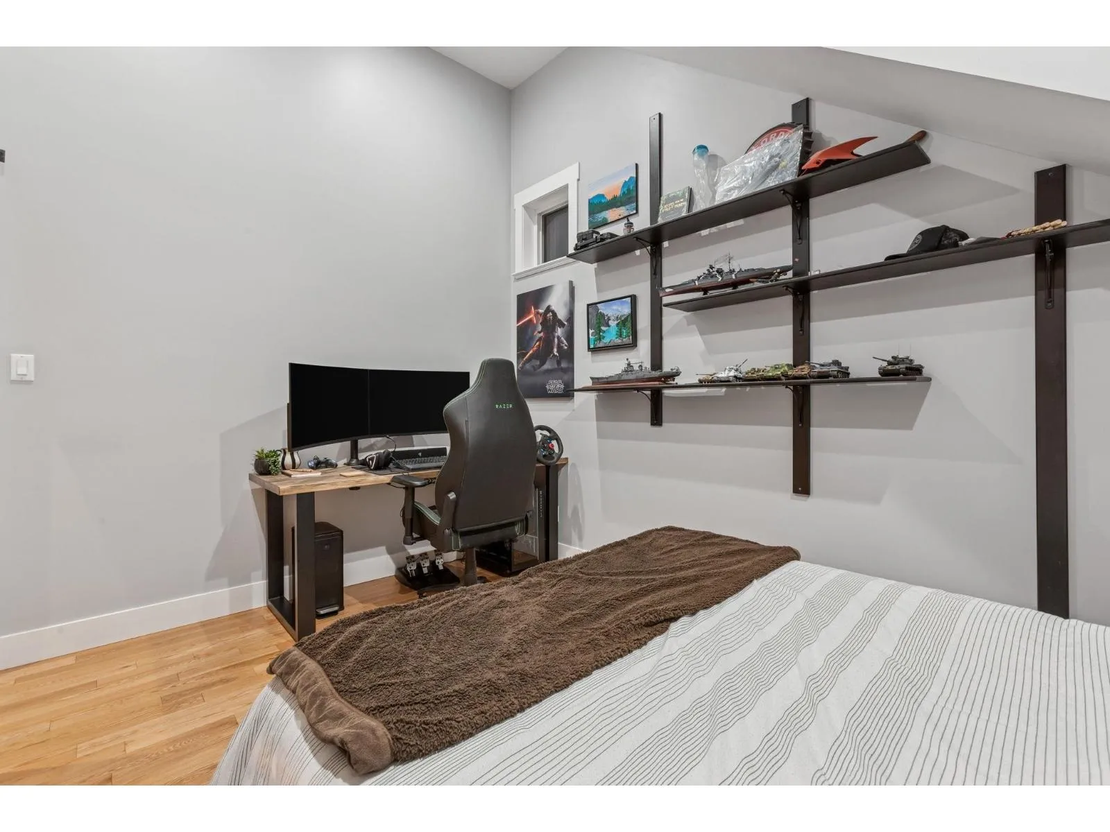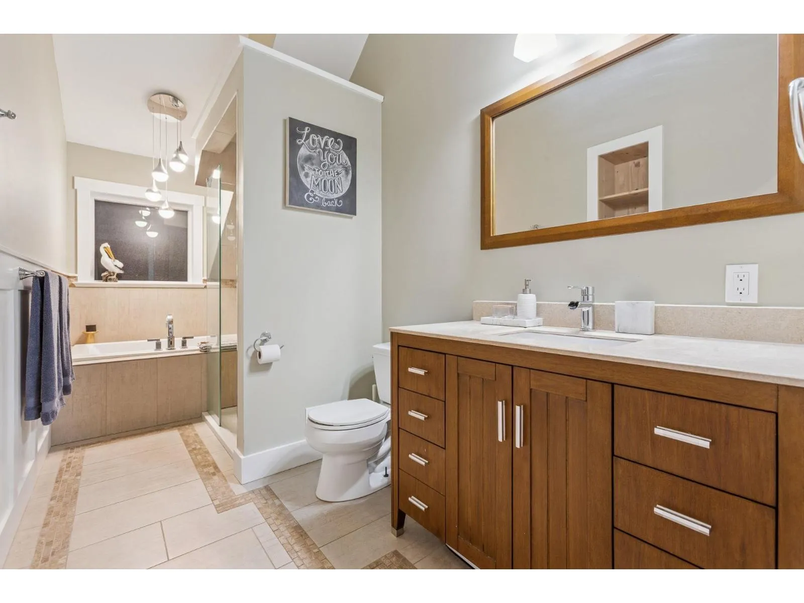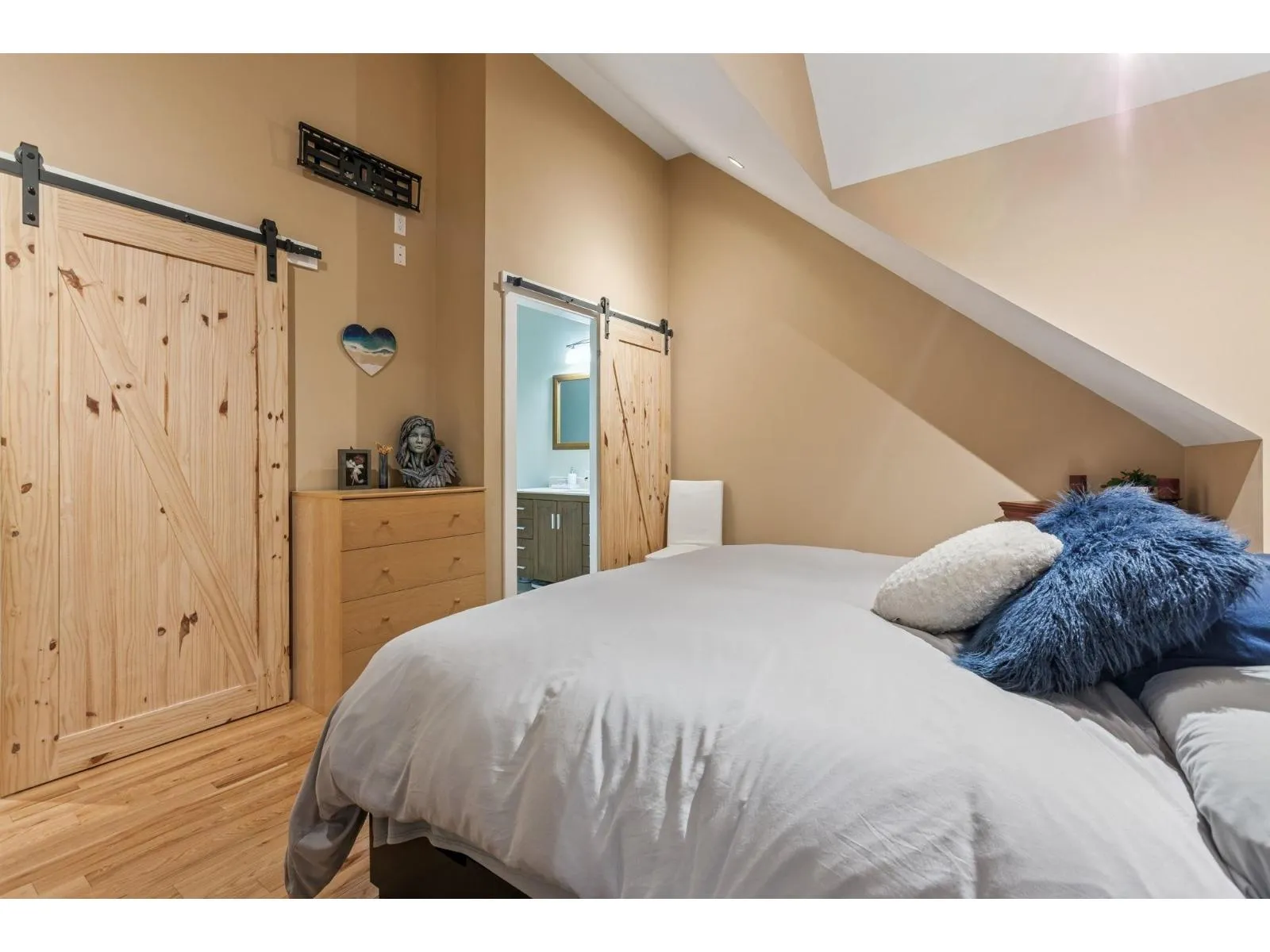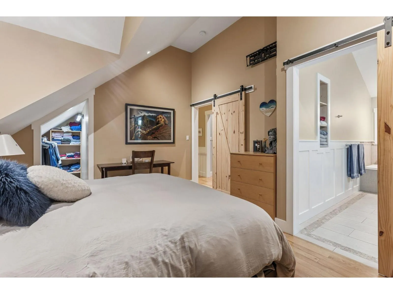 Beautifully updated Craftsman home on a prime Brookswood corner lot. Enjoy a welcoming front veranda, refinished hardwood floors, crown moldings, a spacious living room with a cozy wood-burning fireplace, and a stunning 2024-renovated kitchen featuring natural wood cabinetry, quartz counters, dual-drawer dishwasher, and new gas stove. The kitchen flows into the family room and out to a private, sunny south-facing yard with a large covered deck-perfect for year-round entertaining. The main floor includes a generous bedroom, while upstairs offers a Whistler-inspired retreat with high peaked ceilings, dormer windows, hardwood floors, barn doors, and four well-appointed bedrooms including a stylish primary suite with a modern 4-pc ensuite. Major upgrades include roof, furnace, tankless hot water, gas fireplace insert, and new asphalt driveway. A fantastic family-friendly area close to parks, trails, and schools. (id:27476)