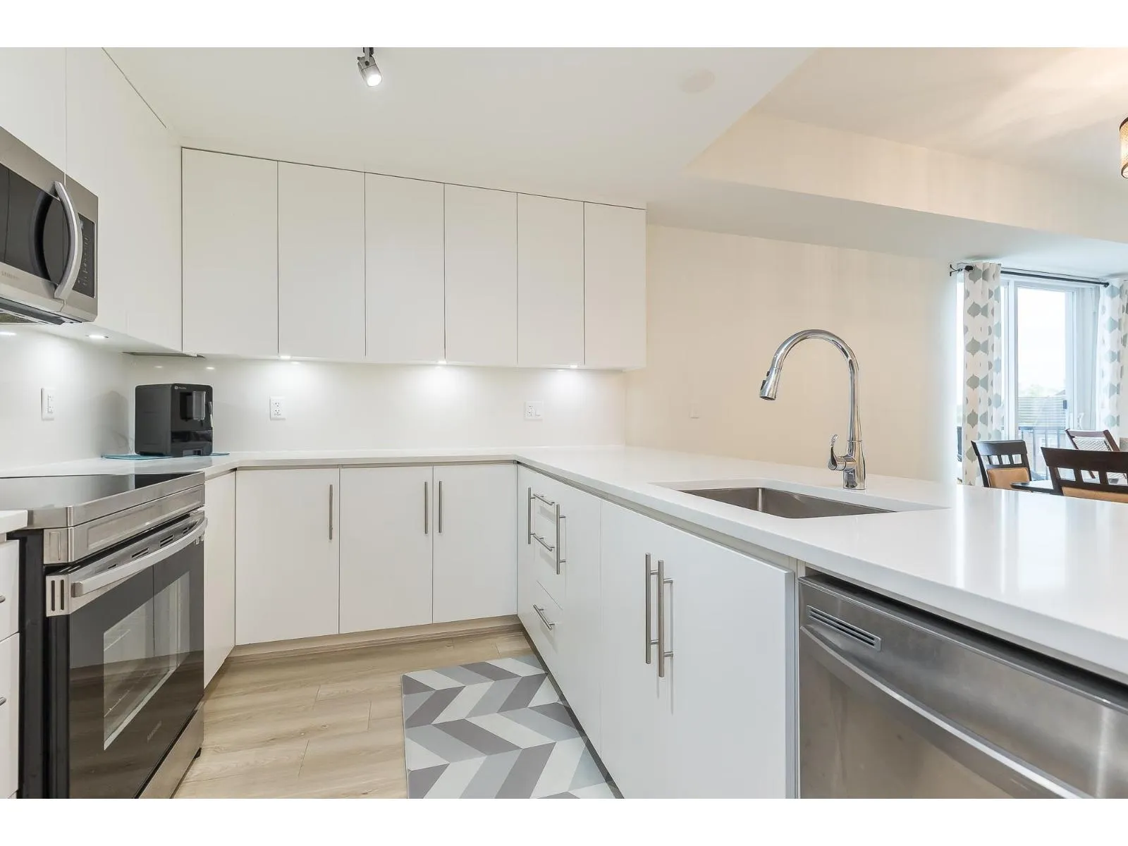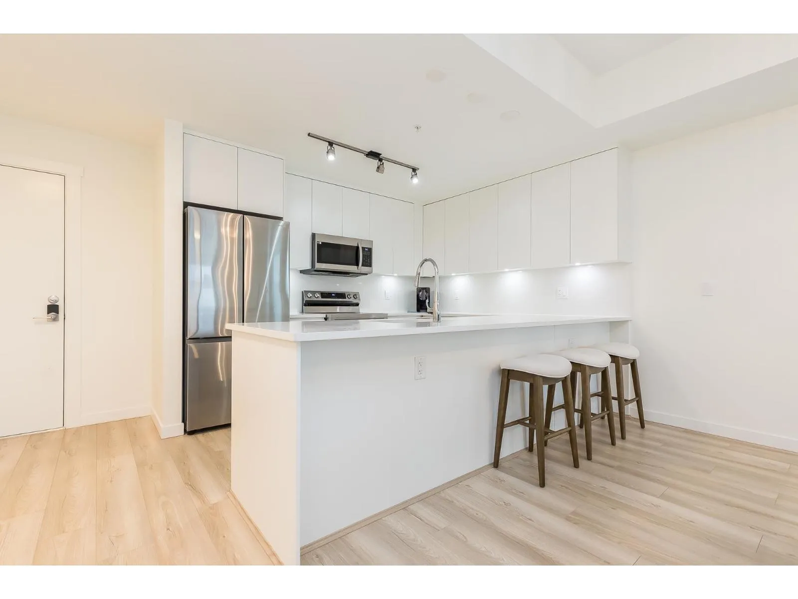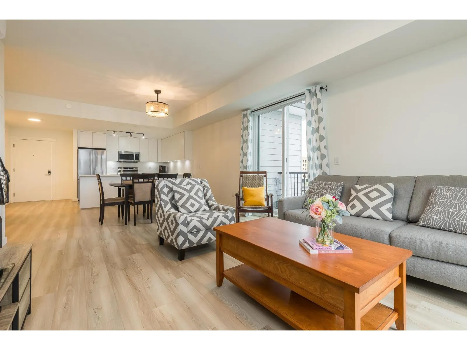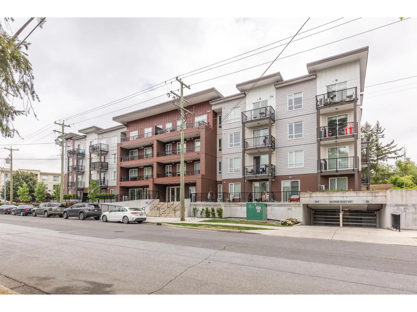 Penthouse corner unit at Nicomekl Garden! This 2 bed + den, 2 bath home offers mountain views, 3 patios, and a bright open layout with 9' ceilings. Enjoy stainless steel appliances, A/C, tons of counter space, and in-suite laundry. Only 40 units in this 4-storey boutique building. Pets allowed w/restrictions. Amenities include gym, playground, 1 locker, and 2 covered parking. Walk to parks, shops, leisure center, and the future SkyTrain. Fantastic walkability in the heart of Langley! (id:27476)