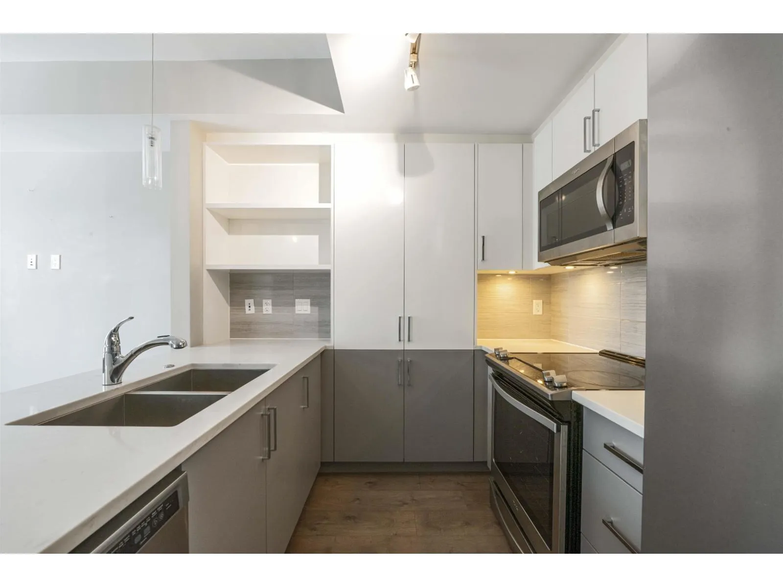 Welcome to Elements in the heart of Willoughby! This 1 bed, 1 bath condo on the first floor offers a bright, open layout with 9-ft ceilings, large windows, and a modern kitchen with quartz counters and stainless steel appliances. Enjoy in-suite laundry, a private balcony, and 1 parking stall (#347) plus a storage locker (#C-7). Steps to shops, transit, and schools with access to a top-tier clubhouse. (id:27476)