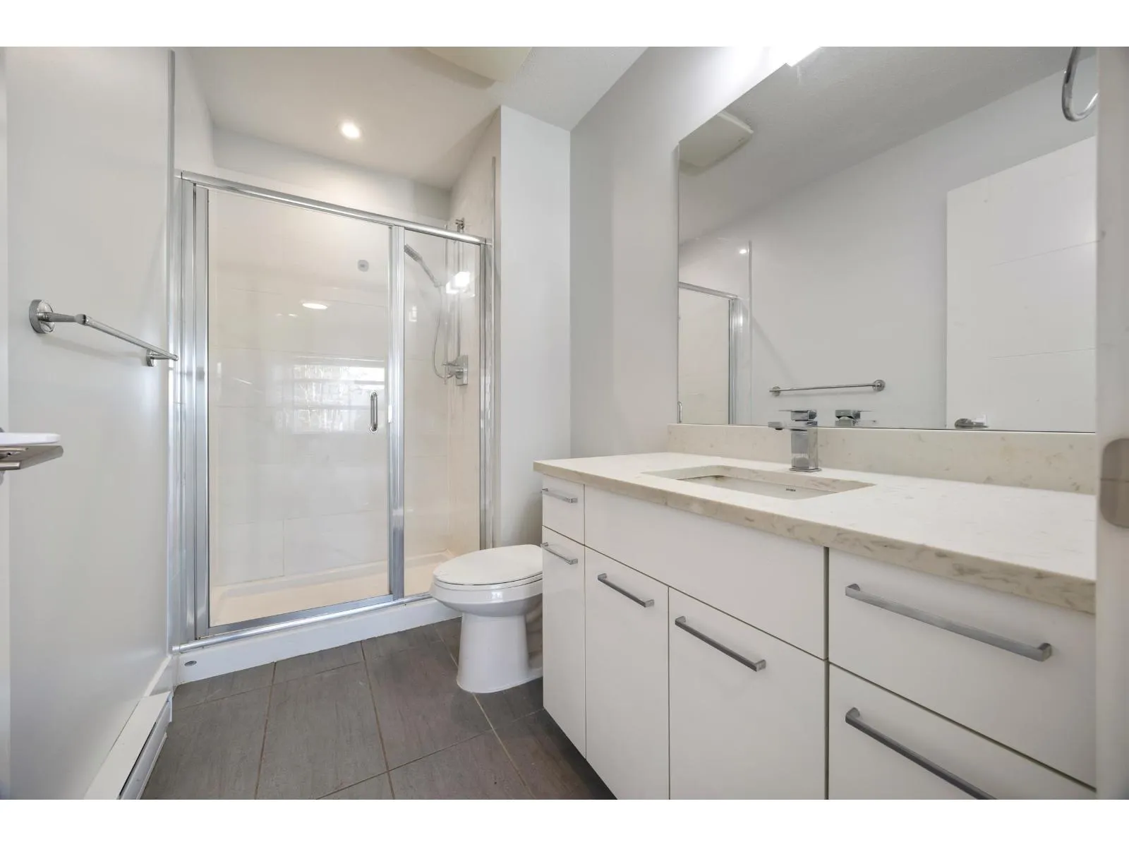 Welcome to The Wesley at Brydon Creek! This stunning 2-bedroom, 2-bathroom home features a bright, open-concept layout with bedrooms thoughtfully positioned on opposite sides for maximum privacy. Enjoy high-end finishes throughout, including granite countertops, stainless steel appliances, 9-foot ceilings, and air conditioning in the primary suite. Includes 1 parking stall and 1 storage locker. Perfectly situated within walking distance to Brydon Park and Baldi Creek Trail, and just minutes from Newlands Golf & Country Club, Willowbrook Mall, Costco, Walmart, T&T, Canadian Tire, Home Depot, schools, restaurants and more. Commuting is easy with nearby public transit, highway access, and the future SkyTrain line coming soon. Call today to book your private showing! (id:27476)