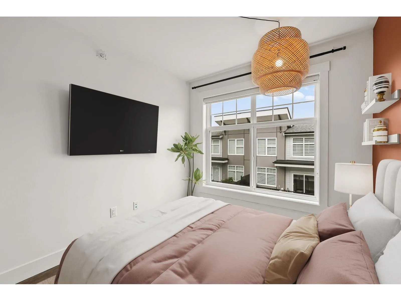 NICE newer t/house at STATION 48 in the heart of Murrayville. Not facing road + Bonus Private backyard space! Excellent location 3 bdrm, 3 bath townhouse incl. powder on main for guests! Open and bright concept kitchen with s/s appliance, gas range, shaker style cabinetry, polished quartz countertops and marble backsplashes. Wide plank Laminate throughout, frameless shower with floor-to-ceiling tile and double vanity in the ensuite. Great backyard with patio for family and bbq's, shed and landscaping plus fully fenced in. COME take a look at this family oriented neighbourhood which is also steps to groceries, shops amenities and rec center! (id:27476)