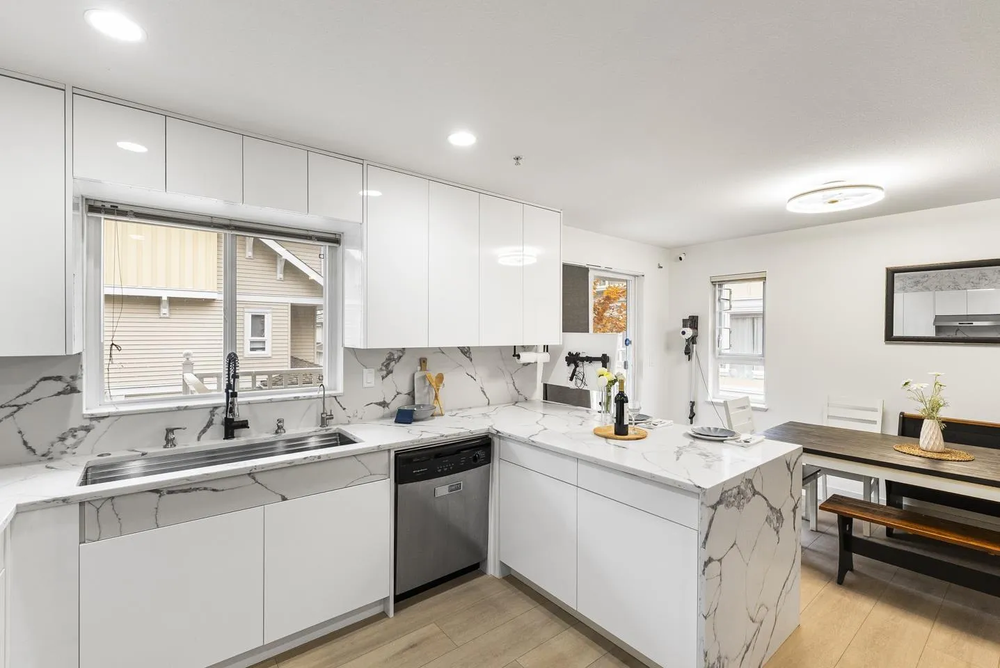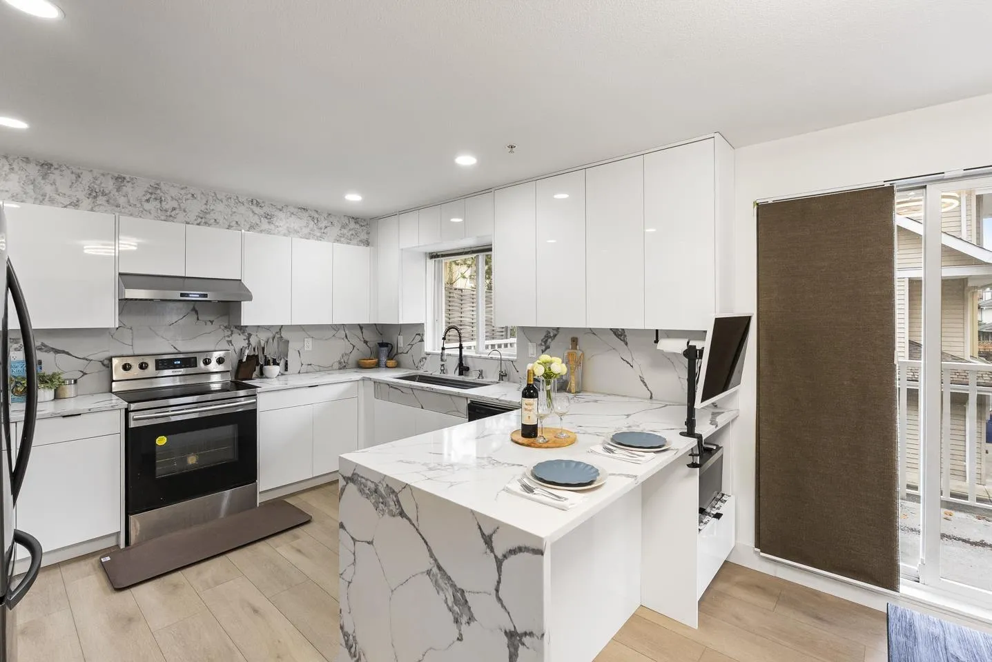 Welcome to Unit 18 at Pacific Court - the largest end-unit townhome in the complex with 1,650+ sqft of living space. This 4-bed, 4-bath home features a newly renovated kitchen, brand-new flooring, and a bright, open main level. Upstairs offers well-appointed bedrooms, including a spacious primary suite. Enjoy the convenience of a double side-by-side garage for secure parking and storage. Centrally located just minutes to shops, schools, parks, transit, and a 10-minute walk to the future SkyTrain station. A rare find with room for the whole family. (id:27476)