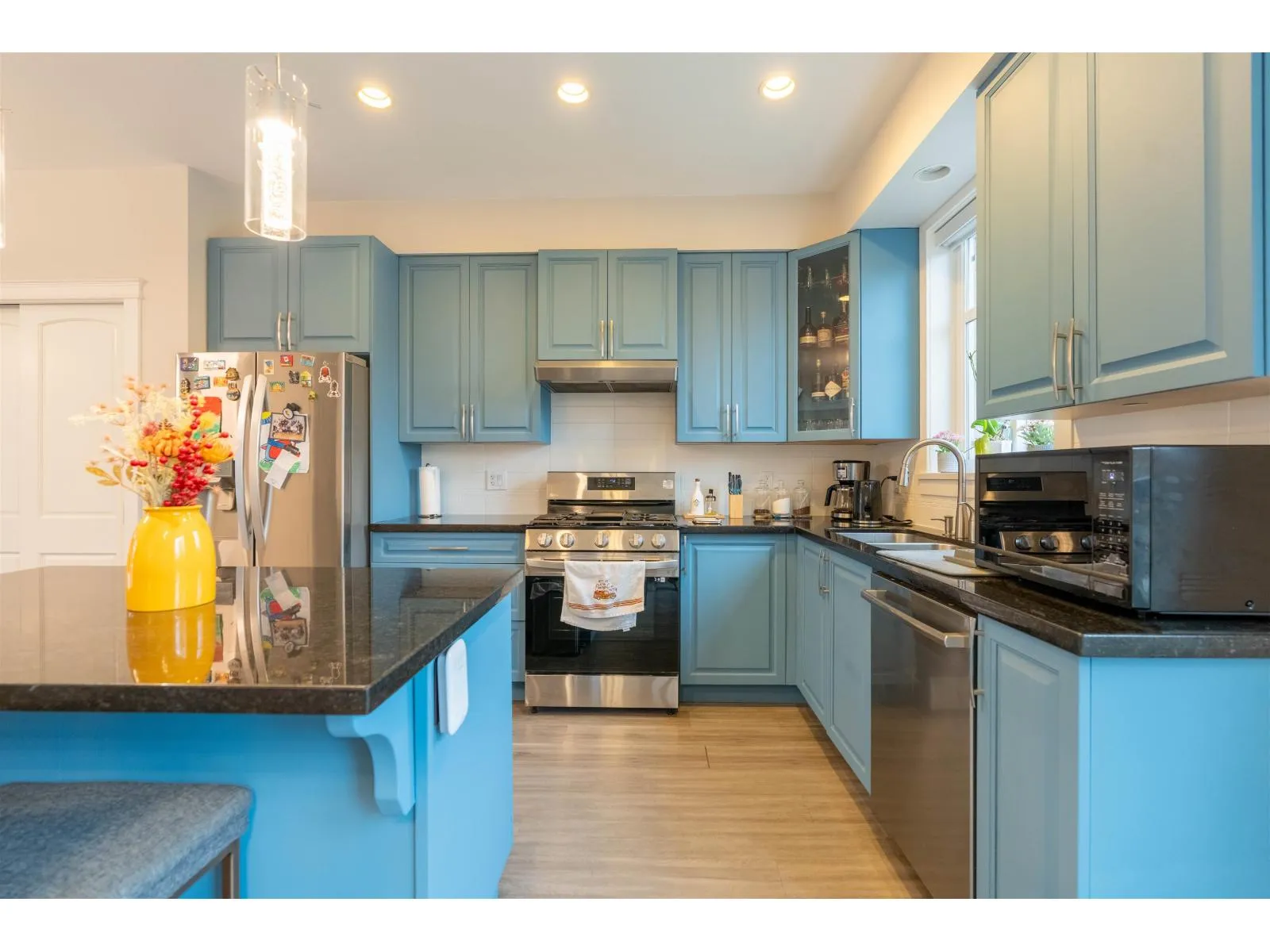 Welcome to Yorkson Creek Townhomes - a fully renovated and upgraded 4-bed, 4-bath corner home with nearly 2,100 sq. ft. of bright, functional living. Renovations include new flooring, fresh paint, updated light fixtures, and new appliances throughout. The main level features an upgraded kitchen with granite counters and stainless steel appliances, opening to spacious living and dining areas. Upstairs, three well-sized bedrooms include a primary suite designed as a private retreat, while the lower level adds a fourth bedroom or use it as a large rec room suited for a gym, office, or media space. Set steps from schools, parks, cafés, and minutes to Highway 1, this home delivers comfort, style, and a prime location. OPEN HOUSE - December 7(Sun) 2-4 PM (id:27476)