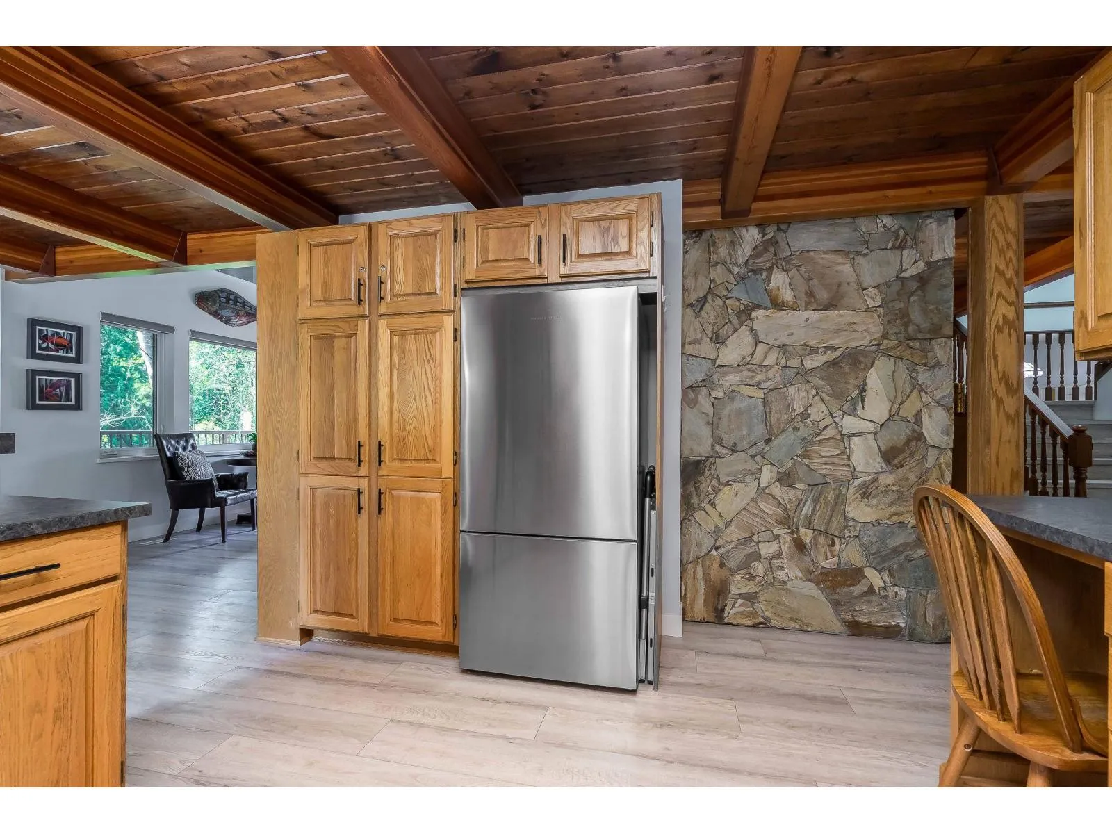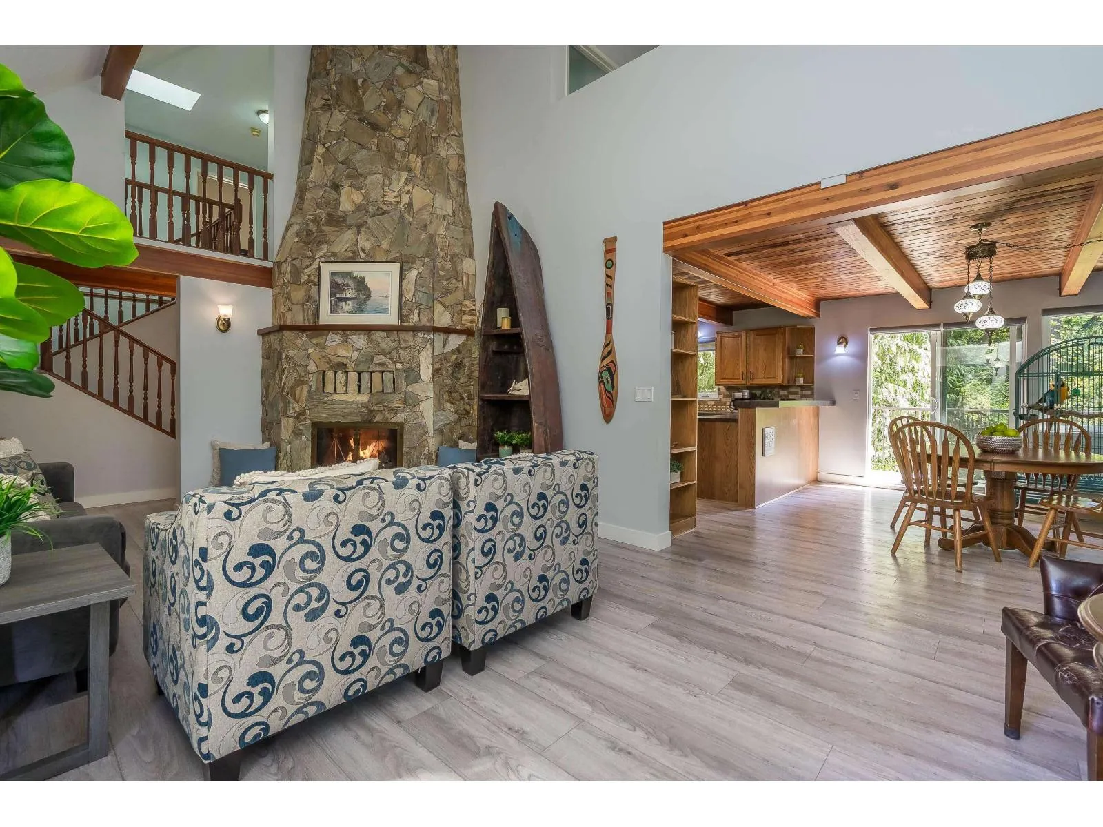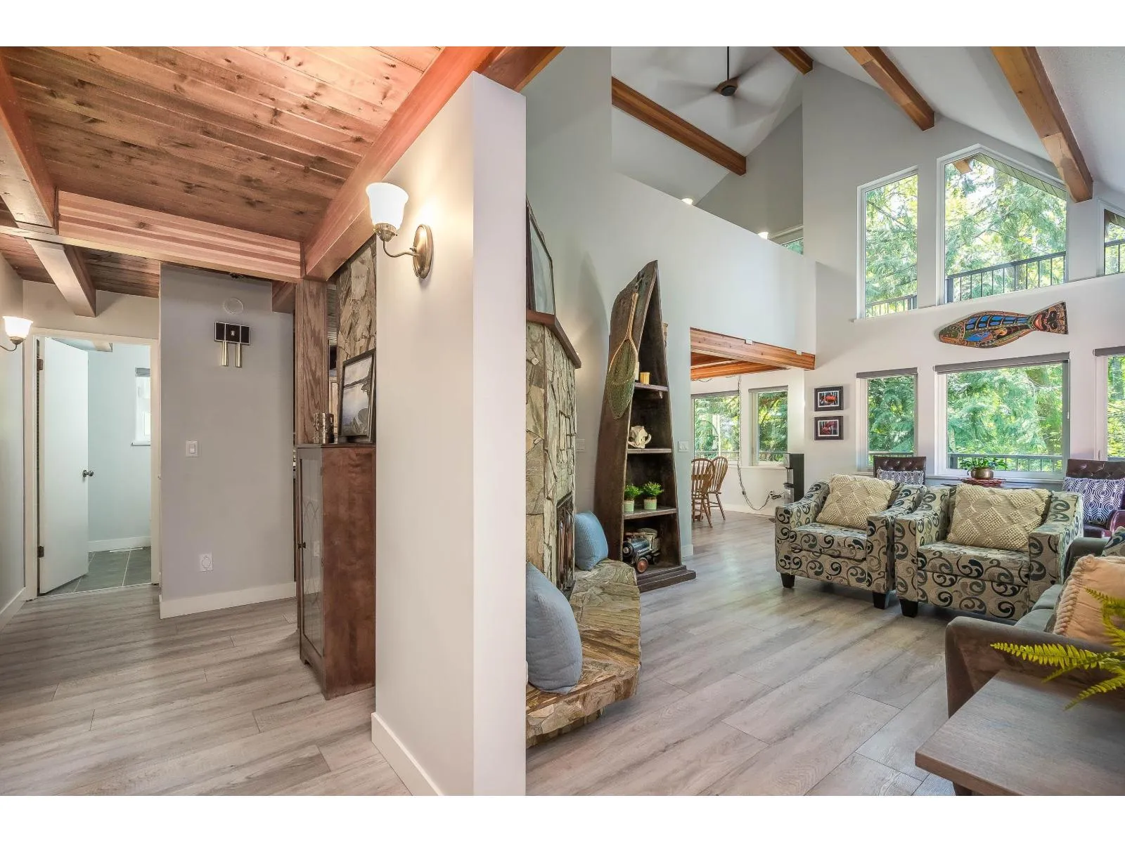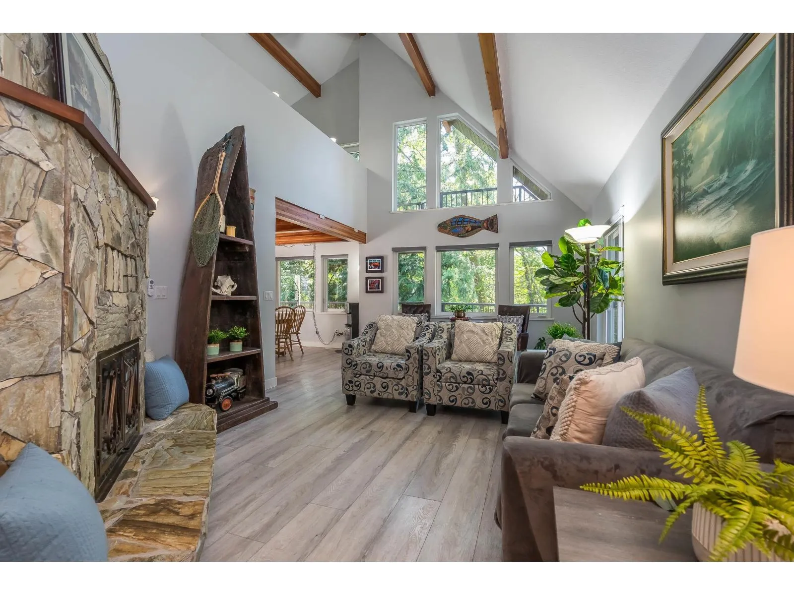 Lovely over 4100 sf 2 storey & bsmt 6 bdrms 3 bathrooms plus huge 34'2 x 29' shop w/almost 500 sf mezzanine (2013). Custom built home has recently been renovated w/new roof, vinyl windows, skylights, exterior paint, deck surfaces & railings 2021, vinyl plank flooring, new ensuite, custom window coverings, new well pump & high end water filtration system 2022, HW tank 2025. This unique home offers 2 bdrms on main floor, living rm w/18ft vaulted ceiling & stone F/P, kitchen & dining rm. Upstairs features a large primary, gorgeous ensuite & 4th bdrm w/vaulted ceiling. The bsmt has huge bar w/full appliances, bar tap, plus 2 bdrms, den, & 2 rec rooms. The shop has O/H doors, gas, 220v power & water. Private fenced easy to care for yard in desirable neighbourhood! (id:27476)