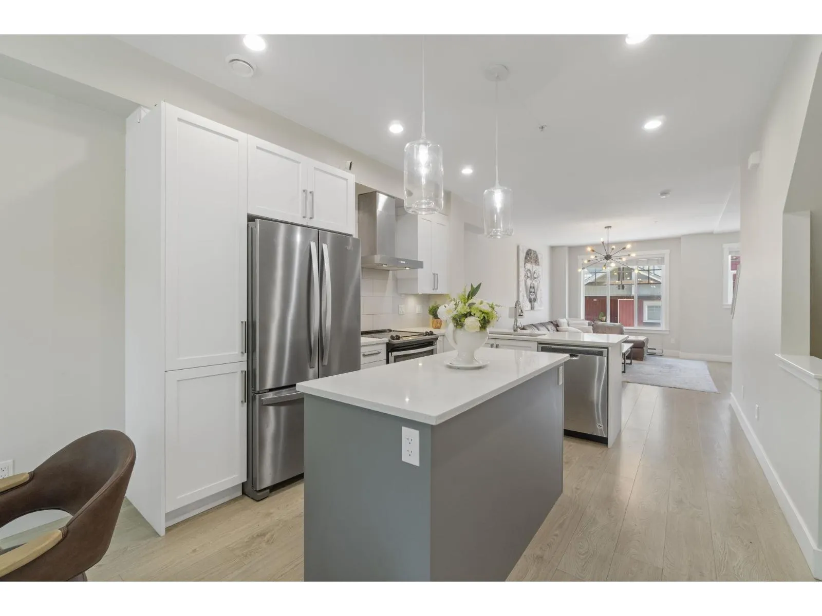 Welcome to Gabriola Park-Parkside Townhomes by Royale Properties, beautiful 4 bedroom, 2.5 bathroom townhome! The main floor features an open-concept layout with 9' ceilings, where the kitchen is the heart of the home. Designed with style, stainless steel appliance package including a Venmar chimney hood fan. The kitchen smartly separates the living and dining spaces, creating both function and style. A powder room on the main floor adds convenience, while the covered balcony off the dining room is perfect for year-round, overlooking the fully fenced backyard. The true highlight of this home is its prime location backing onto a lush greenbelt-offering peace, privacy, and a touch of nature. Centrally located near multiple high rated schools, eatries, shops, parks, transit and so much more! (id:27476)