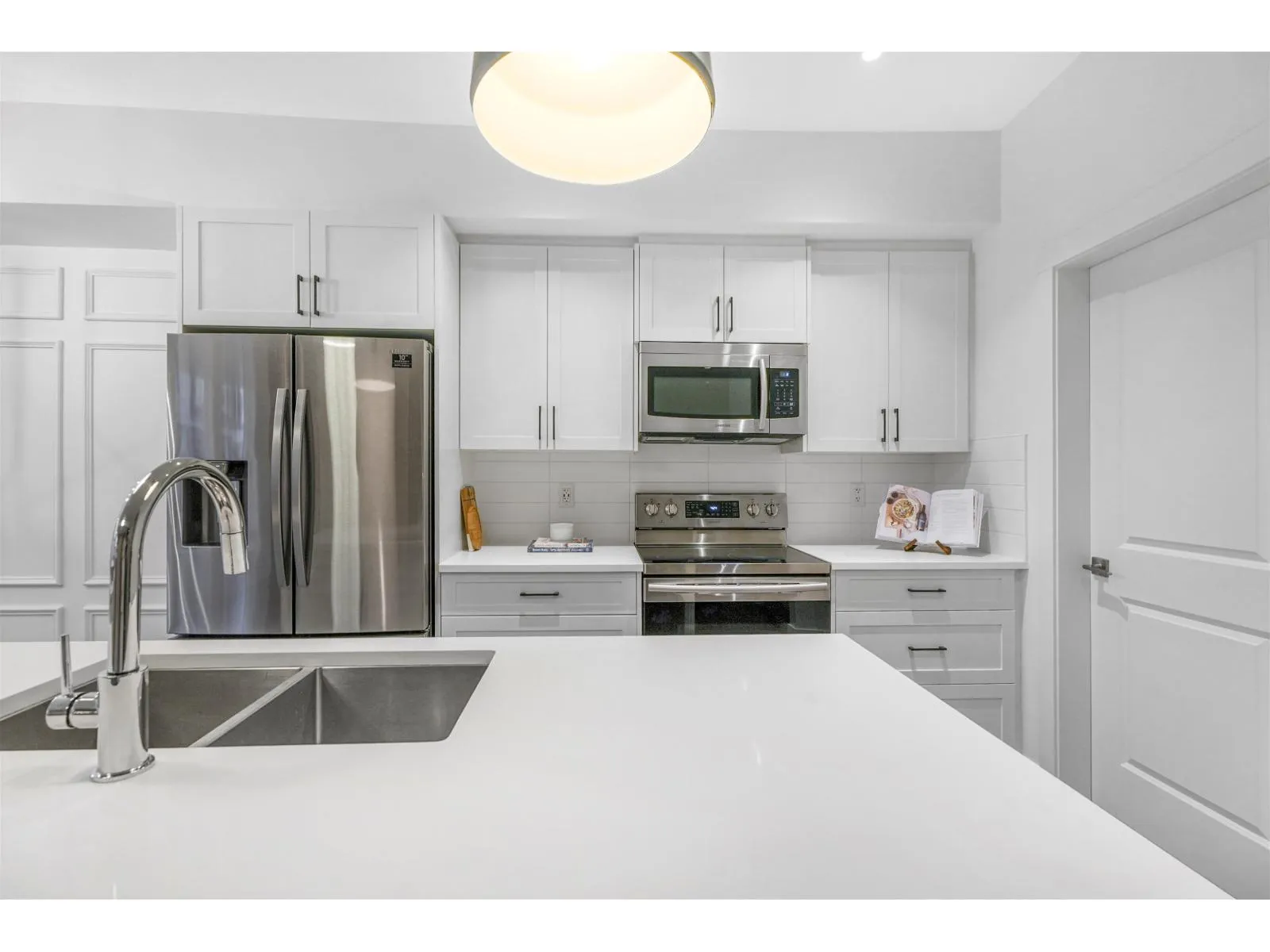 OPEN HOUSE Sat Jan 3rd 1 to 4:30 & Jan 4th Sun 2pm-430. 3 BED +FLEX + NO GST + FULLY RENOVATED + BRAND NEW INTERIOR PAINT + 369 SQFT ROOFTOP PATIO + EXTRA LARGE GARAGE 550 Sq Ft + SUPER LOW STRATA FEES $233 + SIDE BY SIDE GARAGE + PAINTED GARAGE & EPOXY + VACANT. MODERN 2025 FULLY RENOVATED CUSTOM DESIGNER Townhome in KENSINGTON LOFTS. Custom Luxury Finishes That You Won't Find In Any Townhome. Everything Freshly Painted Inside Brand New Paint on Walls, Trim, Doors and All Woodwork. Features a wide open layout, including fresh wainscoting and wooden slat feature wall, a large chef-style kitchen, and a convenient powder room on the main. Enjoy a private rooftop patio, perfect for entertaining. Walking Distance to R.E. M Secondary (IB) & Josette D. Elementary, with fast access HWY 1. VACANT. (id:27476)