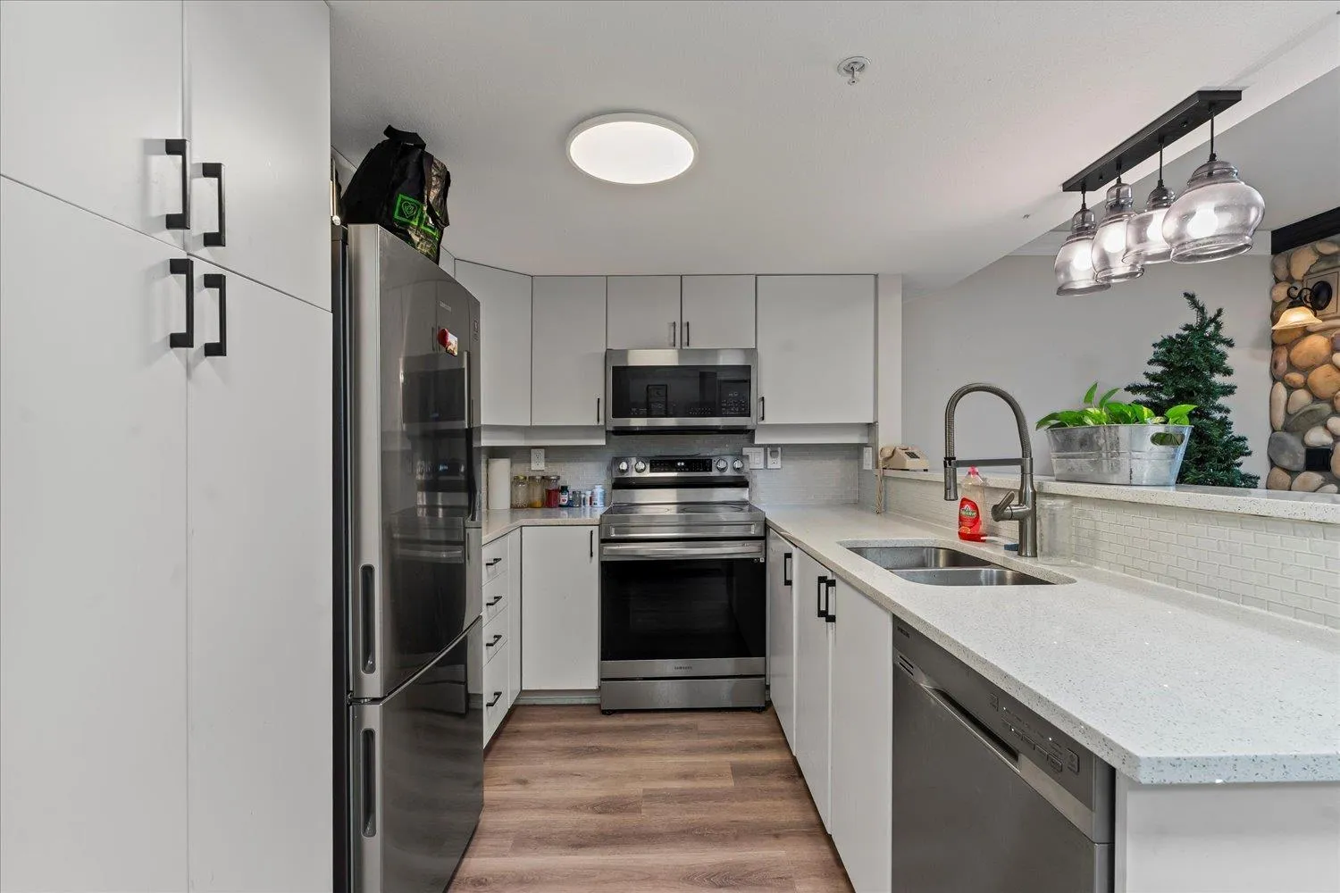 Welcome to The Avante in Langley City! This bright south-facing condo offers an open concept kitchen with stainless steel appliances, quartz counters, and an eating bar, flowing into a cozy living room with gas fireplace. The spacious primary suite features its own private balcony and walk-through closet, while large windows fill the home with natural light. The pet-friendly building includes secure parking, bike storage, and a community room. All of this in a fantastic location-just steps from shops, restaurants, parks, schools, and the future 203rd SkyTrain station, making this home both a lifestyle upgrade and a smart investment. (id:27476)