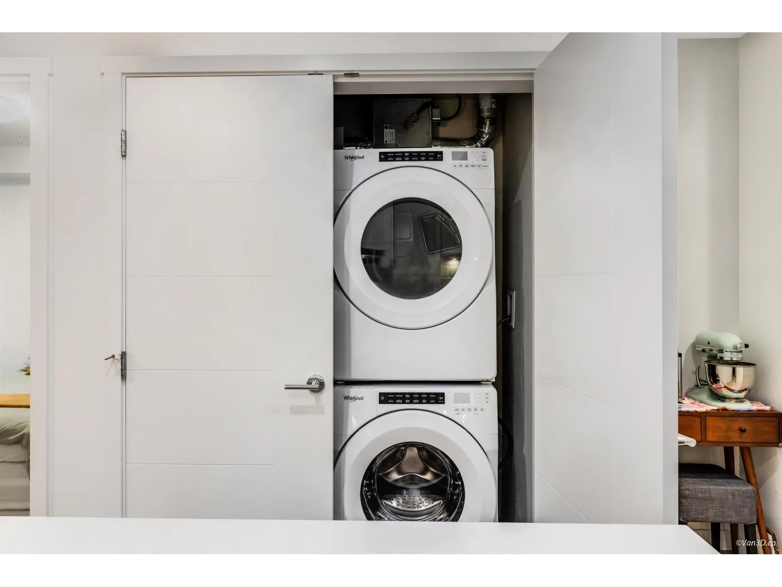 Welcome to The Audley by Reddale! This spacious 2 bed, 2 bath home features a Fisher & Paykel fridge, Samsung 5-burner gas range, quartz countertops, and a freestanding island. The primary suite boasts a frameless glass shower, double sinks, and a walk-in closet. Enjoy a large patio with access from the living and primary bedroom. Built with durable Hardi board siding, energy-efficient windows, and glass doors .Resort-style amenities include a fitness center, yoga room, library, guest suite, boardroom, dog wash, and bike storage. The stunning courtyard offers a BBQ area, firepit, play area, and community garden. Centrally located near transit, shopping, restaurants, recreation, and the future SkyTrain! (id:27476)