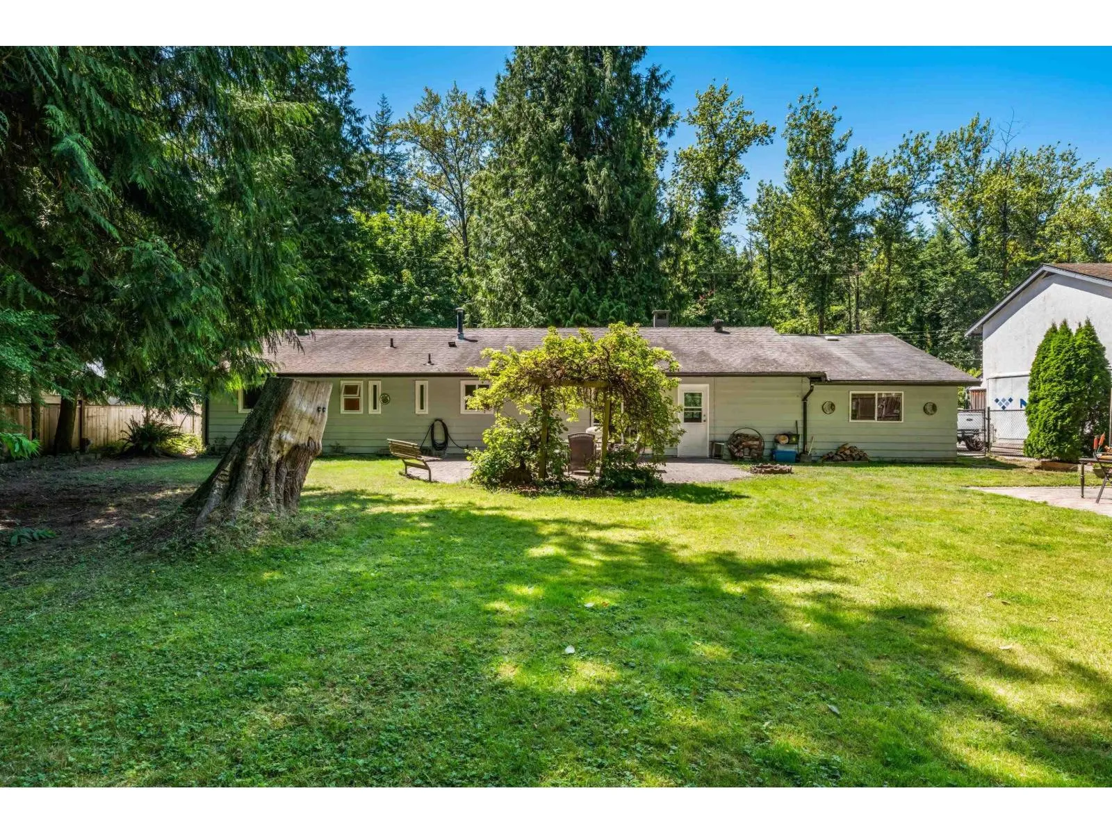 Surrounded by greenspace! Build your dream home on this 11,704 sqft lot located on one of Brookswood's most sought-after dead-end streets, fronting peaceful green space, and surrounded by more trees and greenspace in the backayrd. Enjoy privacy, a family-friendly vibe, and quick highway access to Vancouver. The existing home features a 15-year-old roof and furnace, plus a 4-year-old hot water tank-ideal to renovate, rent, or live in while you plan. Whether you're building new or investing, this is a rare opportunity in a prime location that checks all the boxes. (id:27476)