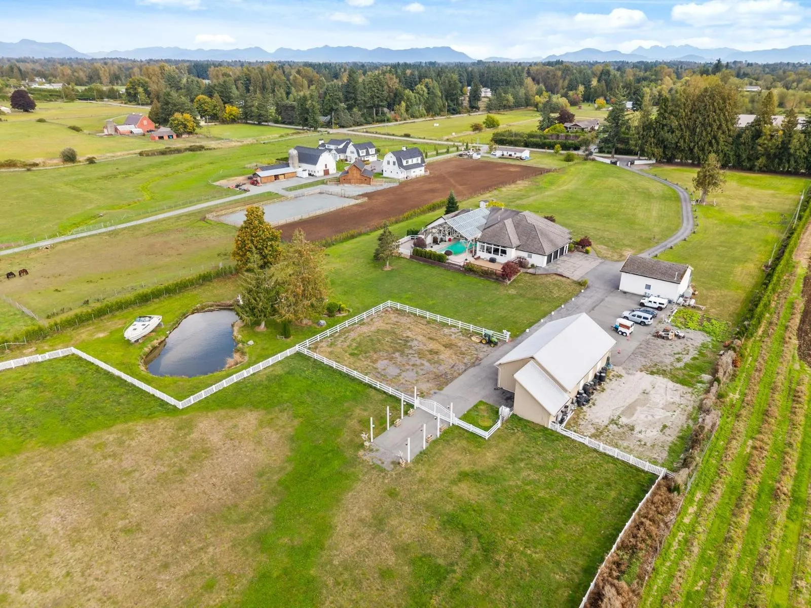 Gated 9.77-acre estate in the Otter District! This stunning 10,088 sq ft rancher with a full finished basement offers elegance, comfort & functionality. Main floor features 4 bedrooms, 3 bathrooms, office, dining room & a great room with soaring 12' ceilings & large windows showcasing panoramic field views. The lower level is designed for entertaining with 2 bedrooms, 3 bathrooms, bar, gym & media room. Love to host? Enjoy the 40'x20' pool enclosed by a striking glass dome for year-round use. For horse enthusiasts, the estate includes a riding arena & a 6-stall barn with loft. Triple garage, gated entry, & endless outdoor space complete this rare package, just minutes from Campbell Valley Park. A luxurious country lifestyle awaits! (id:27476)