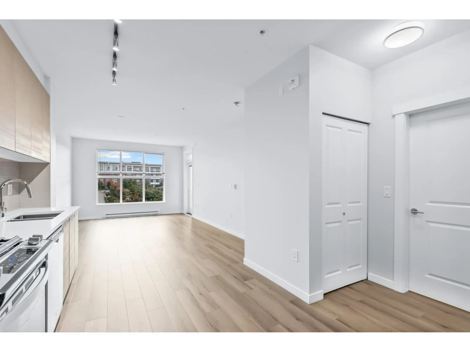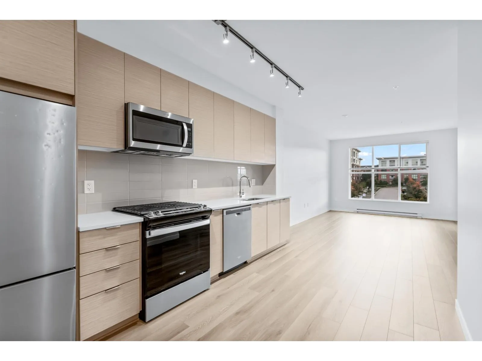 BEST IN THE BUILDING! Presenting a gorgeously designed and expansive 1 bed, 1 bath home in renowned UNION PARK by Polygon. PERFECT POSITION! Enjoys views over expansive courtyard, gardens AND sunny Southern exposure for ample privacy & sunny living. A STUNNING 642ft layout boasts over height ceilings, large windows inviting natural light throughout. Modern finishing by high quality builder including stunning galley kitchen, dream bathroom, plus MOVE IN to a freshly professionally painted space w/brand new laminate flooring just installed. Enjoy RESORT LIVING from home.. Commercial grade gym, outdoor pool+hot tub, billiards lounge, basketball court, gardens, playground - ALL just steps to Yorkson Creek sports complex, future community centre, schools and Willoughby Town Centre! (id:27476)