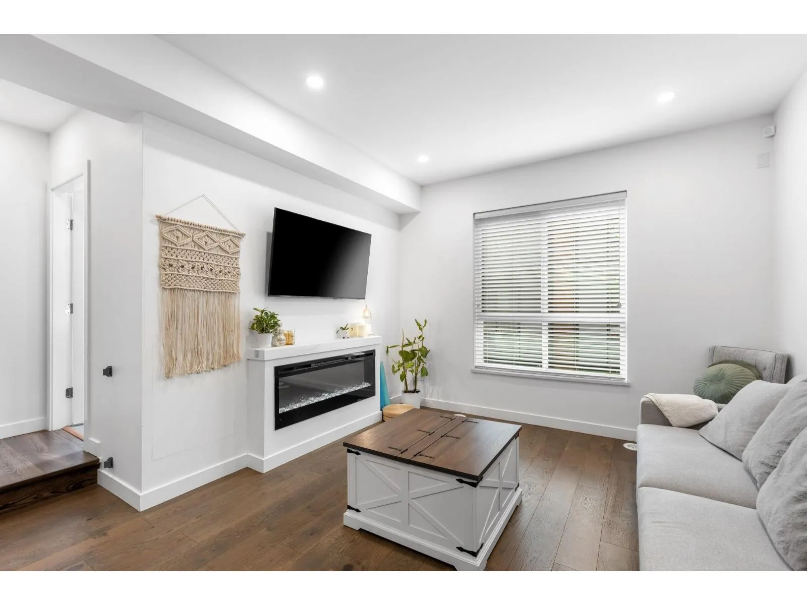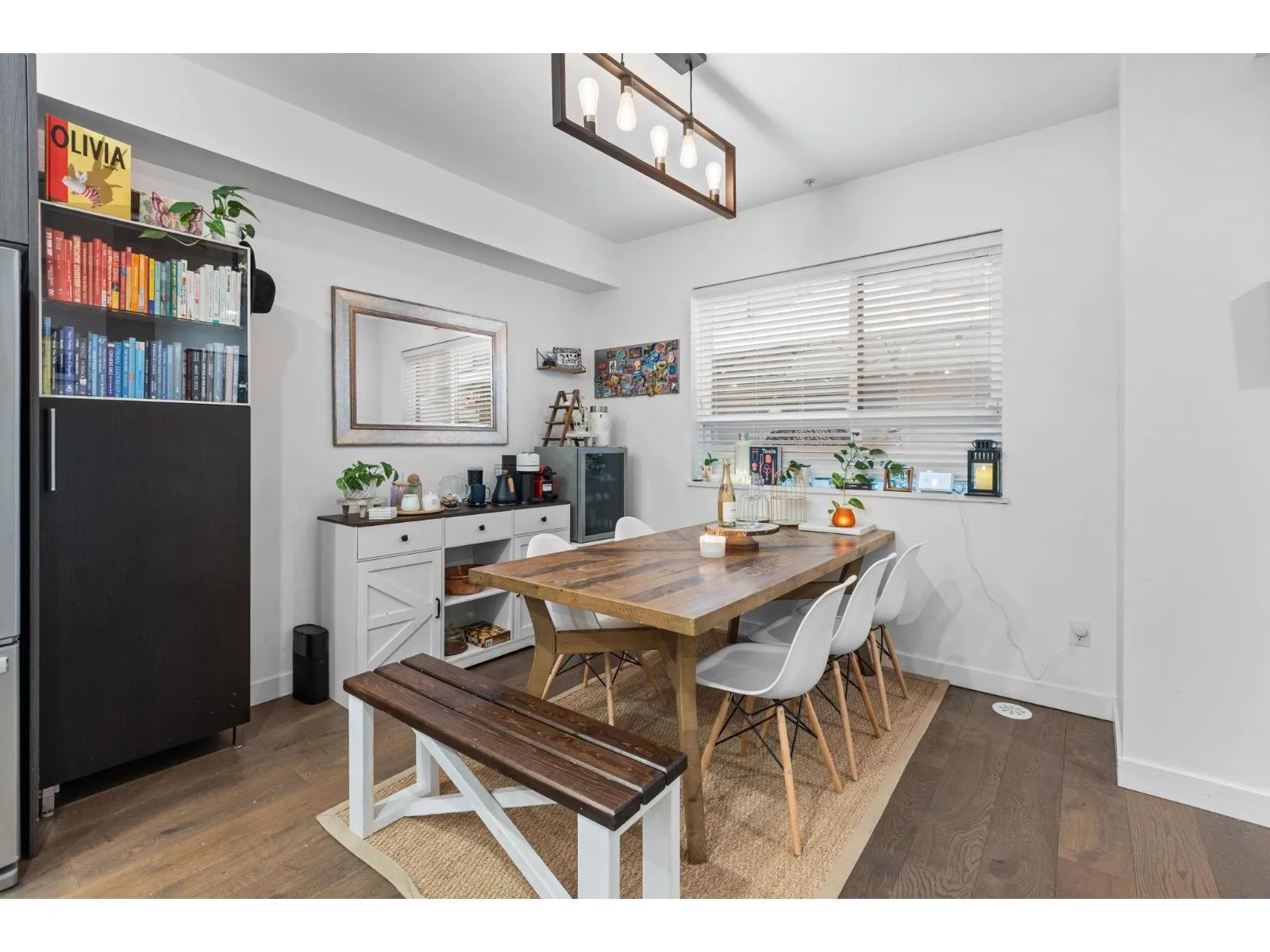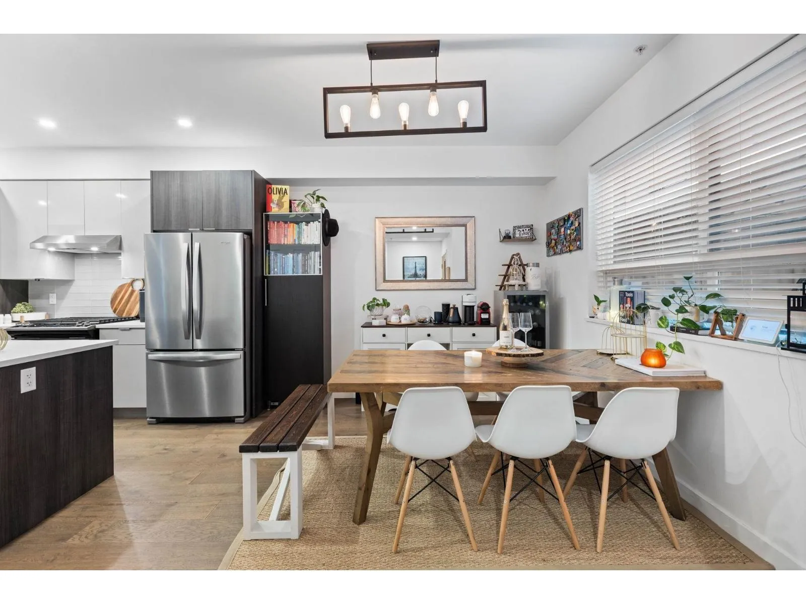 Welcome to this very clean and very well-kept 3 bed and 2.5 bath townhouse in The Terraces! The main floor offers an open-concept living room, a kitchen with a large island with a quartz countertop, and a dining area, which leads to a patio with turf. The upper floor has a decent-sized primary bedroom with its own ensuite and two additional bedrooms and a family bathroom. Additional features include central AC and hot water on demand. This centrally located complex is just a few minutes' walk to shopping, restaurants, recreation, parks, and the future new Skytrain station.Bonus EV charger, Updated Washer/Dryer, Hoodfan and hot water. Move in ready! (id:27476)