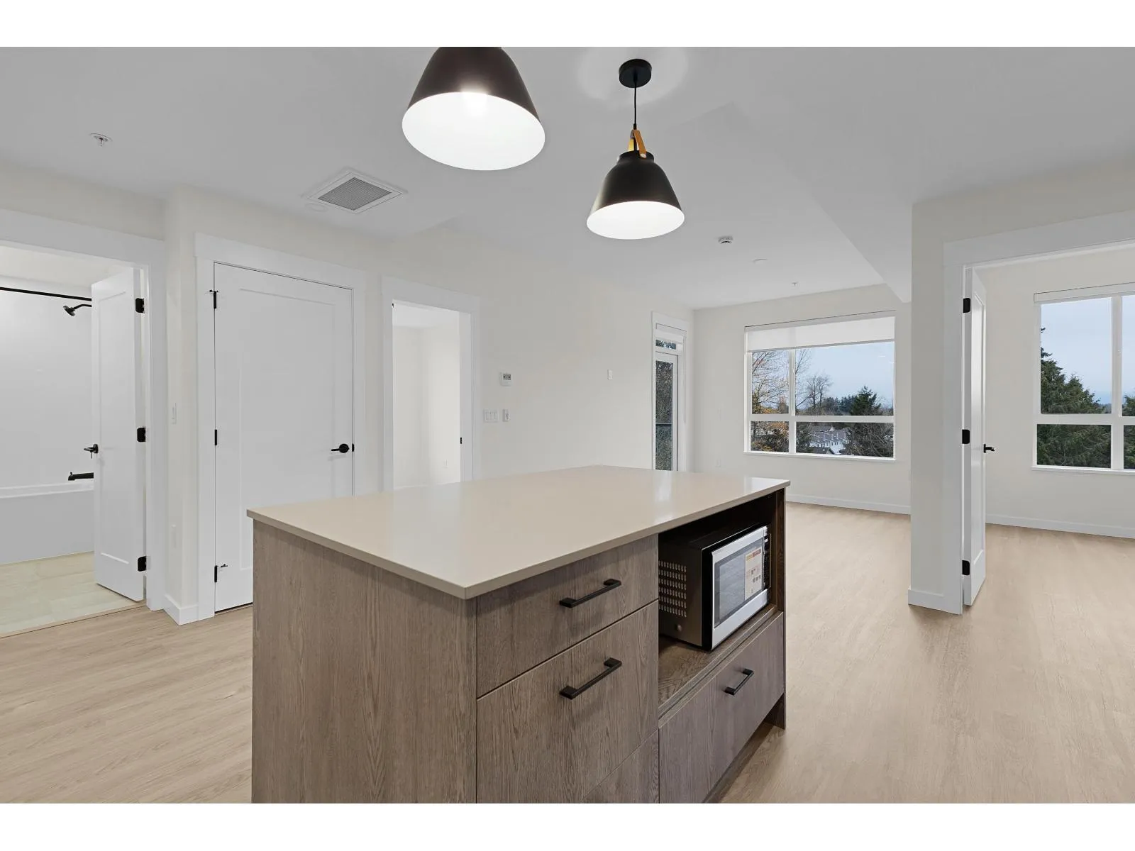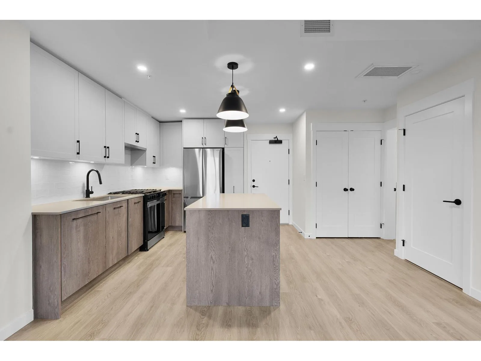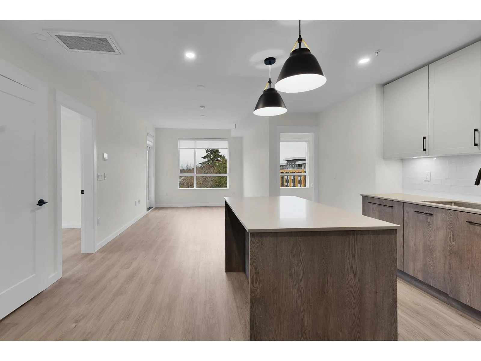 Welcome to Aldergrove Town Centre, where modern design meets everyday convenience. This bright and stylish 2-bedroom, 2-bath corner home on the 5th floor offers an open-concept layout with large windows, filling the space with natural light. Enjoy a contemporary kitchen with a gas range, sleek finishes throughout, and the comfort of air conditioning for warm summer days. The home includes parking on P1, a storage locker, and a bike locker for added ease. Residents enjoy premium amenities including a rooftop patio, fitness centre, co-working space, and a two-storey daycare right on-site. Located in the heart of Aldergrove, you're steps from shopping, dining, parks, schools, and transit. This home offers exceptional comfort and convenience in a family and professional-friendly community. (id:27476)