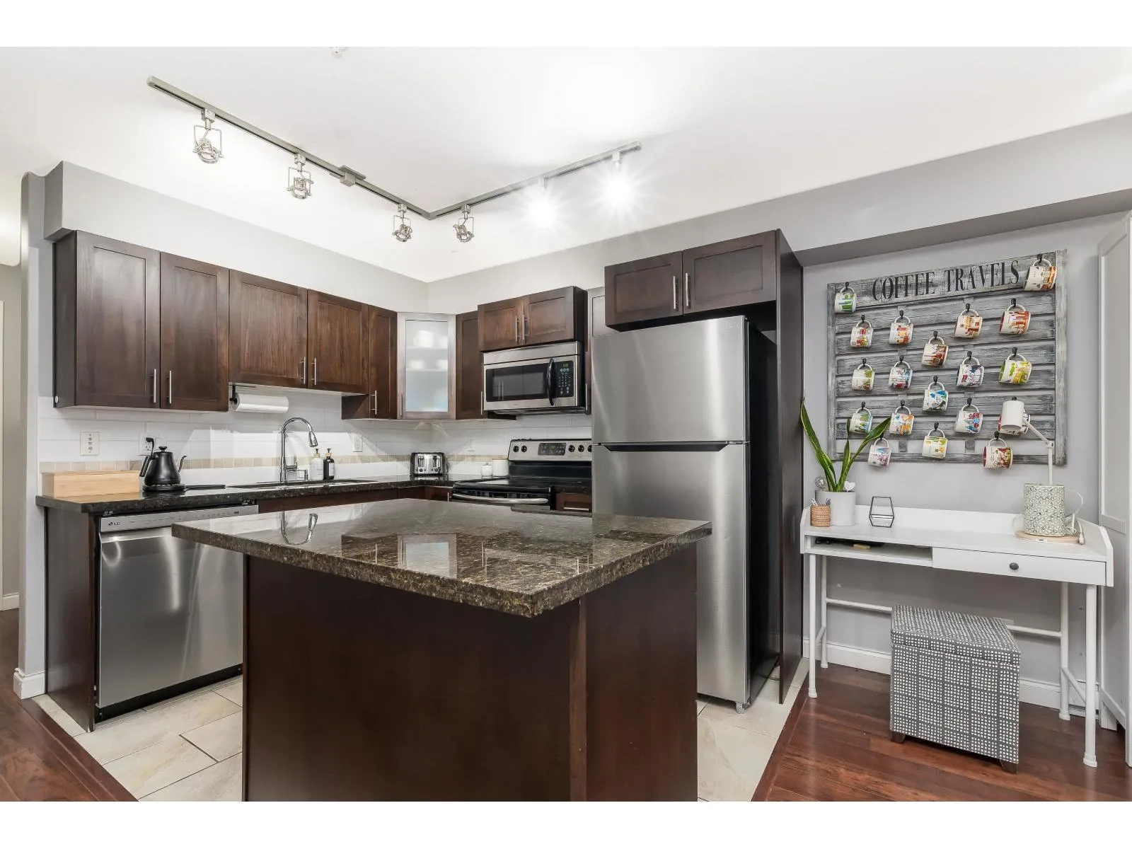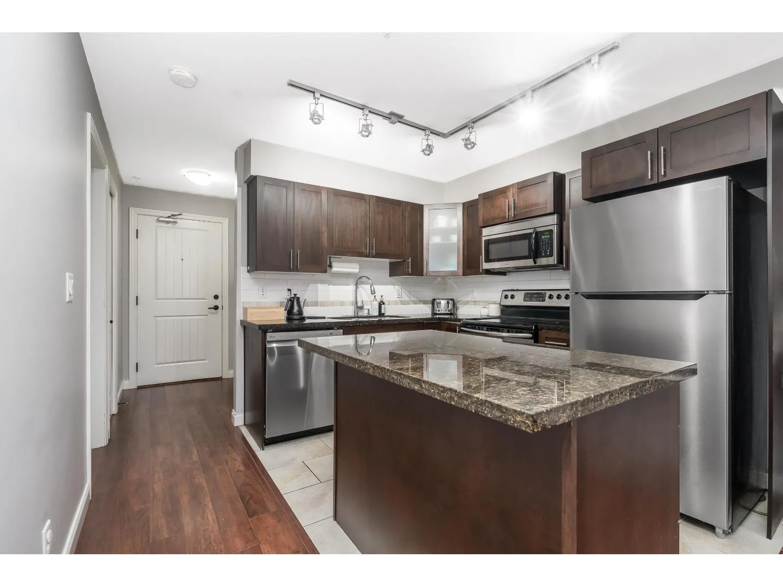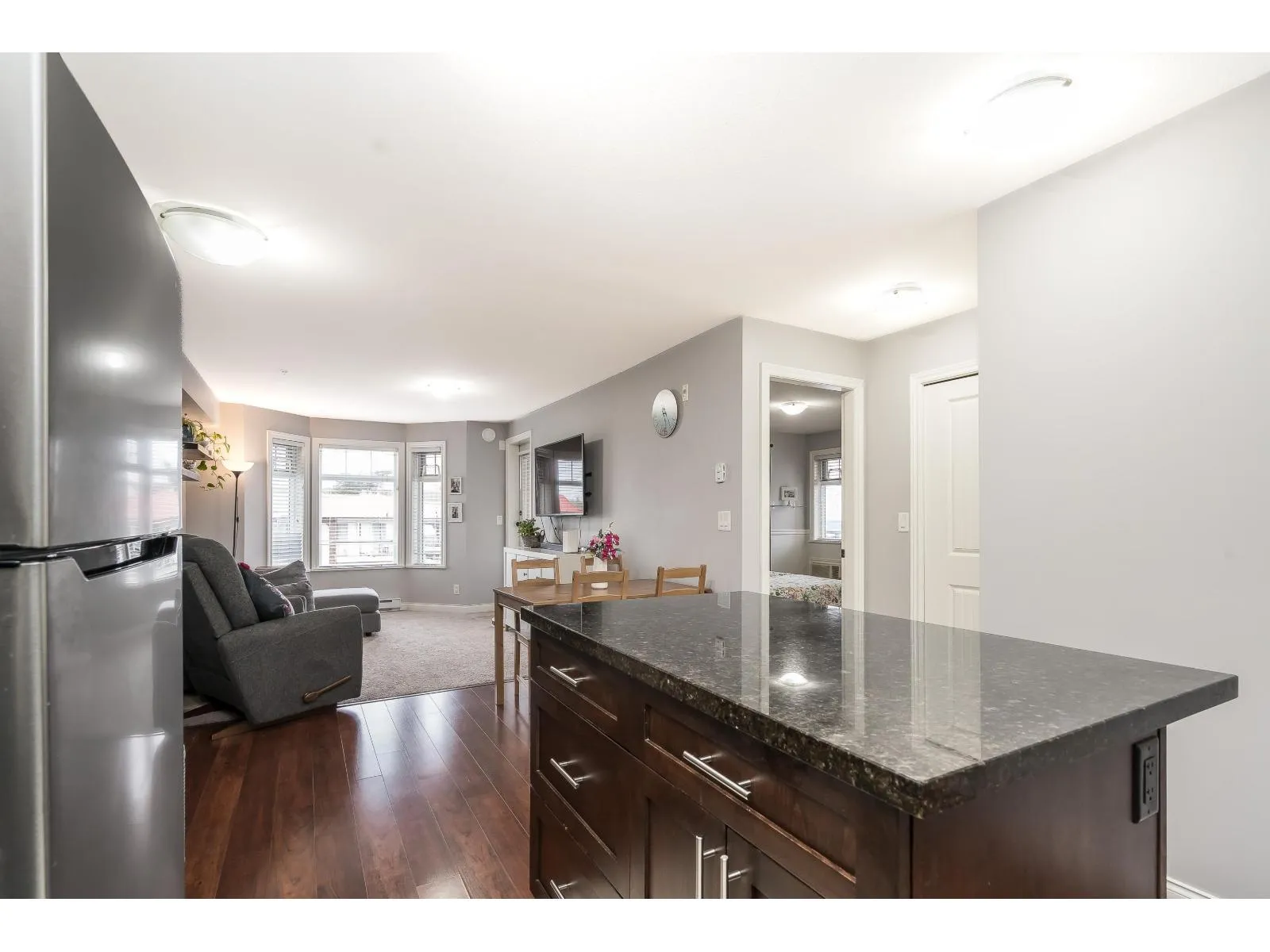 Fabulous Location in Langley, North West facing Upper Corner Unit at Paddington Station! Enjoy stylish living with an open concept living dining kitchen with Granite counters, shaker cabinets & S/S Appliances. This 2 bdrm, 2 bath, includes a spacious primary with Mirrored Walk through closet and 3 piece ensuite. West side of the bldg w/152sqft balcony and a view for entertaining, in suite storage rm and laundry! Comes w/ 2 underground parking stalls. Close walk to vibrant Langley one way, restaurants, shopping, Community rec centre, future skytrain. Kids & Pet friendly. Amenities include guest suite, lrg gym/exercise room, library, kids workshop, visitor parking, & courtyard. This is your next home! Book your viewing today! (id:27476)