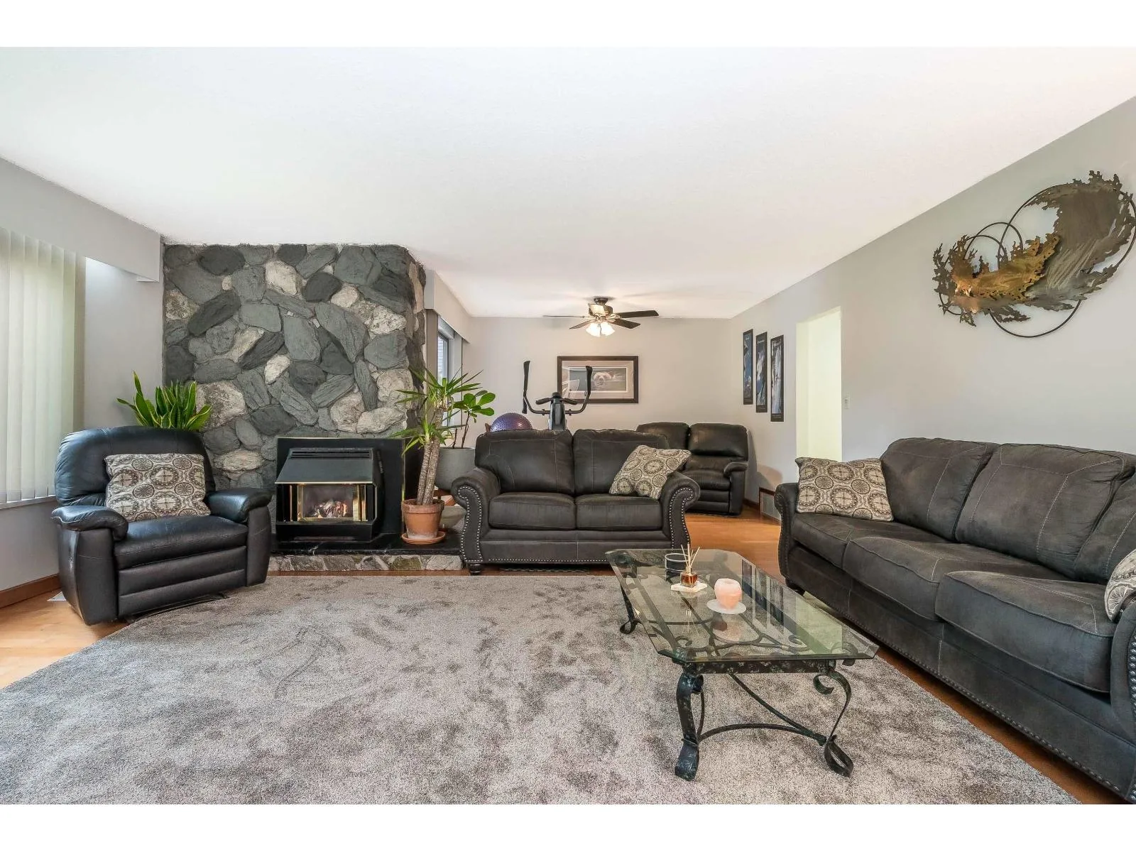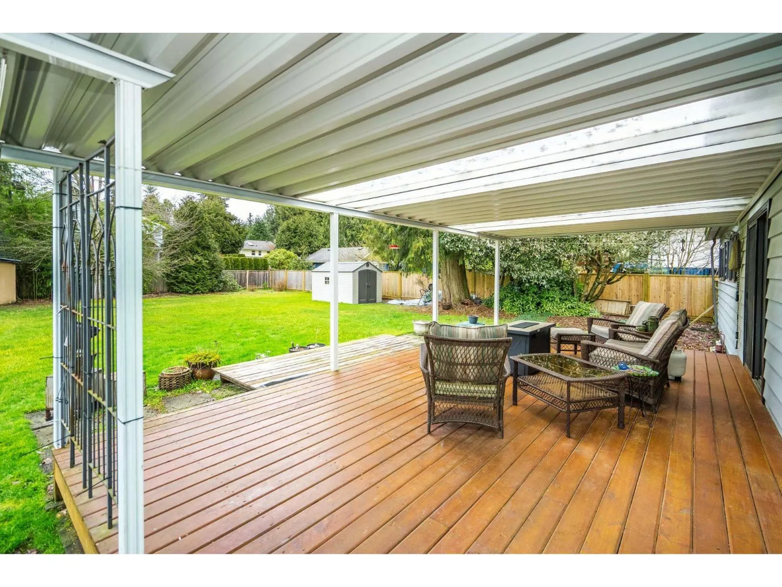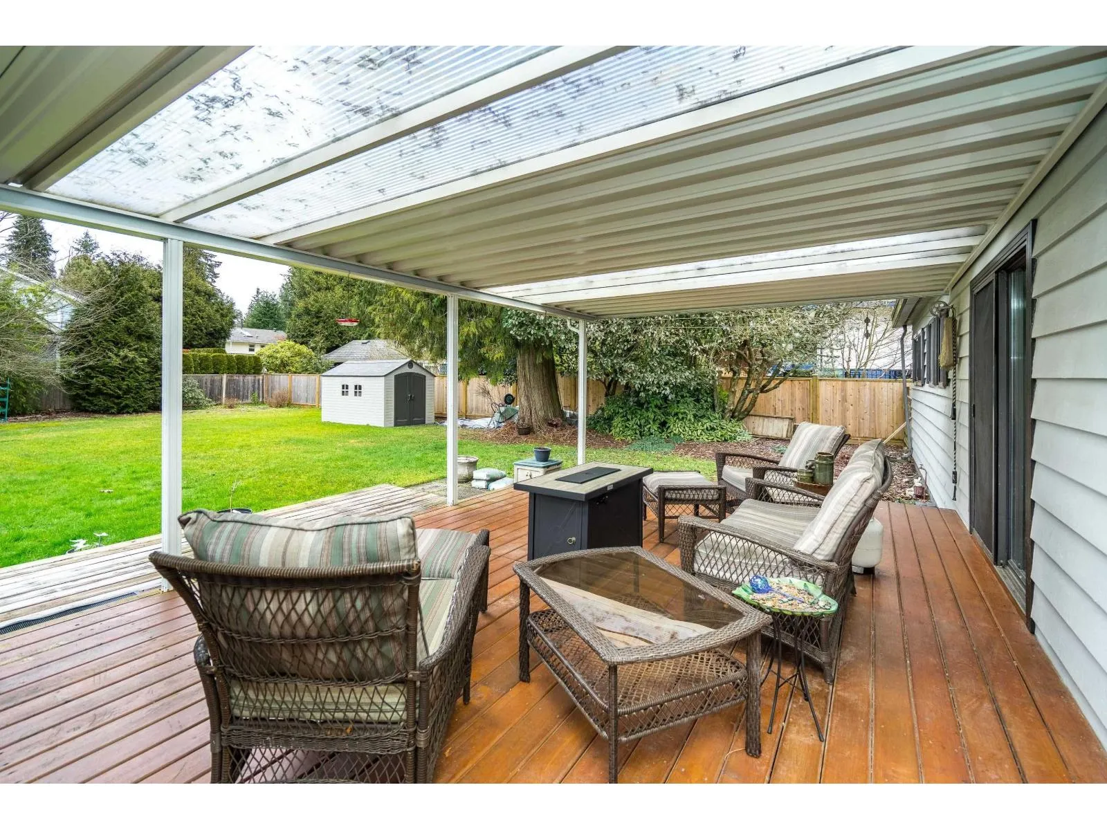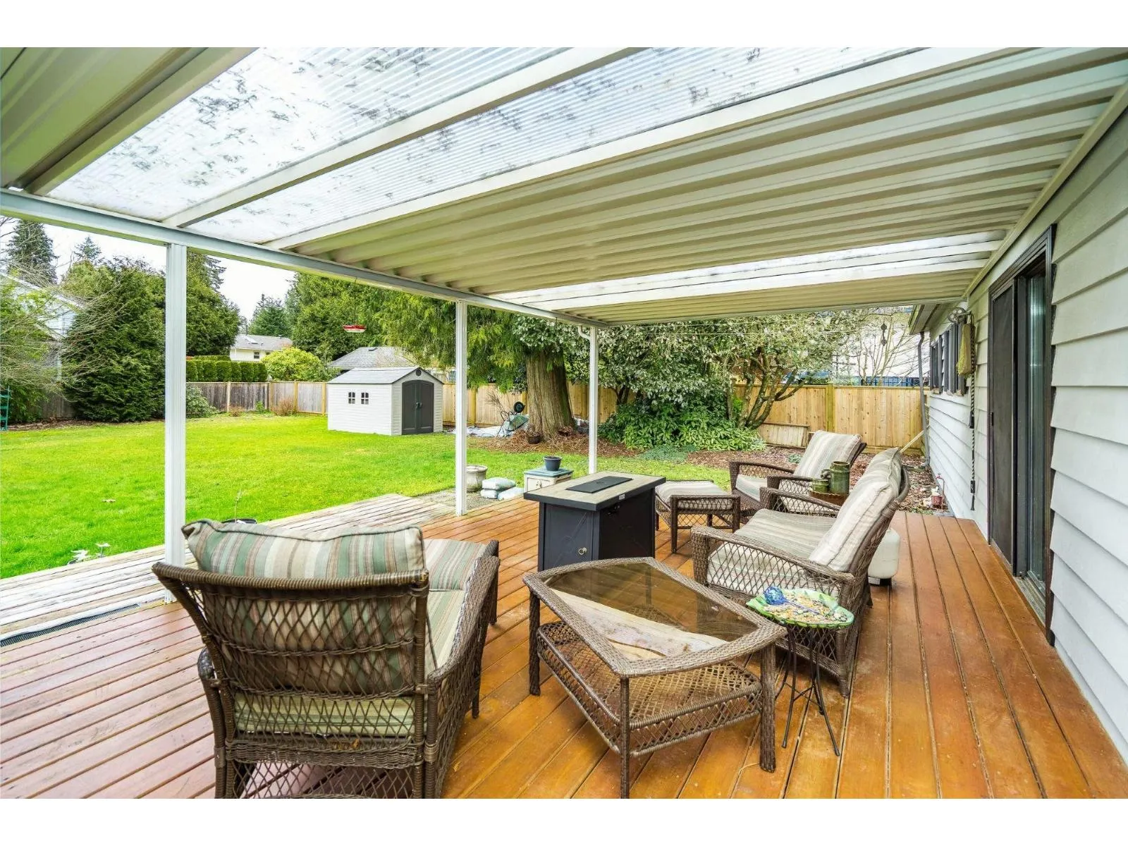 Discover the perfect blend of comfort, privacy, and convenience in this charming 3 bed, 2 bath rancher set on a sprawling 13,506 sq. ft. parklike lot. The bright, open living and dining space is anchored by a gas fireplace and designed for effortless entertaining. A tastefully updated kitchen offers an eating area and direct access to an impressive 32' x 14' patio, ideal for summer BBQs and outdoor relaxation in the fully fenced yard. The primary bedroom includes a walk-in closet and 2-piece ensuite, while thoughtful upgrades throughout the home add long-term value, including hardwood flooring, thermo windows, central A/C and hot water tank (2023), and a Penfolds metal roof. An extra-deep garage and ample parking provide added versatility. Minutes from Penzer Park, Alice Brown Elementary. (id:27476)