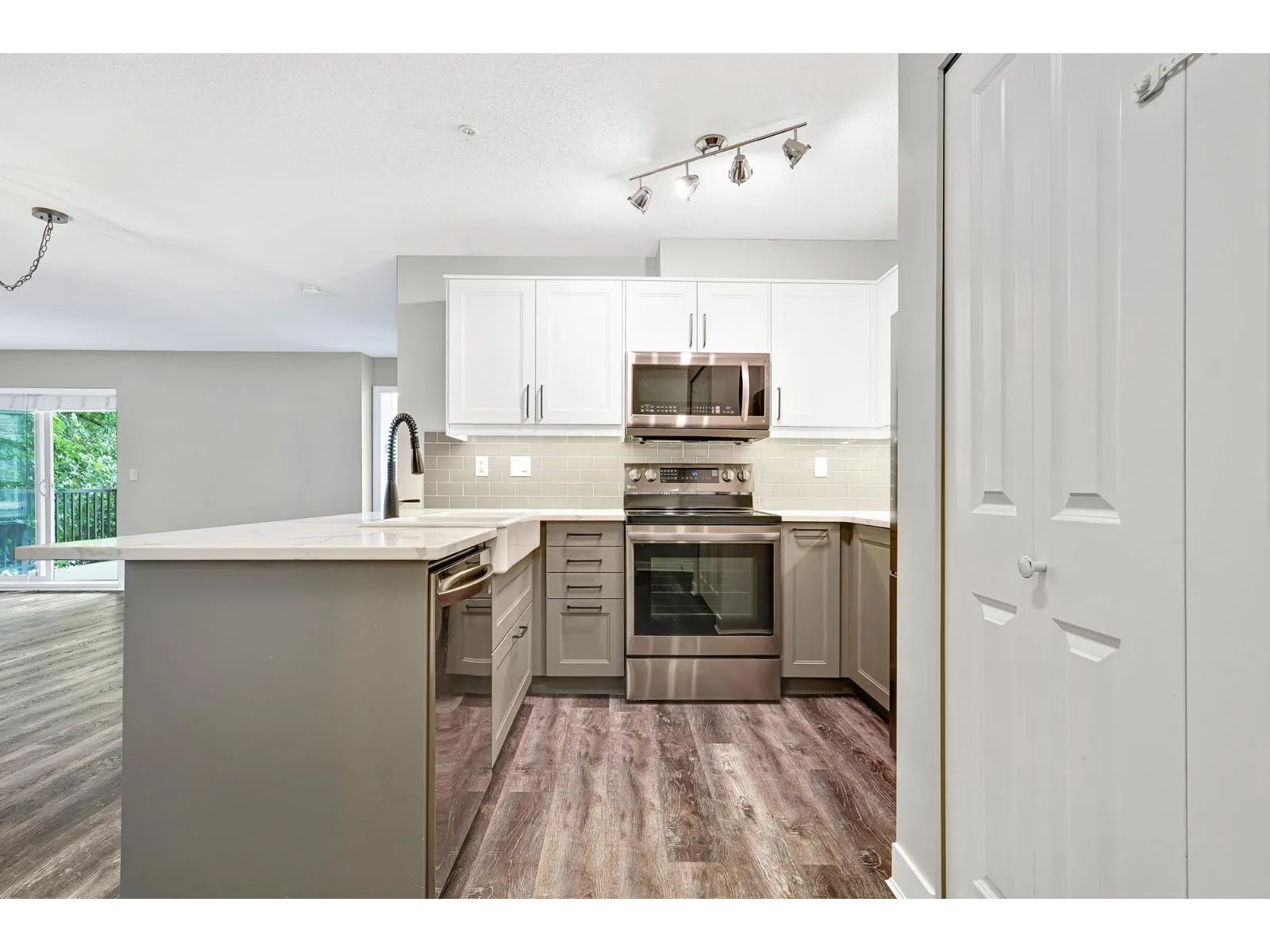 Discover bright, spacious living in this beautifully maintained 3-bedroom, 2-bathroom condo in the sought-after gated community of The Grove. Enjoy a thoughtfully designed open-concept floor plan with over 1,050 sq ft of comfortable space. The gourmet kitchen features granite countertops & SS appliances, seamlessly connecting to a generous living area with durable vinyl plank flooring. Step onto your private covered balcony perfect for morning coffee or evening relaxation. This prime location puts you steps from restaurants, grocery stores, Colossus movie theatre, fitness centres & Carvolth bus exchange. Families will appreciate being close to Dorothy Peacock Elementary & Walnut Grove Secondary, while commuters benefit from quick access to HWY 1 (id:27476)